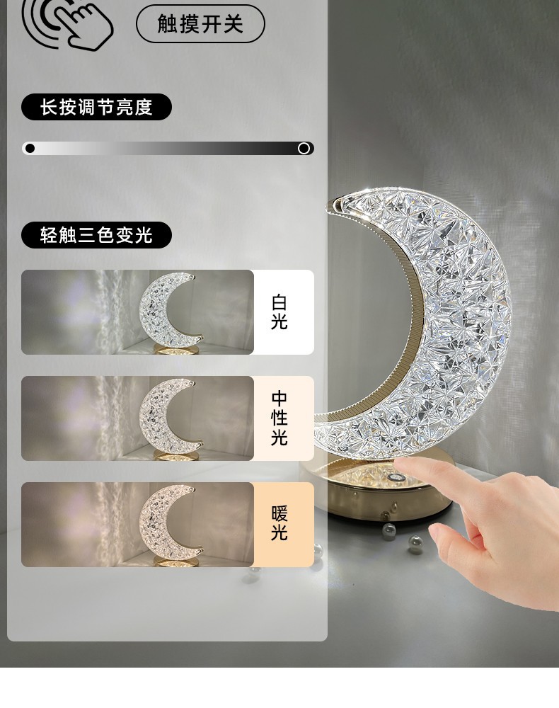 • 달 테이블 램프 + 3 색 무전해 디밍