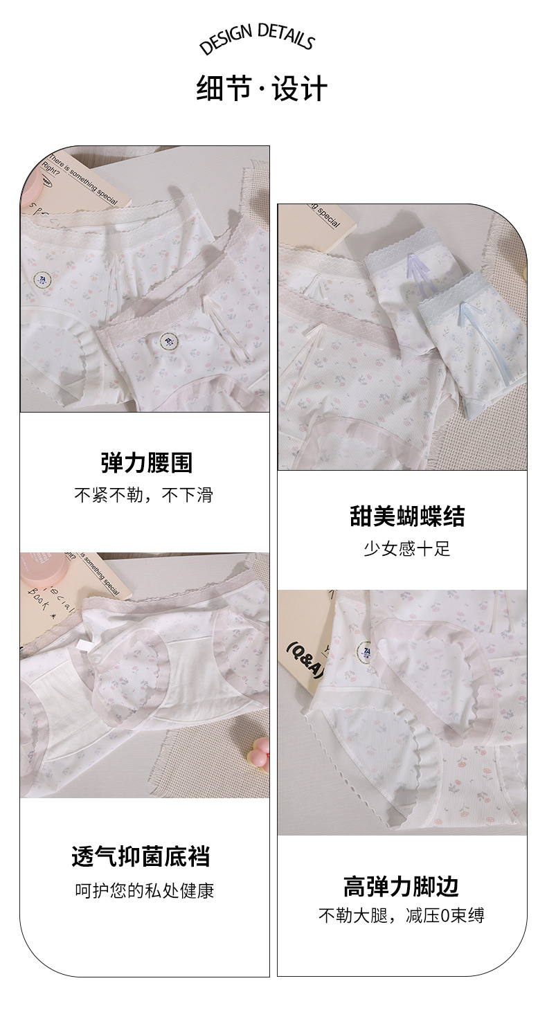 여름 얇은 프랑스 꽃 소녀 속옷 활 피부 친화적 인 시원한 얼음 실크 탄성 중간 허리 여성 브리프스토어 가기