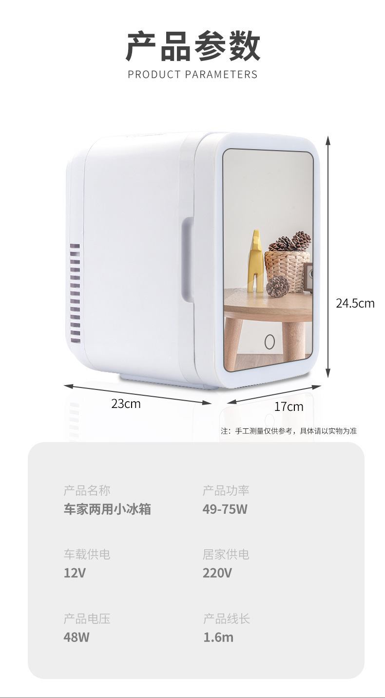 4L 자동차 거울 냉장고 자동차 홈 듀얼 사용 미니 냉장고 메이크업 마스크 화장품 가정용 냉장 상자