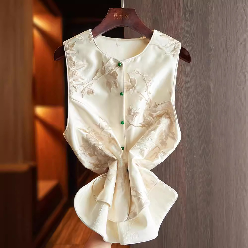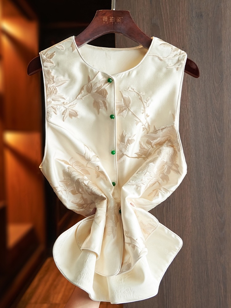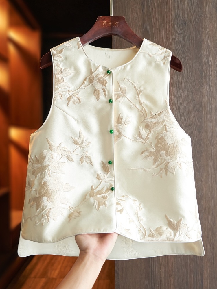 새로운 중국 스타일 조끼 여성 2024 봄 새로운 틈새 디자인 복고풍 국가 패션 스타일 자수 조끼 코트