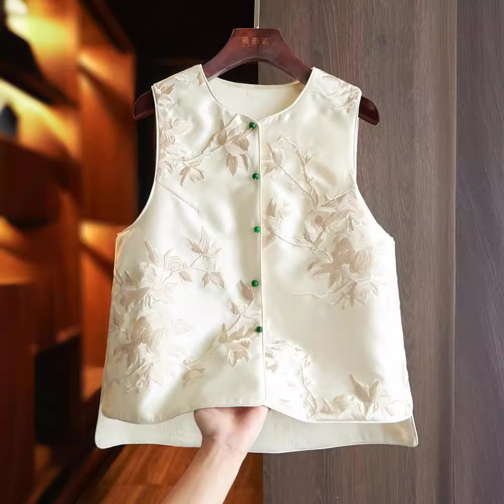 새로운 중국 스타일 조끼 여성 2024 봄 새로운 틈새 디자인 복고풍 국가 패션 스타일 자수 조끼 코트스토어 가기