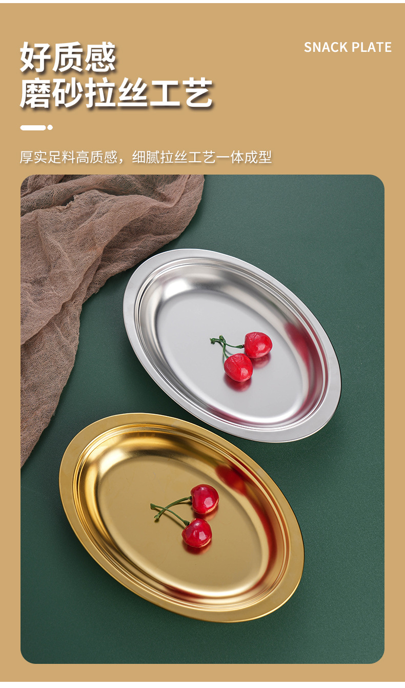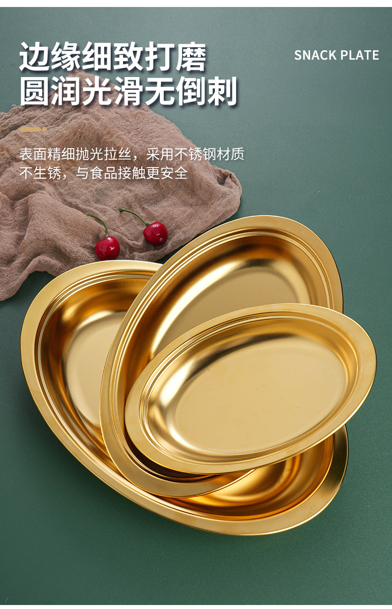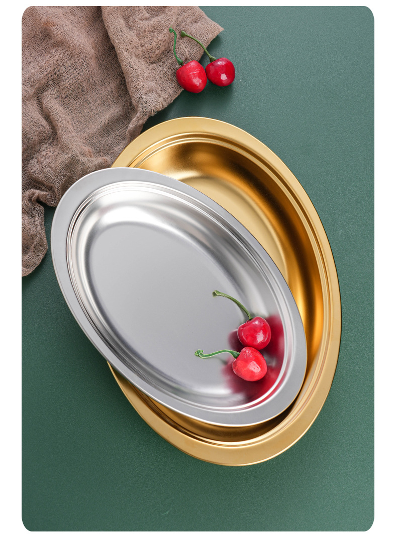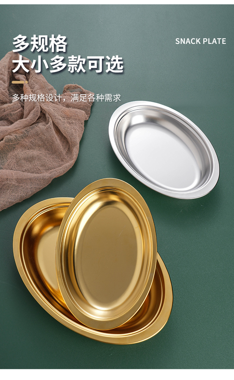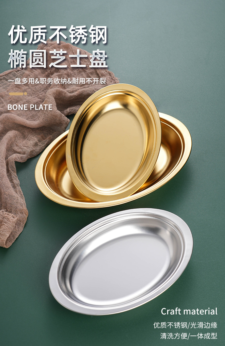 304 스테인레스 스틸 타원형 접시 오븐 한국어 치즈 황금 바베큐 플랫 플레이트 두꺼운 생선 접시 트레이 디저트