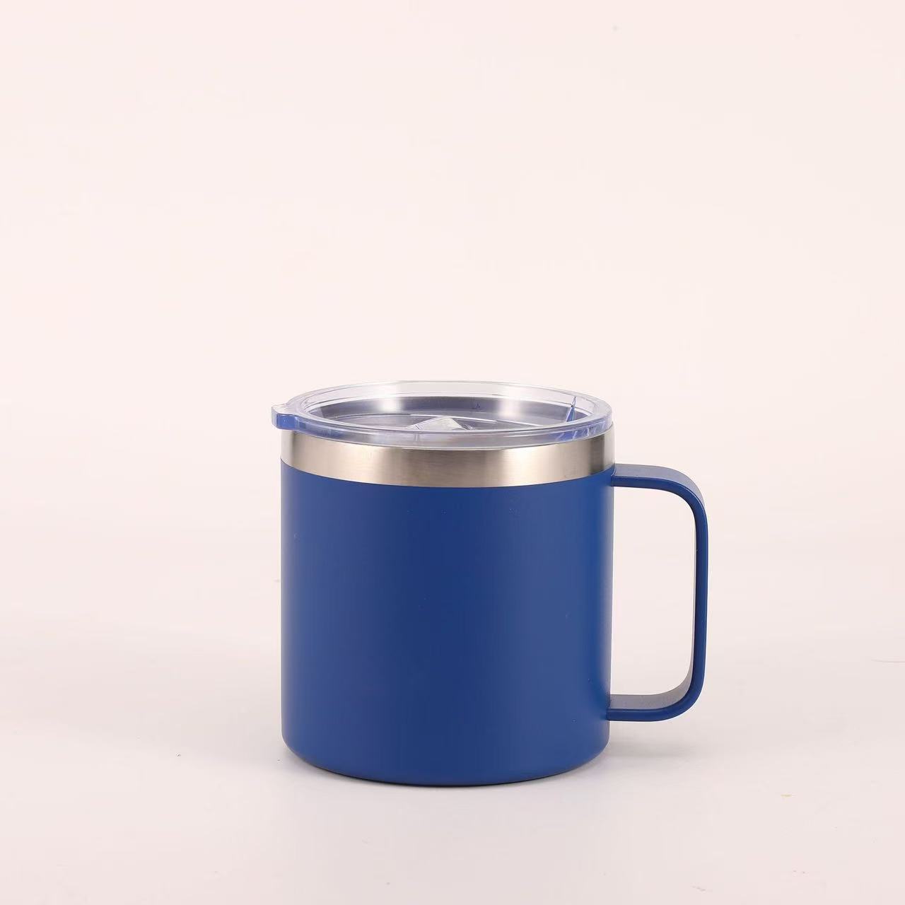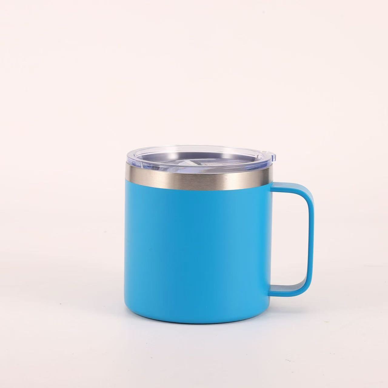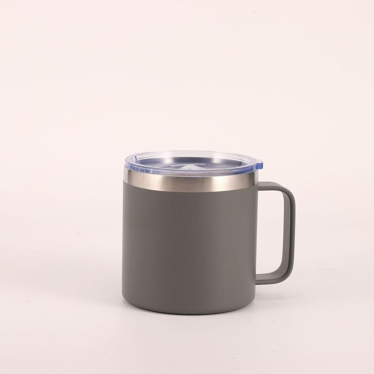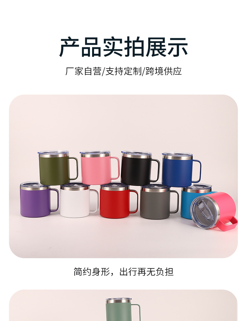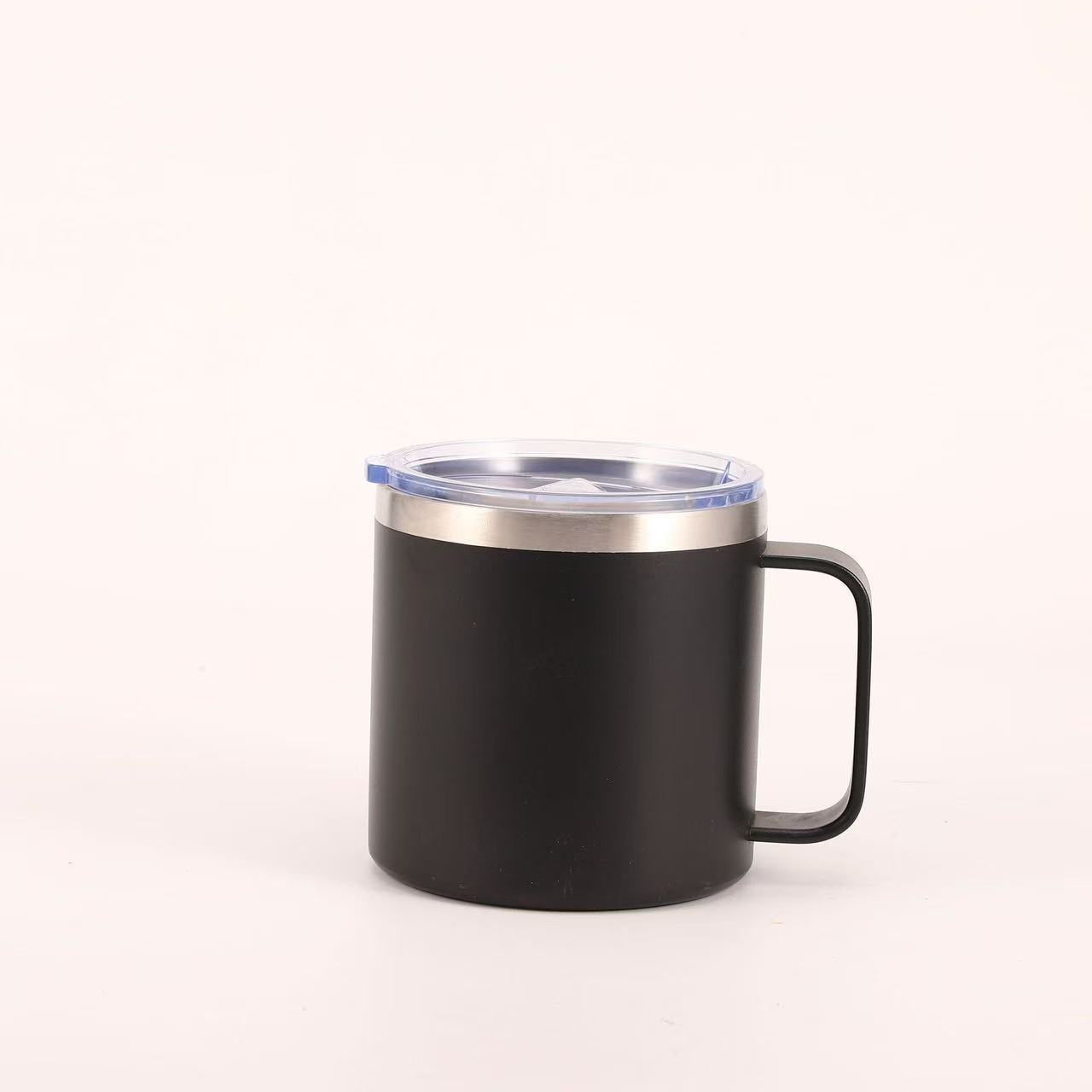 국경 12oz14oz 스테인레스 스틸 진공 머그잔 핸들 머그잔 스프레이 플라스틱 뚜껑 휴대용 커피 컵