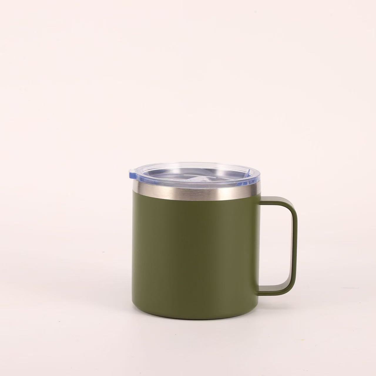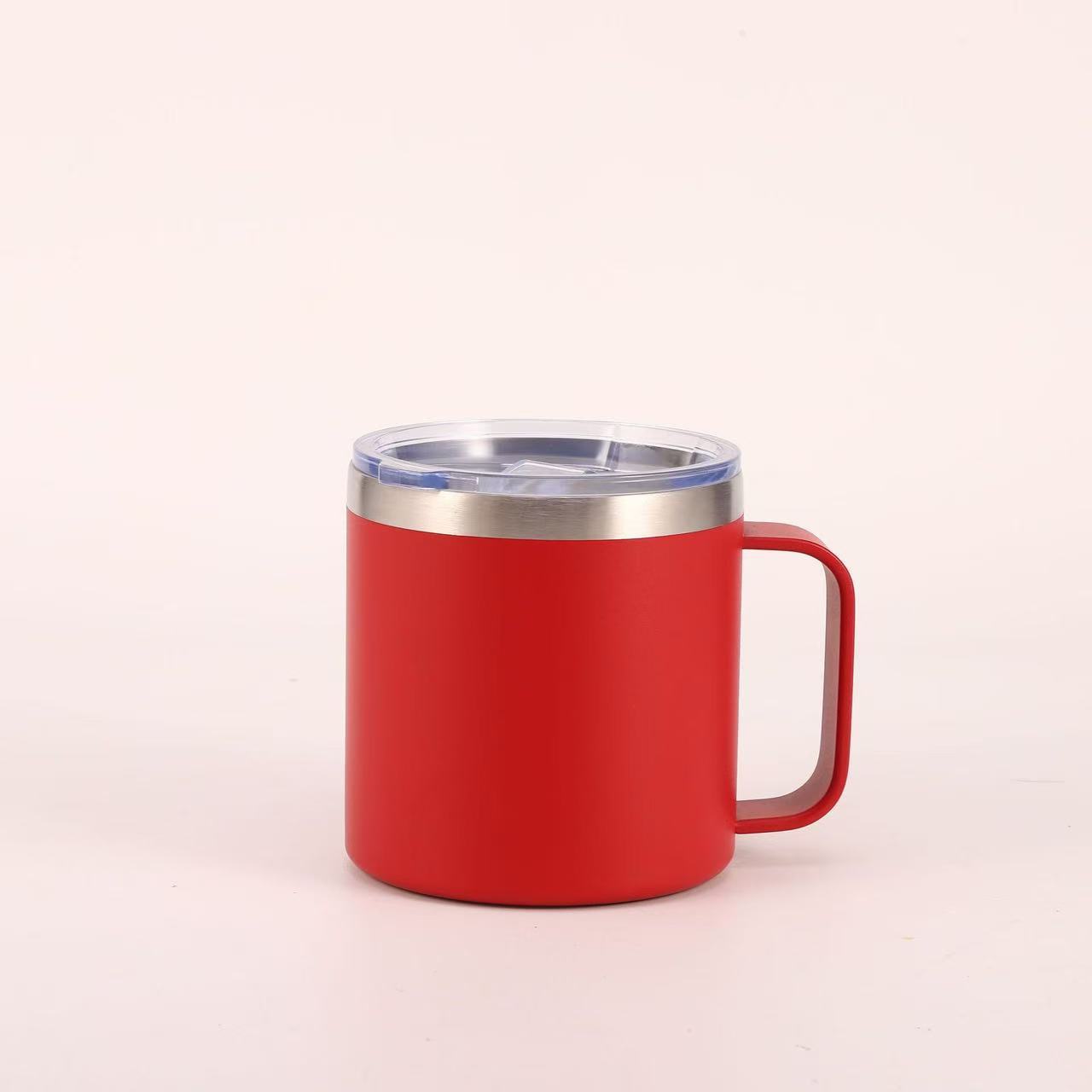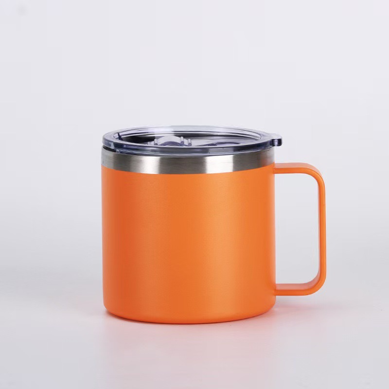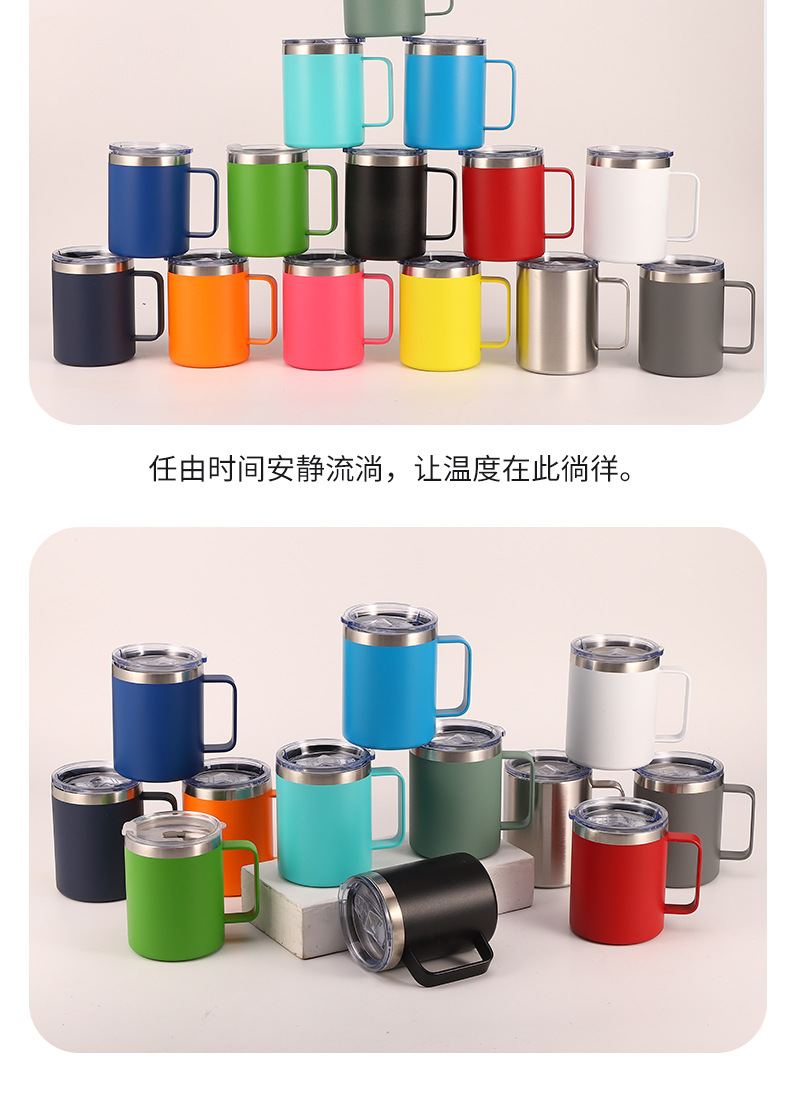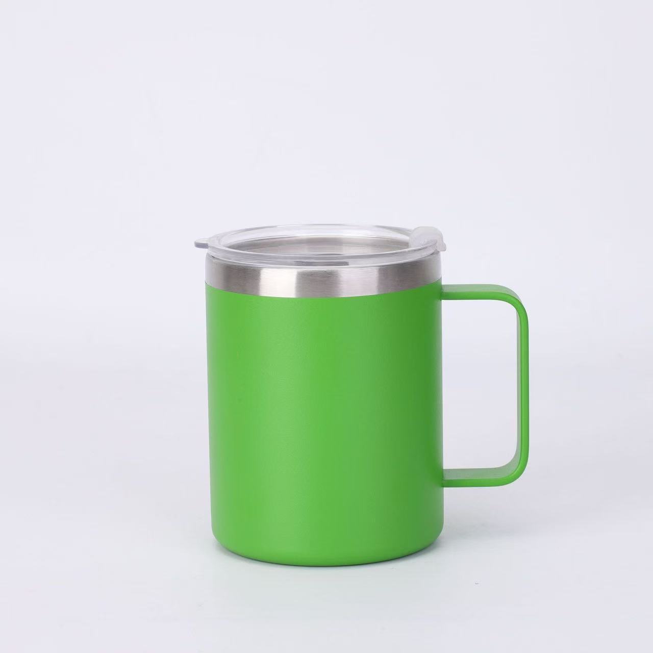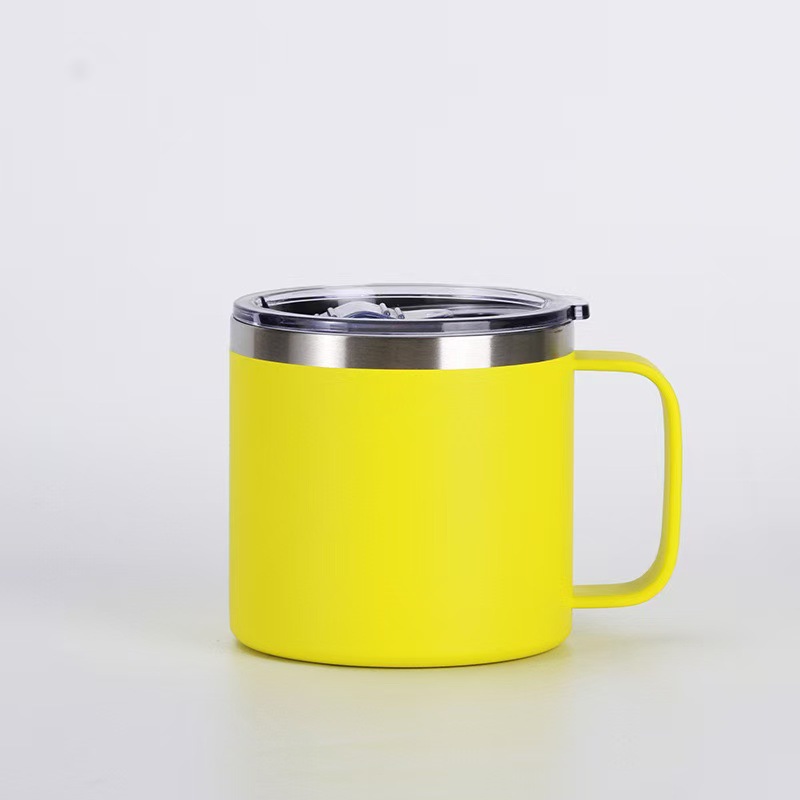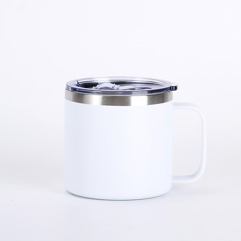 국경 12oz14oz 스테인레스 스틸 진공 머그잔 핸들 머그잔 스프레이 플라스틱 뚜껑 휴대용 커피 컵