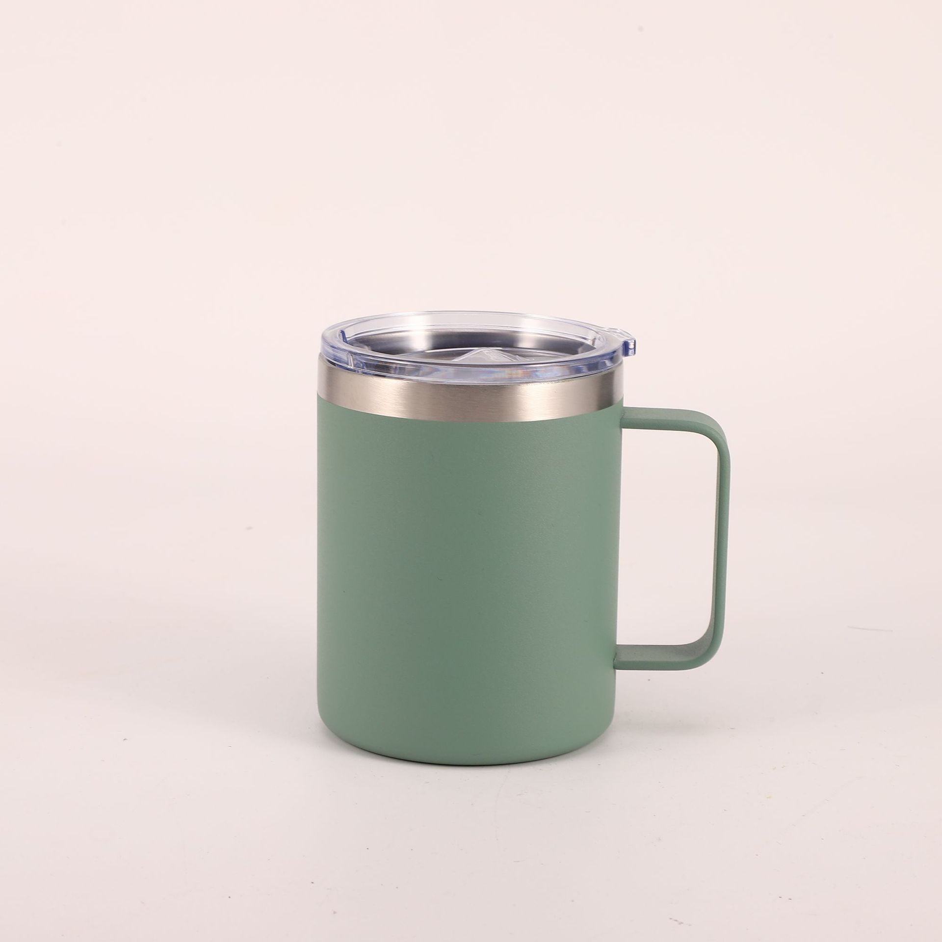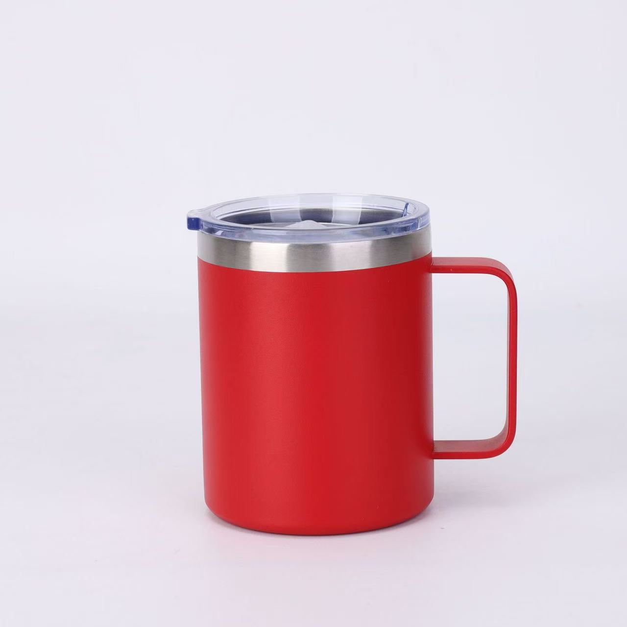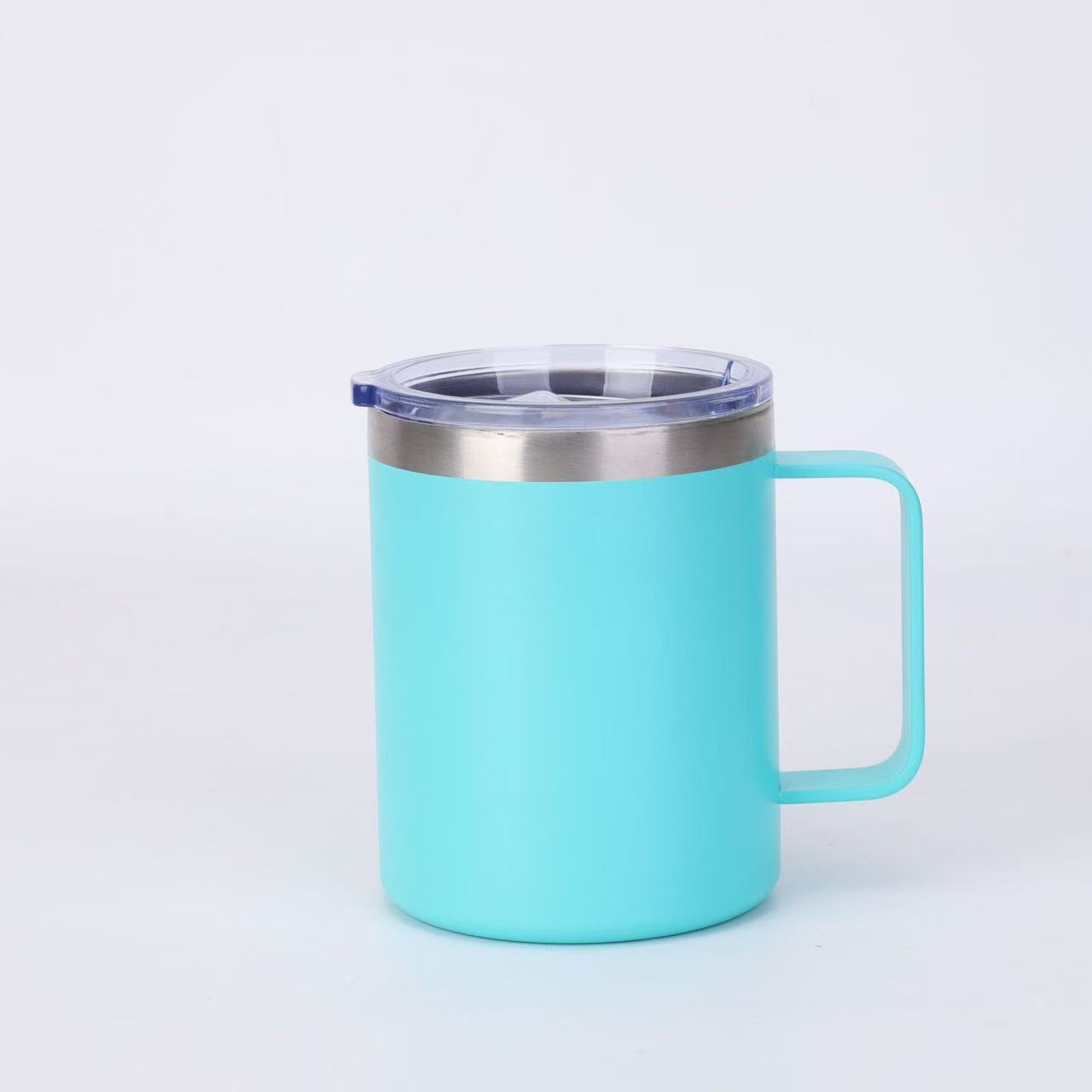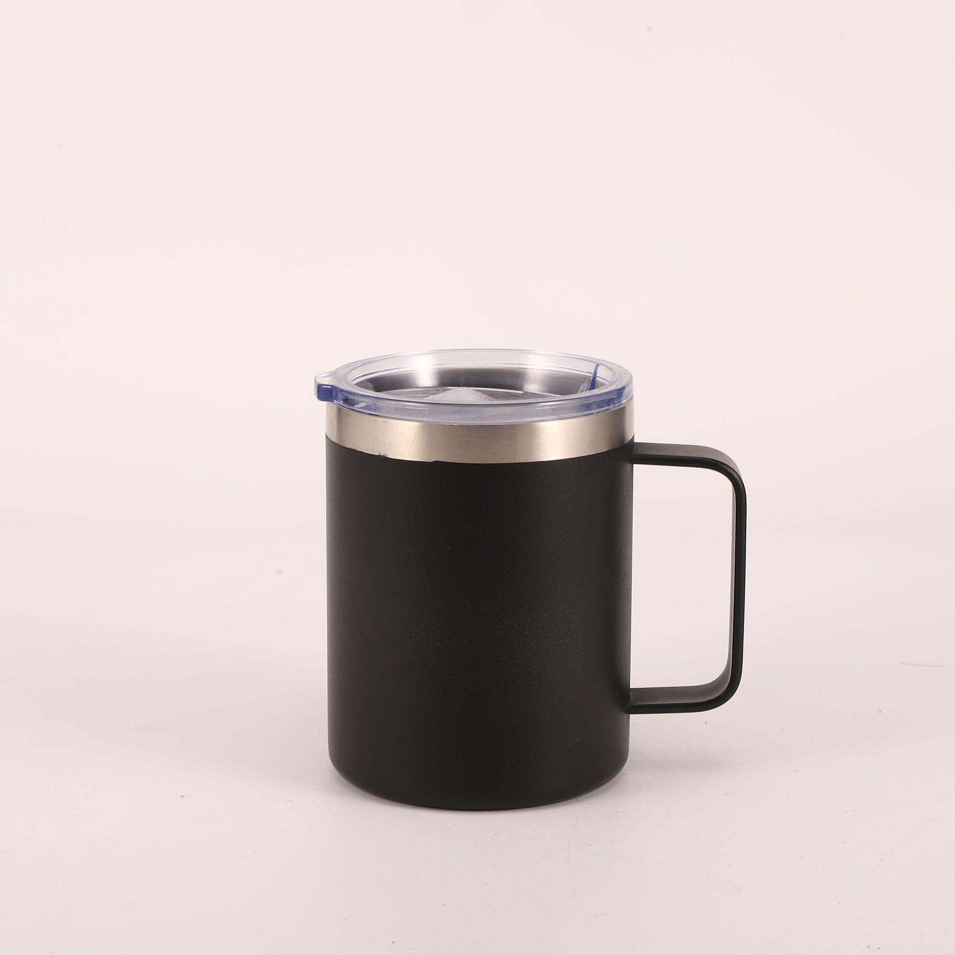 국경 12oz14oz 스테인레스 스틸 진공 머그잔 핸들 머그잔 스프레이 플라스틱 뚜껑 휴대용 커피 컵