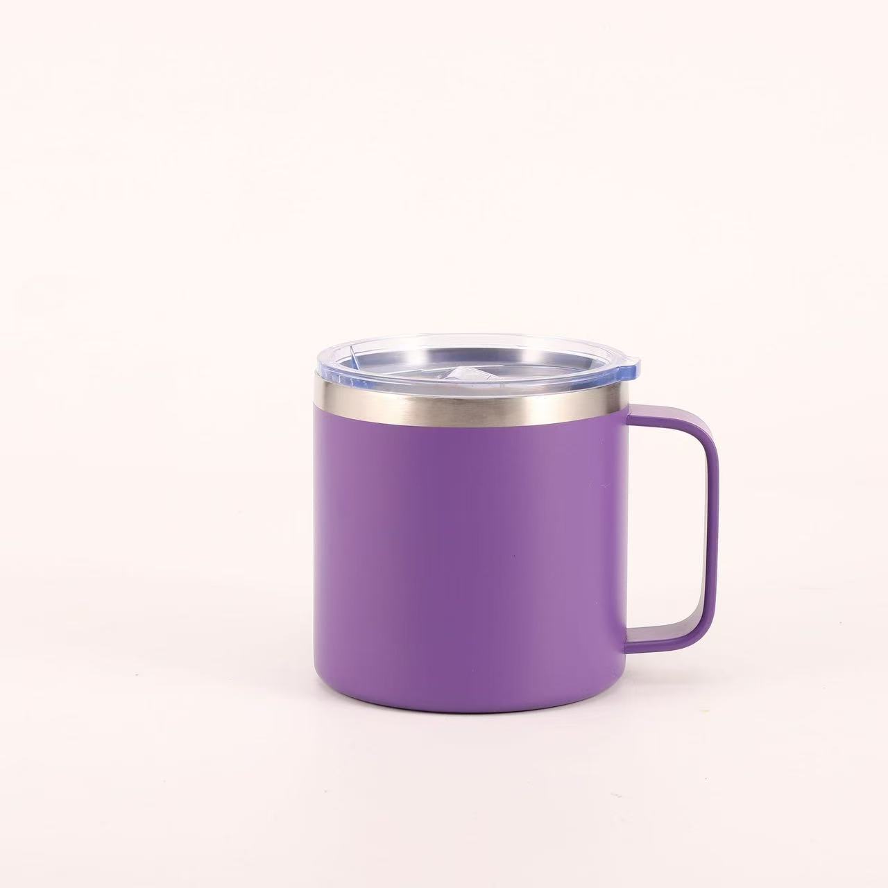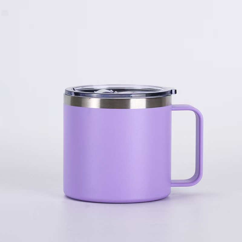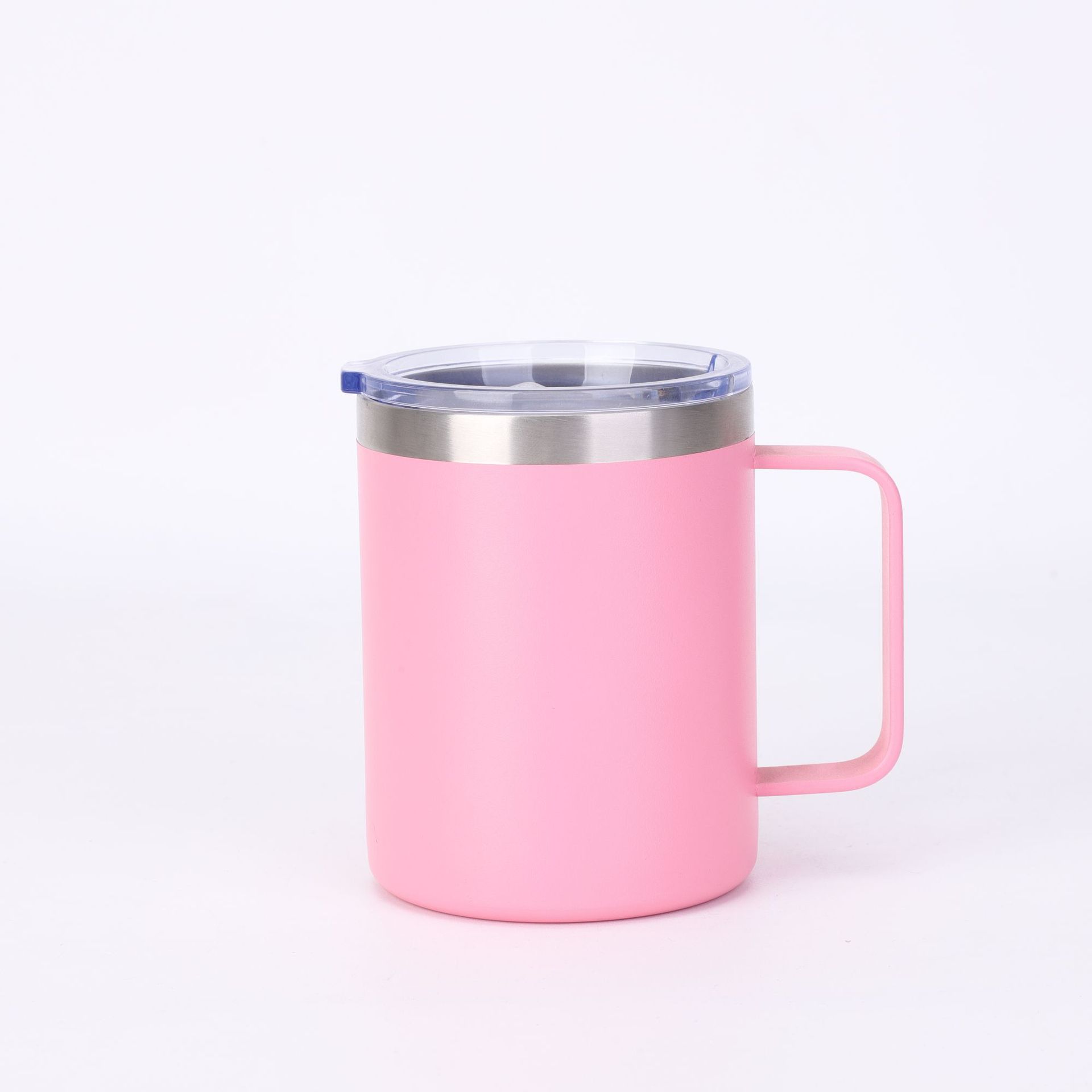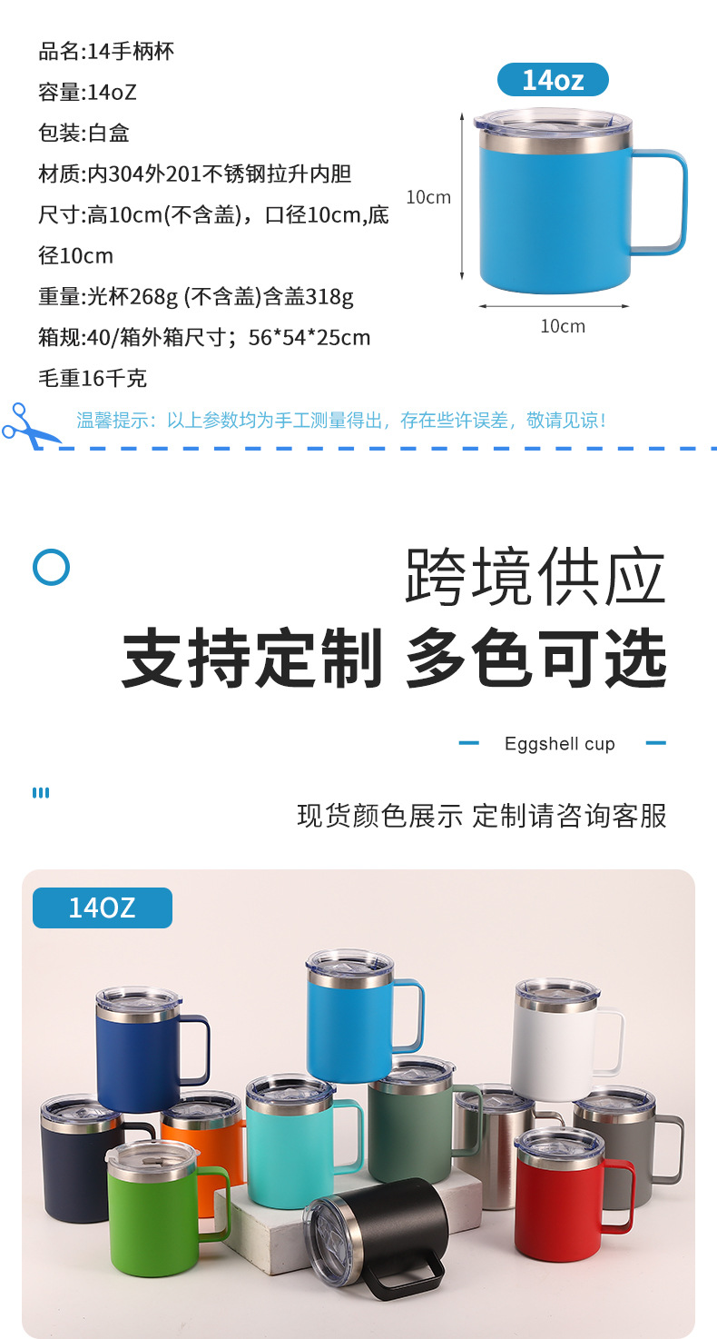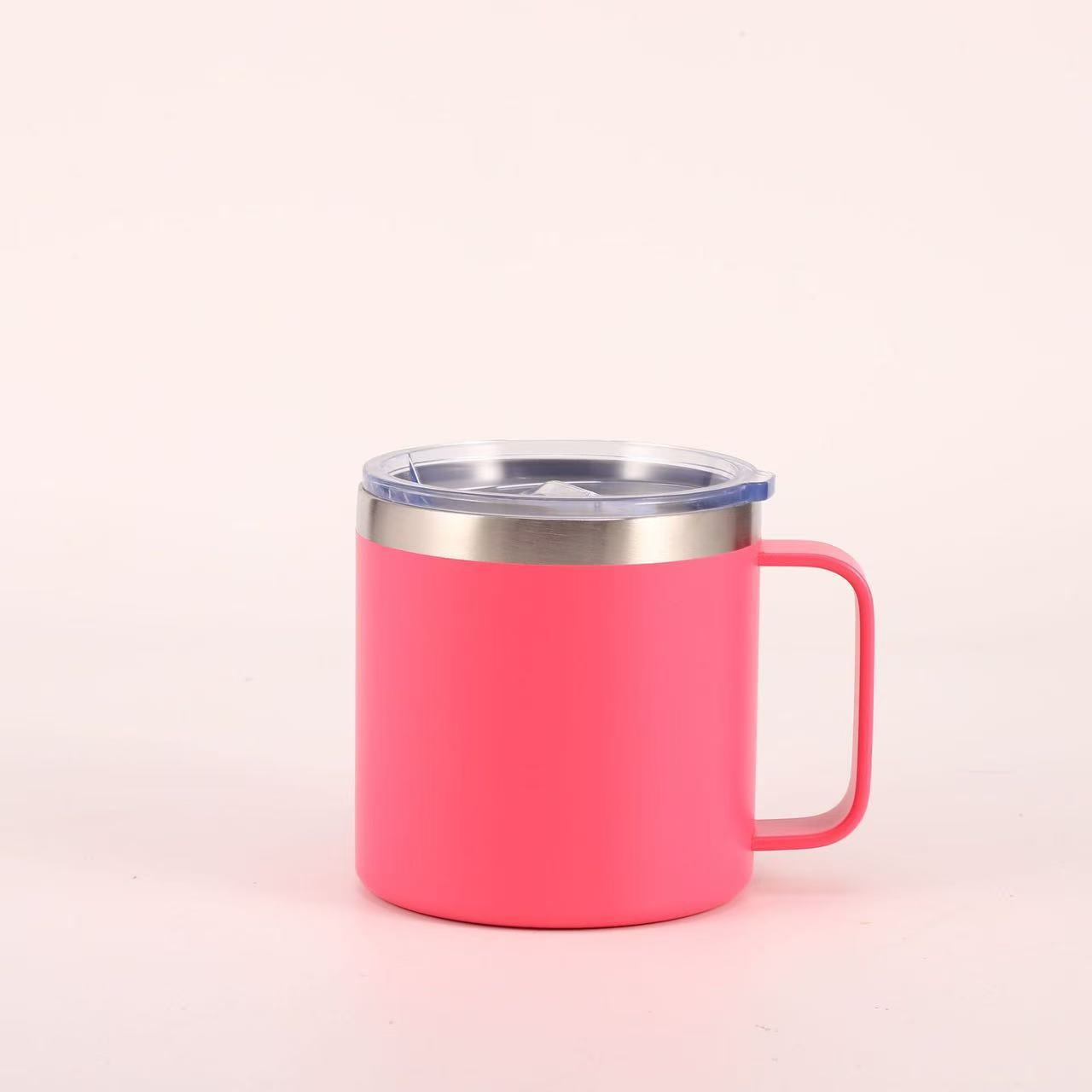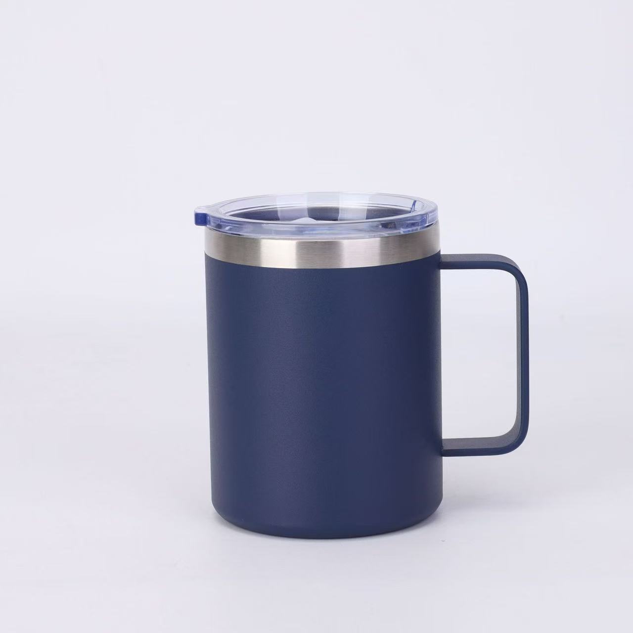 국경 12oz14oz 스테인레스 스틸 진공 머그잔 핸들 머그잔 스프레이 플라스틱 뚜껑 휴대용 커피 컵