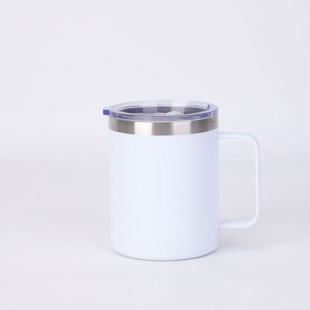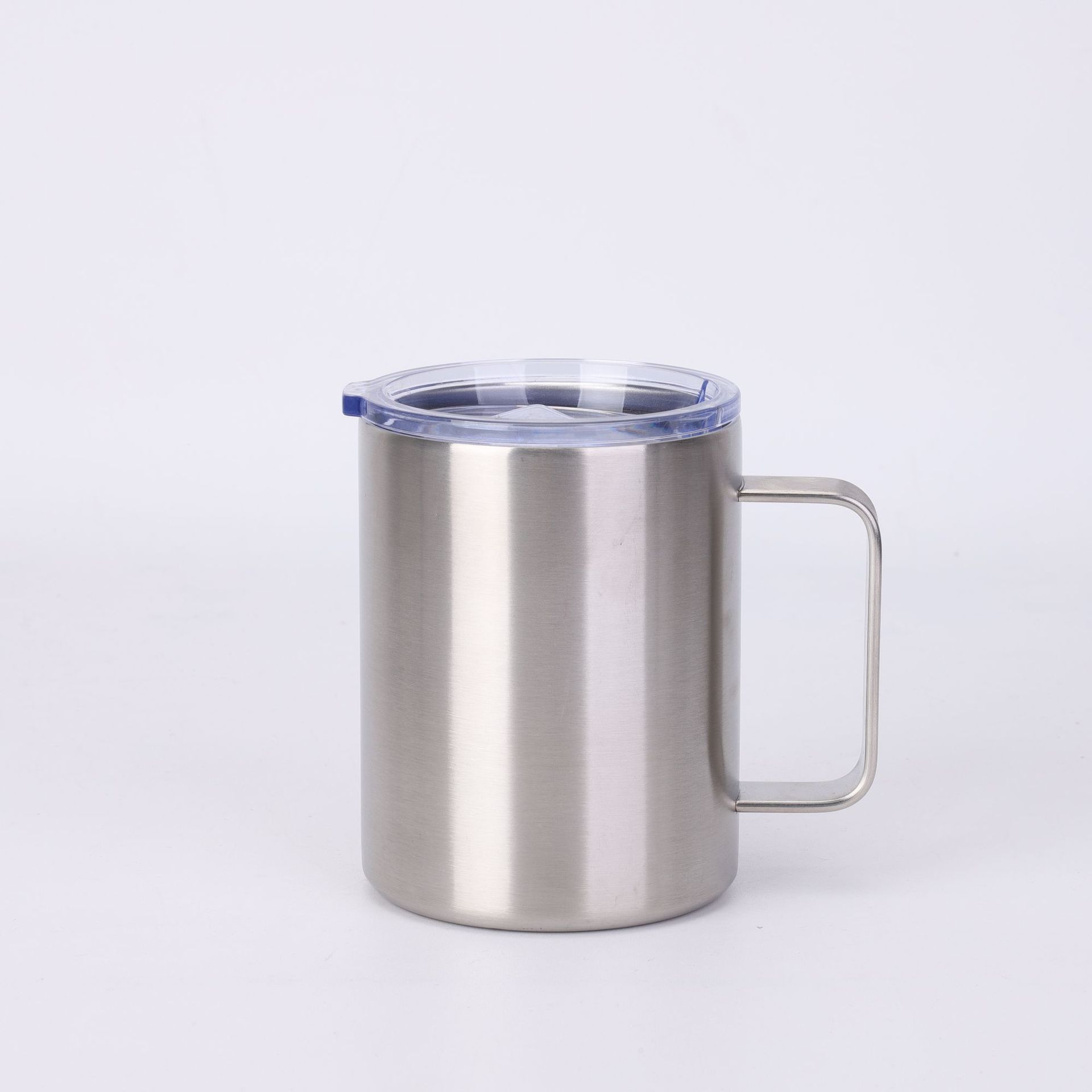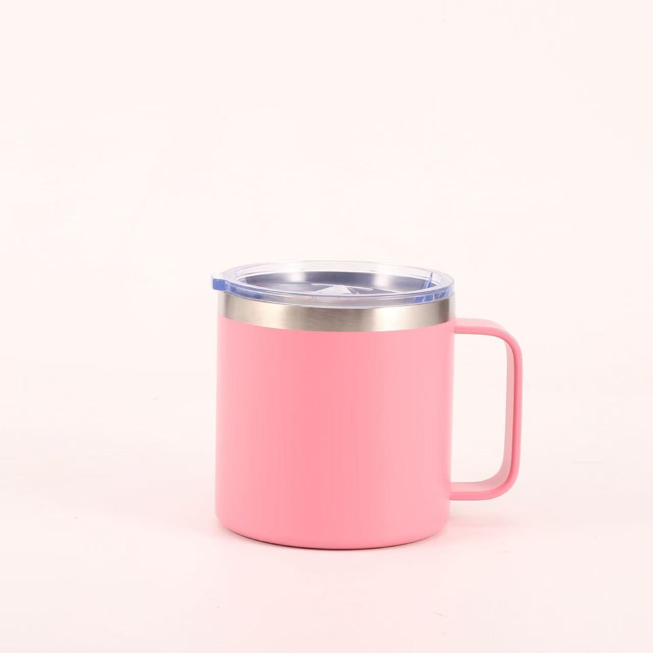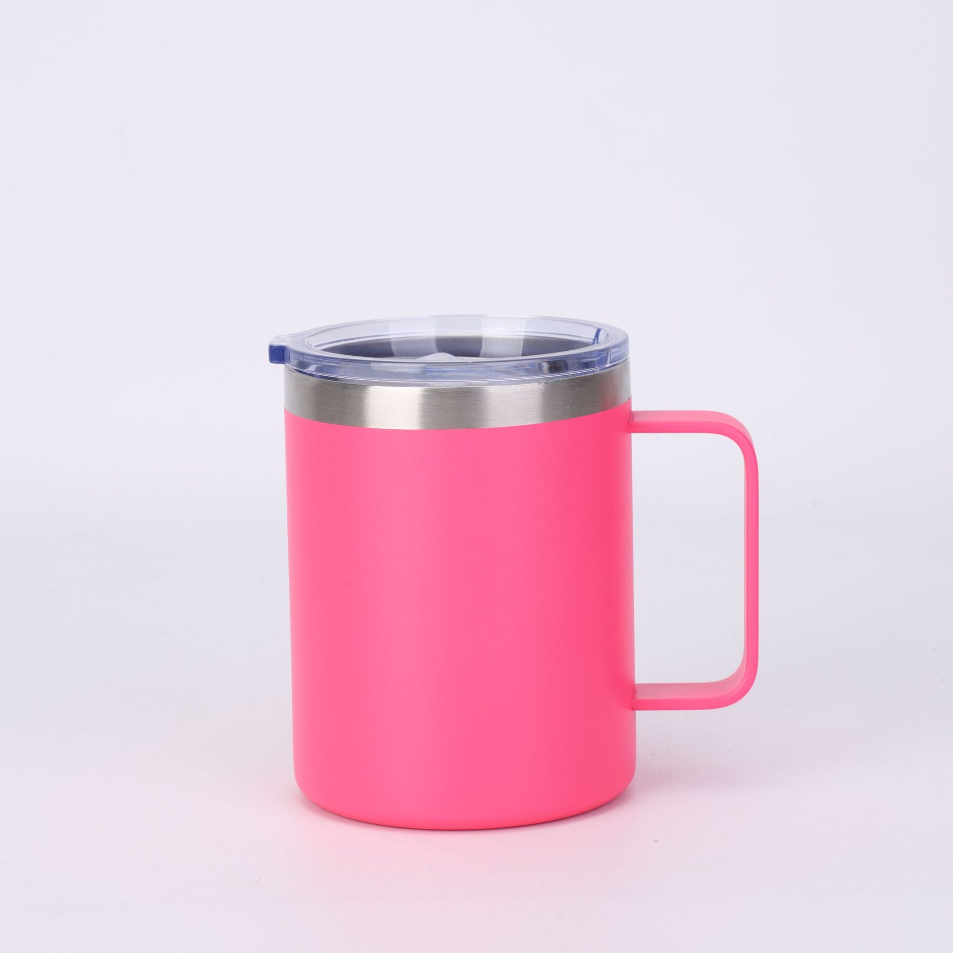 국경 12oz14oz 스테인레스 스틸 진공 머그잔 핸들 머그잔 스프레이 플라스틱 뚜껑 휴대용 커피 컵
