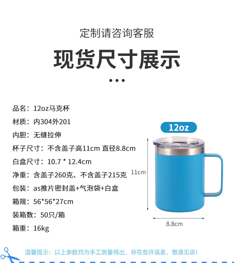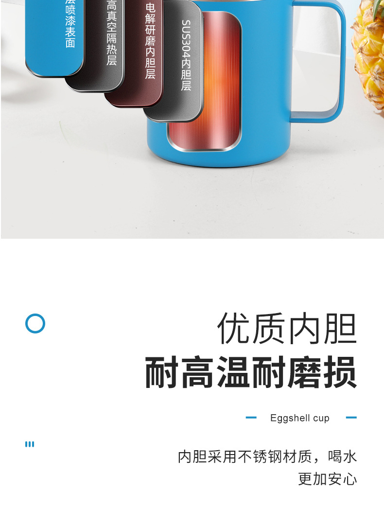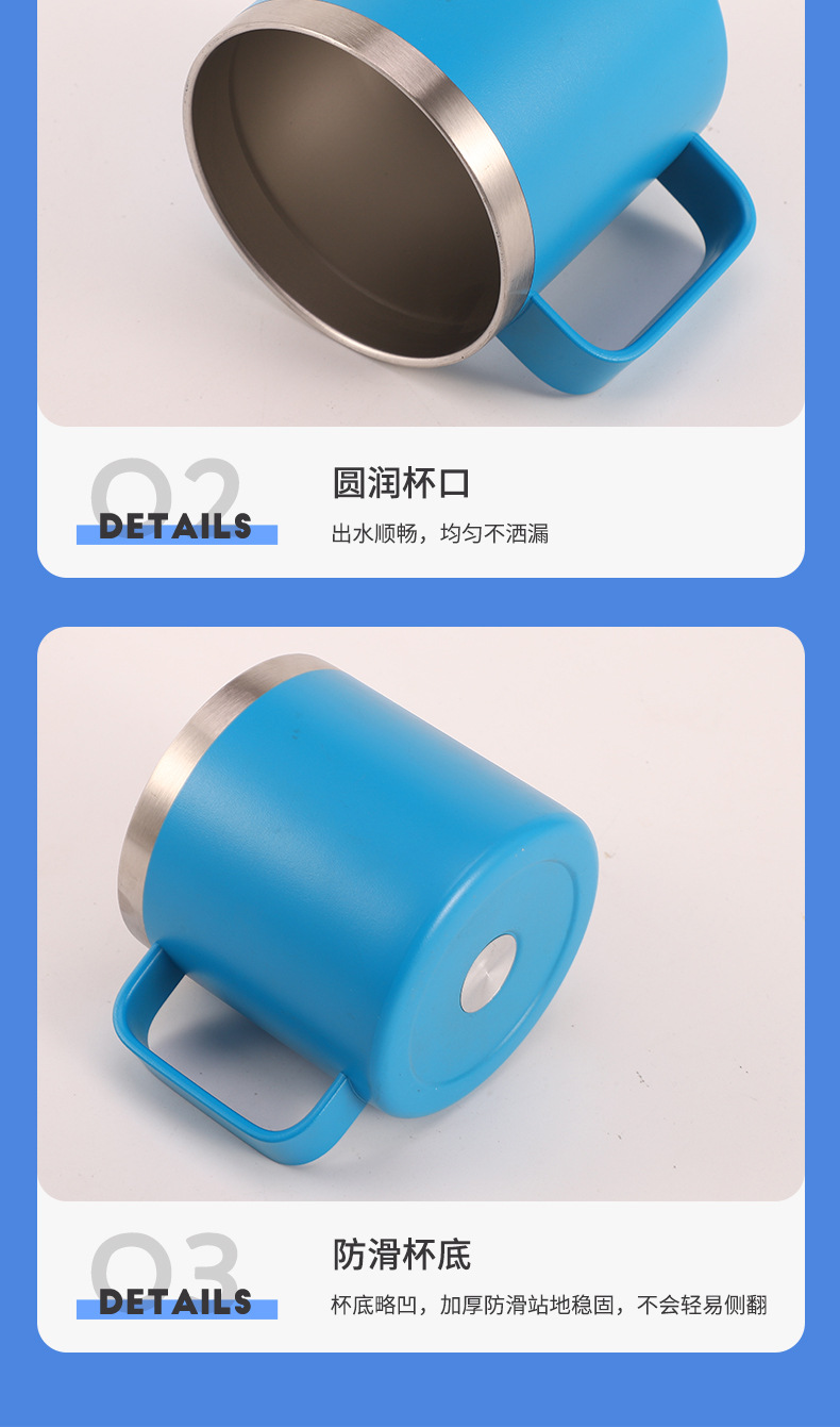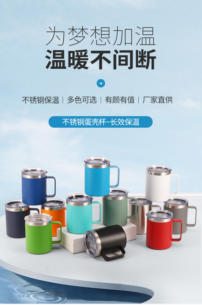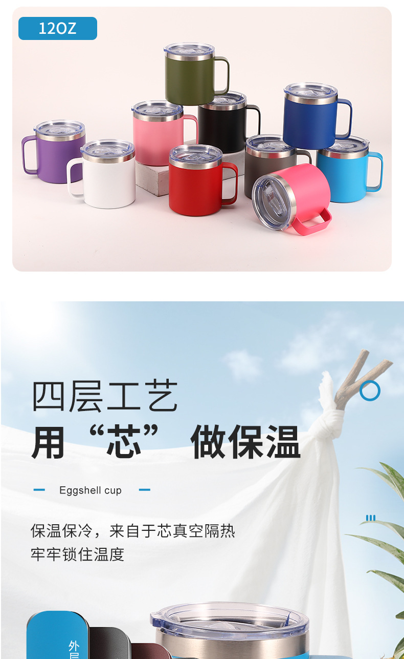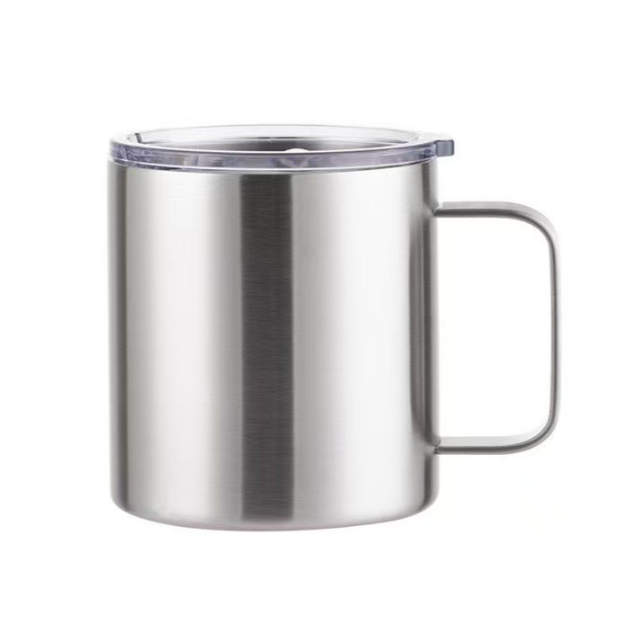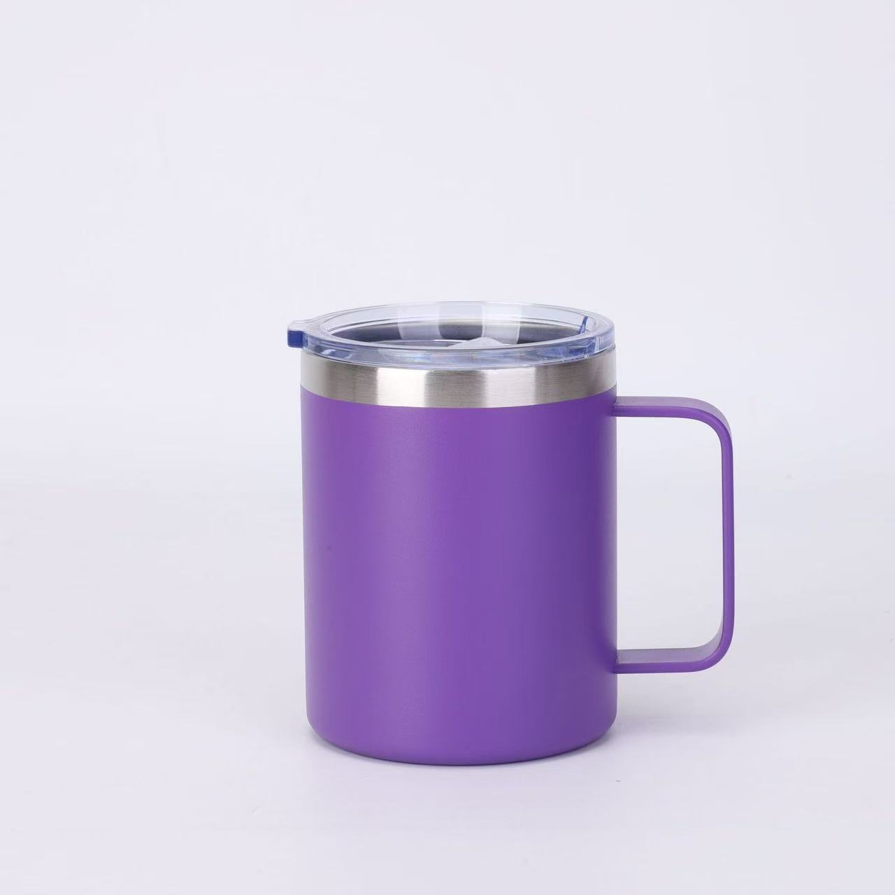국경 12oz14oz 스테인레스 스틸 진공 머그잔 핸들 머그잔 스프레이 플라스틱 뚜껑 휴대용 커피 컵