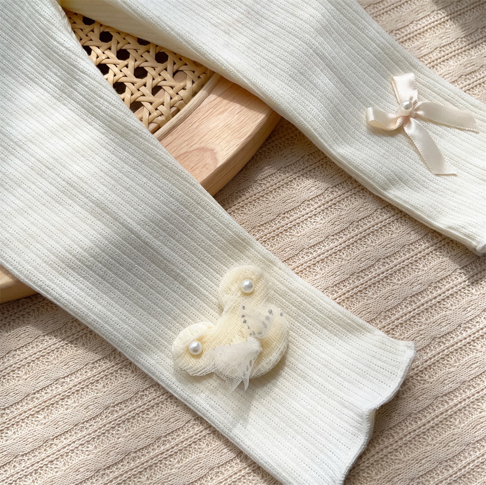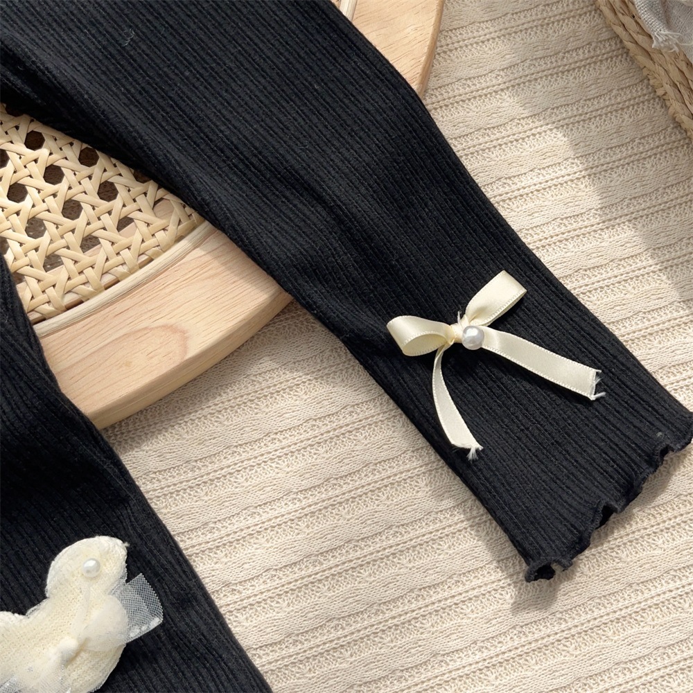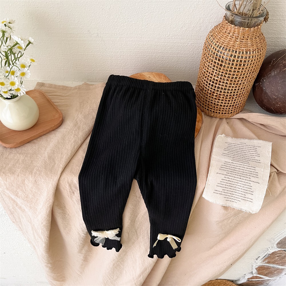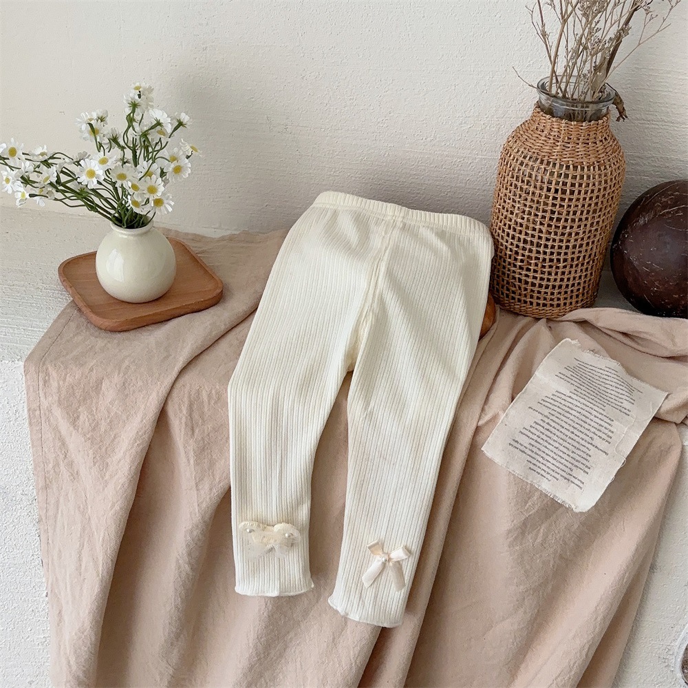 여아 레깅스 봄 가을 2025 가을 리본 한국 스타일 단색 신축성 슬림핏 긴바지 아기 레깅스