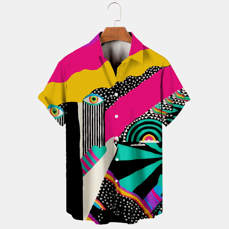 최신 유럽과 미국의 여름 반팔 셔츠 3D 디지털 인쇄 셔츠 캐주얼 패션 남성 반팔 스포츠 셔츠 남성