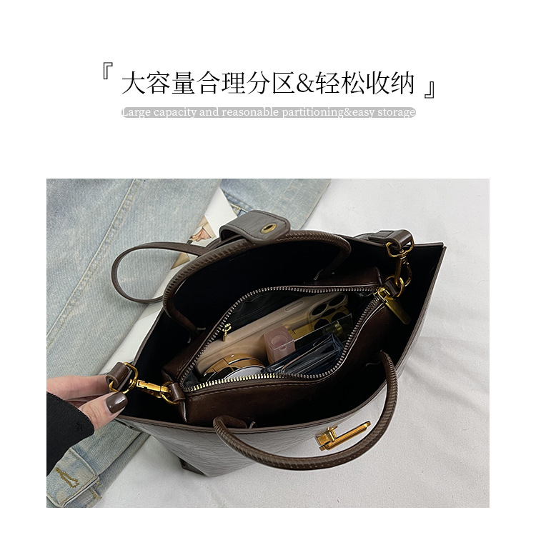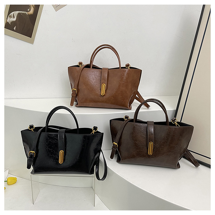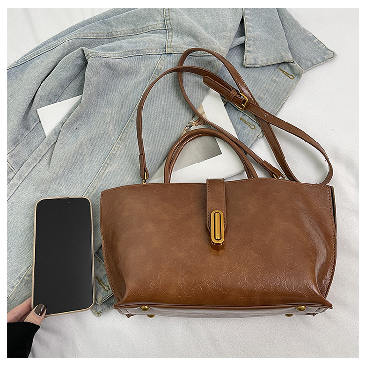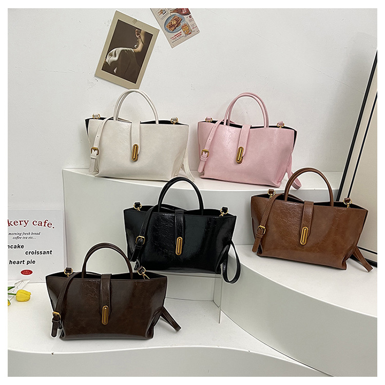 새로운 복고풍 다용도 통근 토트 백 한국식 패션 메신저 백 2024 여성용 대용량 핸드백