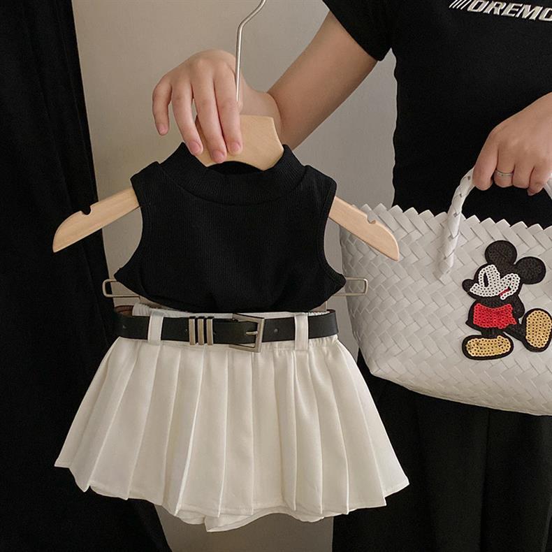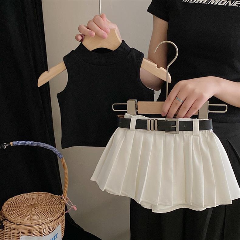 한국 스타일 아동복 2024 여름 새 스타일 소녀 유행 니트 민소매 조끼 달콤하고 시원한 패션 주름 치마 바지 정장스토어 가기