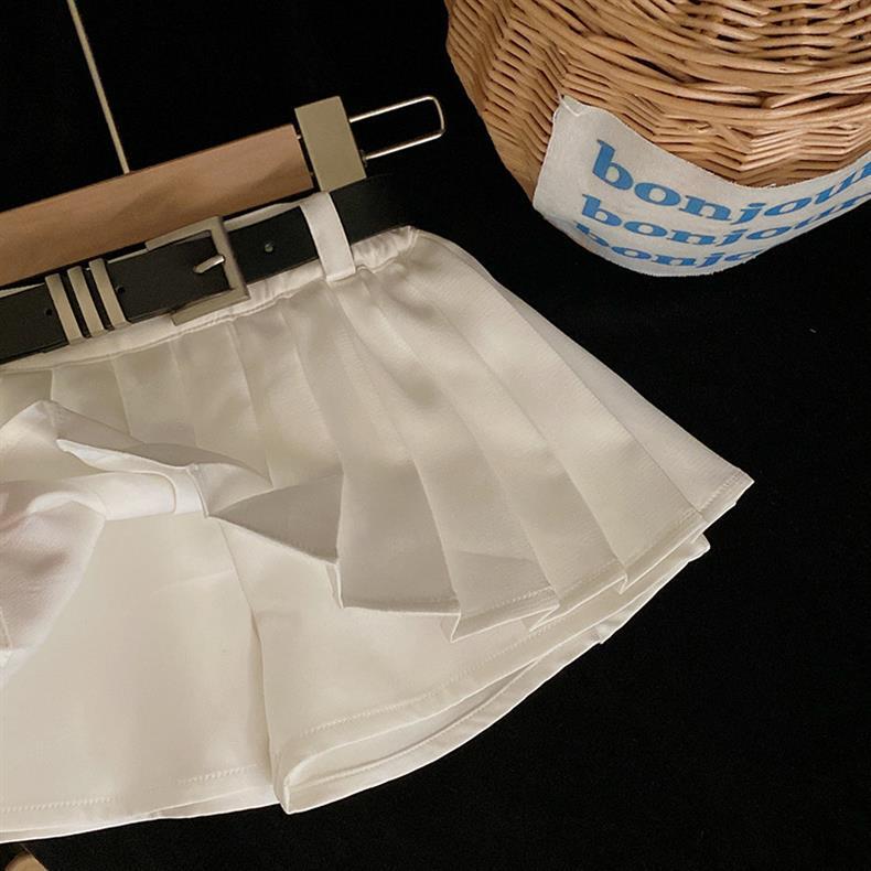 • 블랙 벨트 화이트 스커트