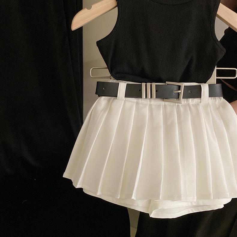 • 블랙 민소매 조끼 + 벨트 화이트 스커트