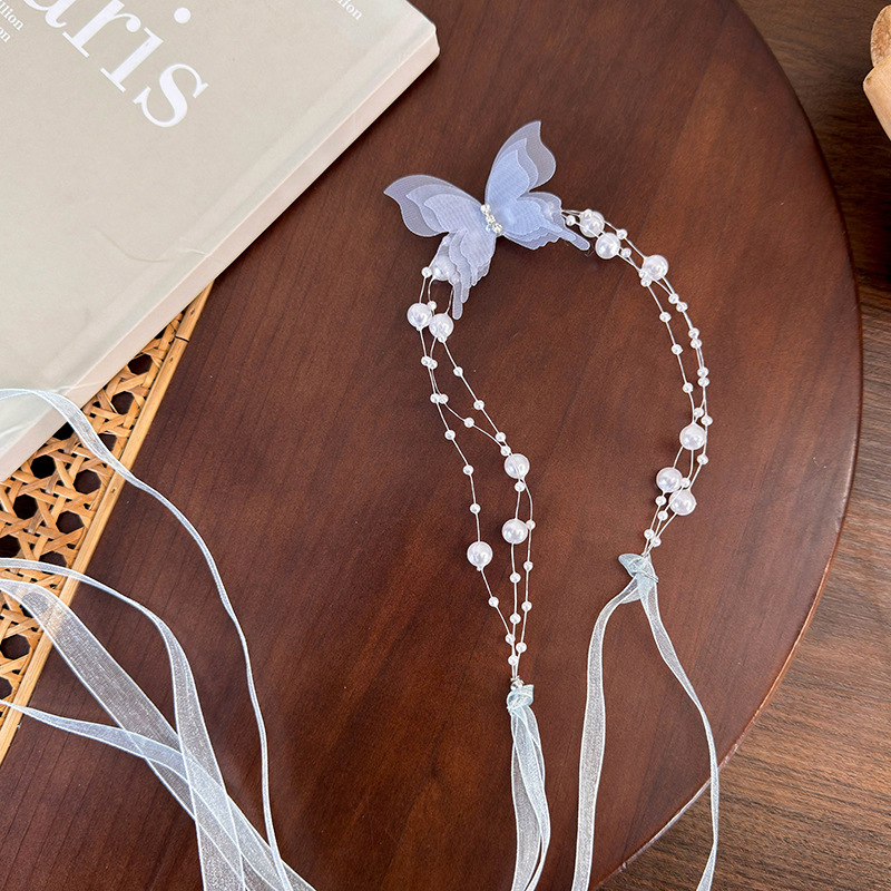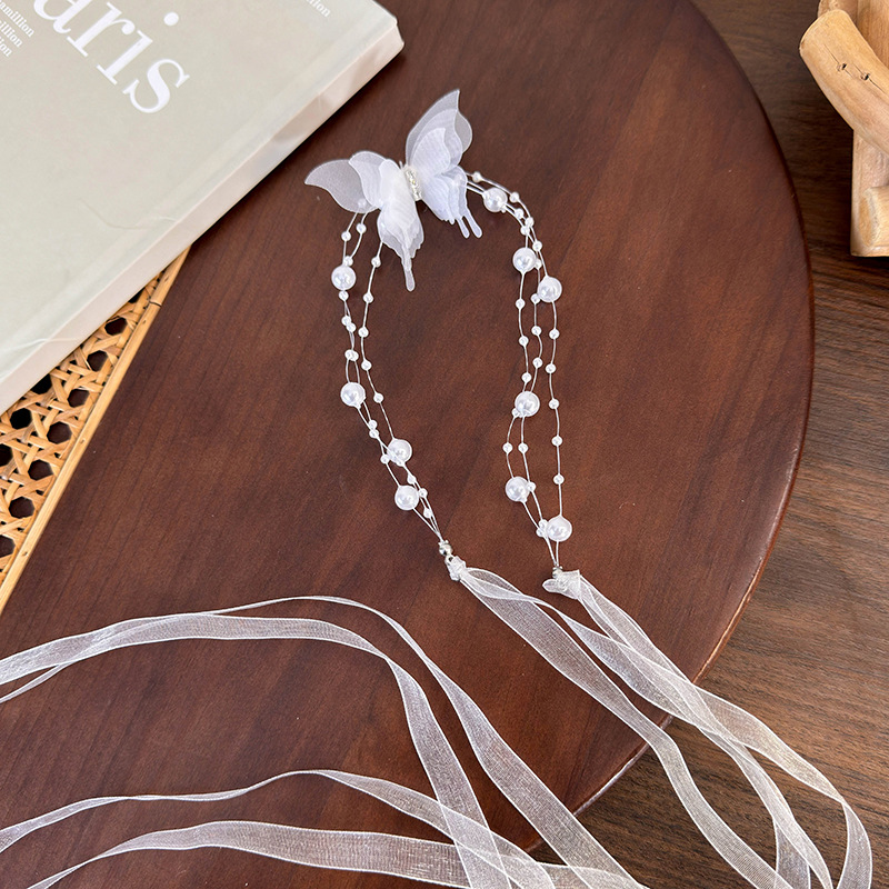 우아한 나비 진주 리본 이중 사용 목걸이 여성 틈새 패션 감각 쇄골 체인 2024 새로운 올 매치 넥 체인스토어 가기