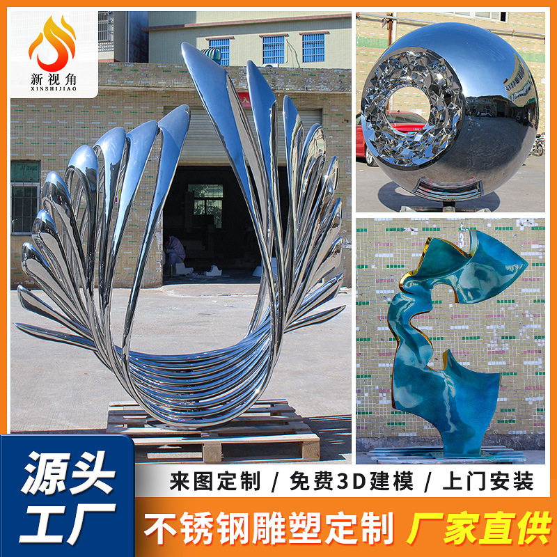 야외 광장 수경 파도 조각 제조 업체 대형 금속 반지 장식품 거울 스테인레스 스틸 조각 사용자 정의스토어 가기