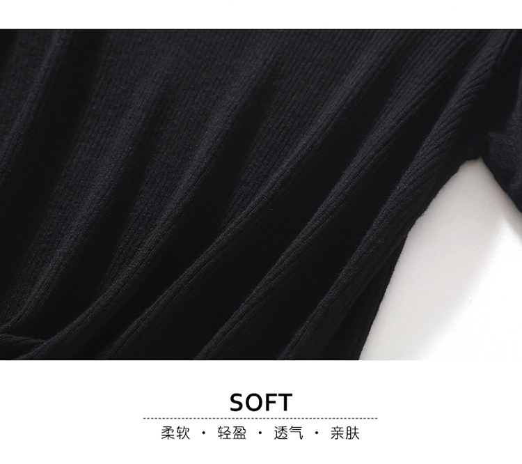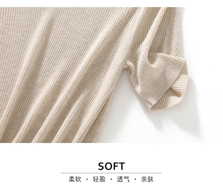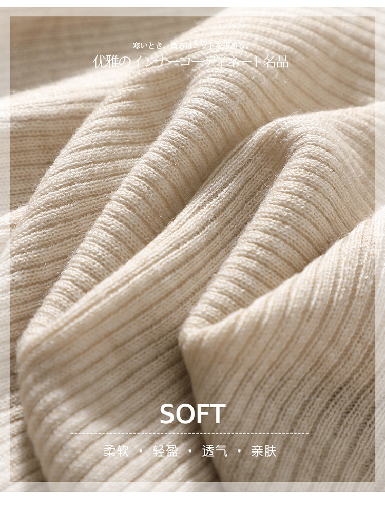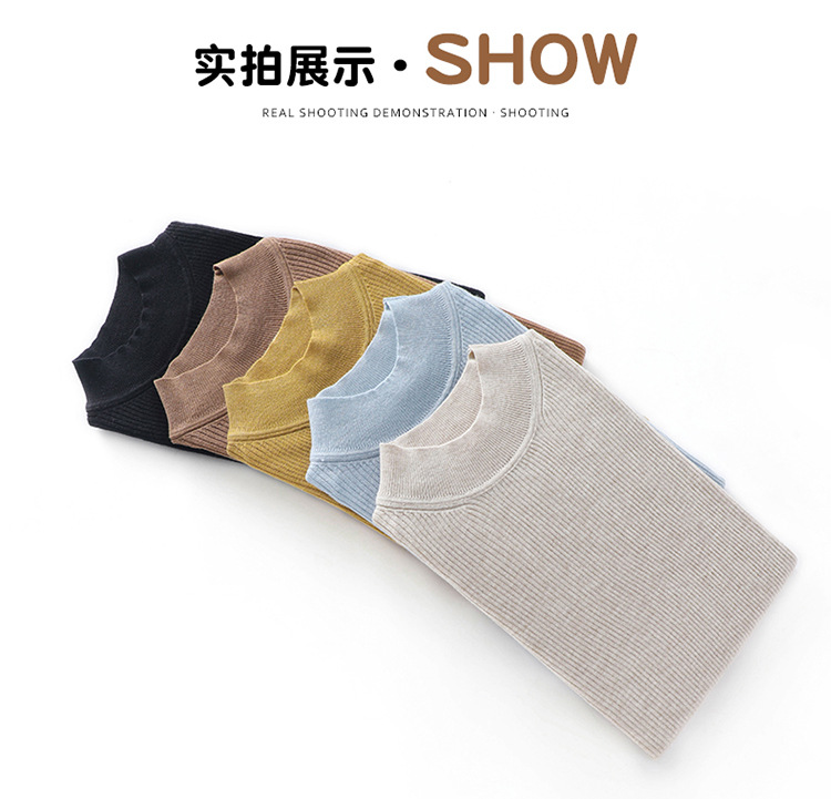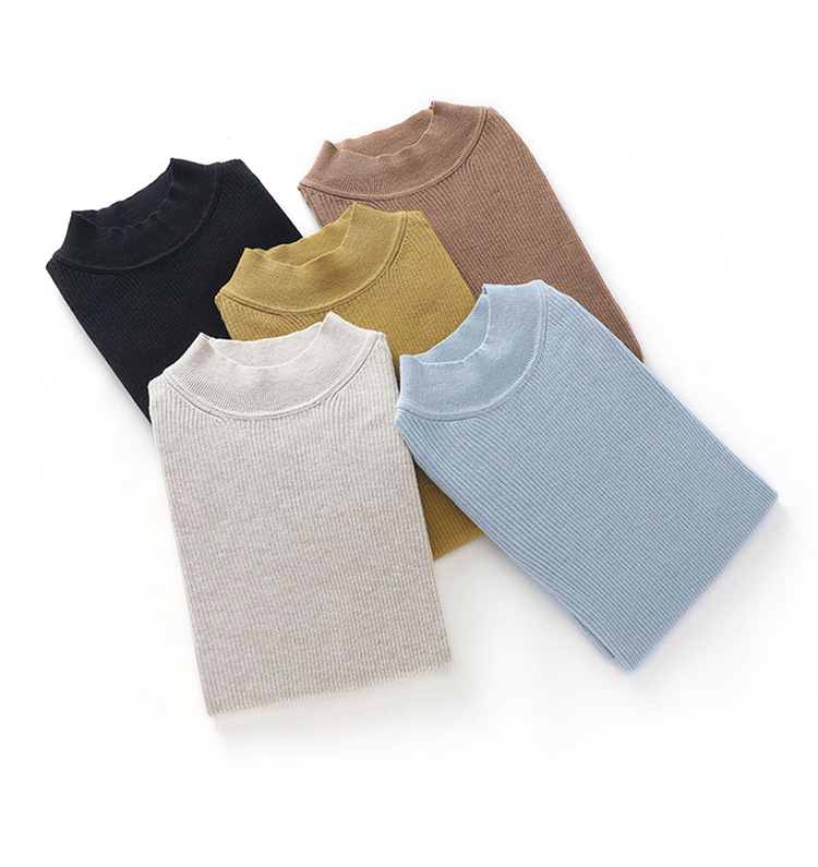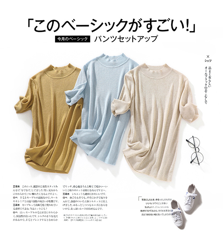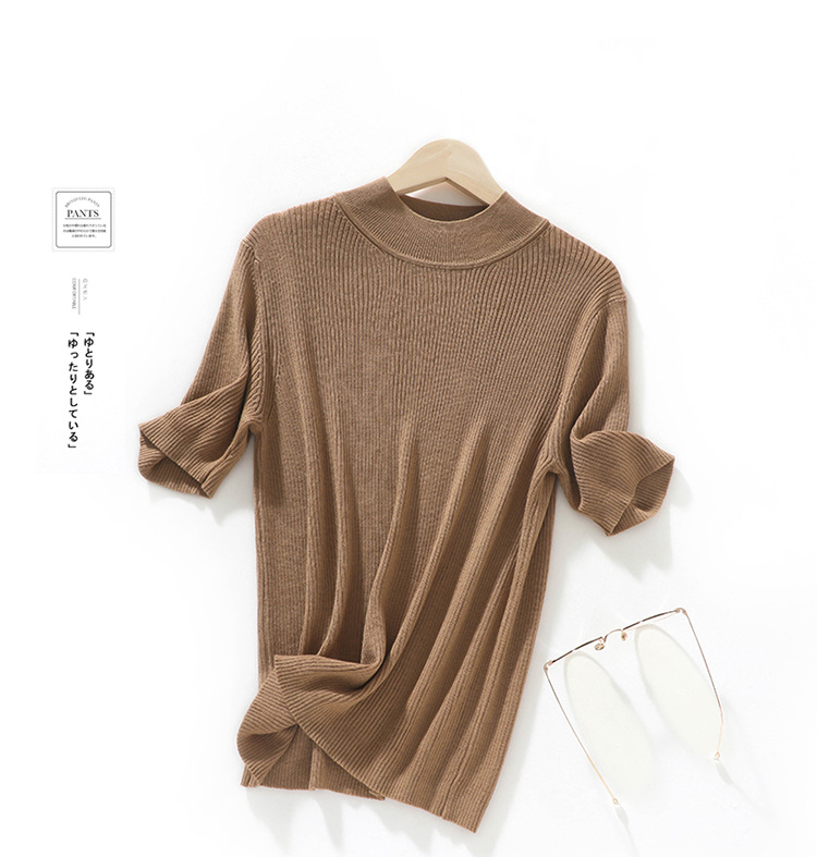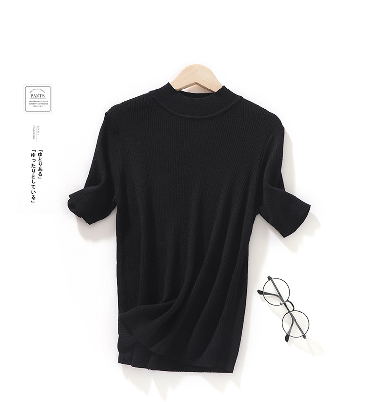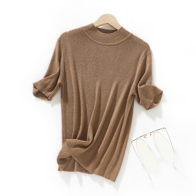 봄과 여름 우아한 통근 간단한 단색 얇은 통기성 슬림 바닥 울모 반 터틀넥 니트 반소매스토어 가기