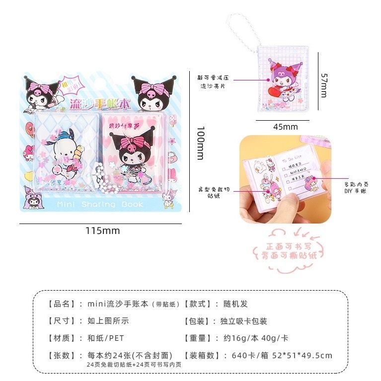 휴대용 귀여운 저널 북 산리오 미니 에디션 노트북 공유 책 스티커 퀵 샌드 콩 메모장