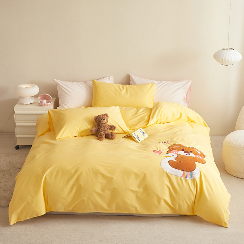모성 및 아동 클래스 A 면화 40 년대 자수 4 피스 세트 귀여운 만화 면화 커버 침대 시트 3 피스 세트 in 공주 스타일스토어 가기