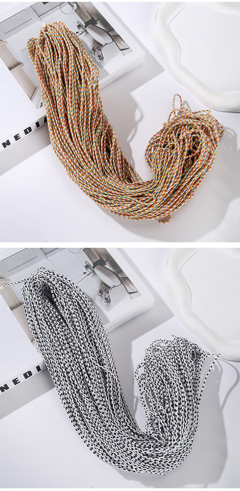 2mm 나일론 4 가닥 짠 실면 로프 DIY 의류 태피스트리 짠 코튼 로프 재봉 실 의류 액세서리