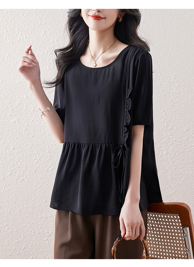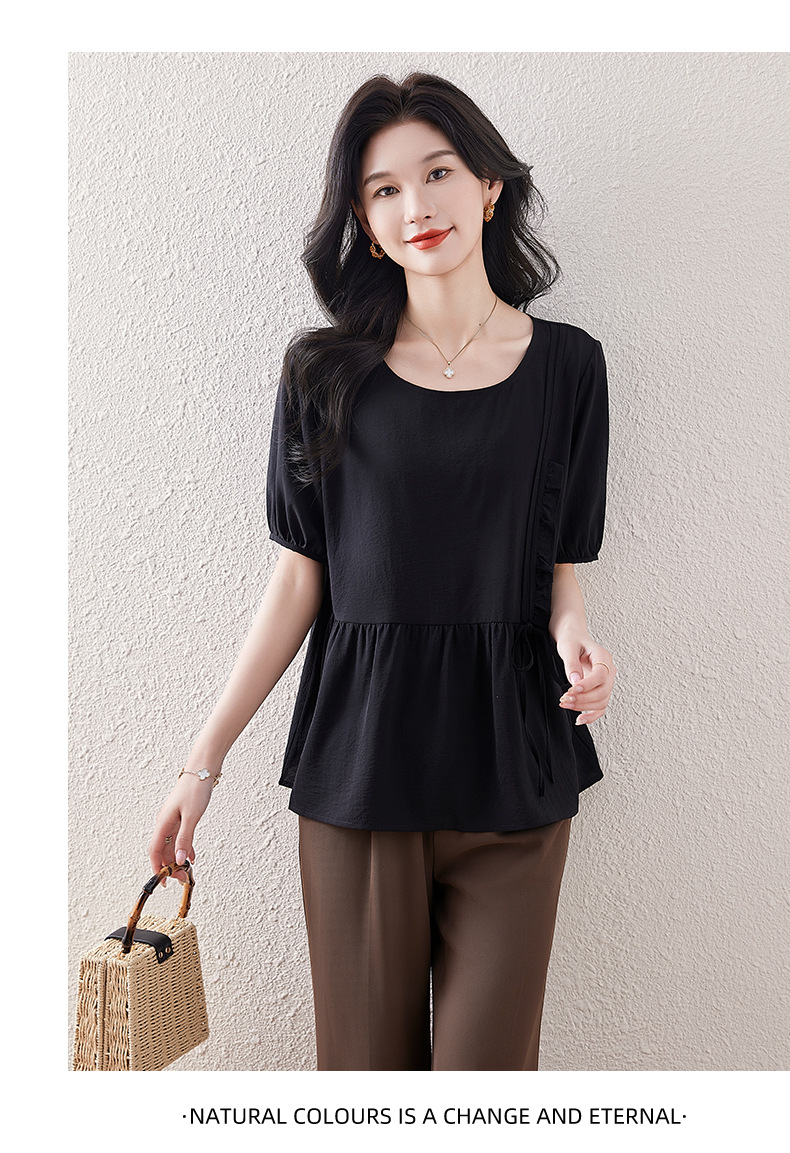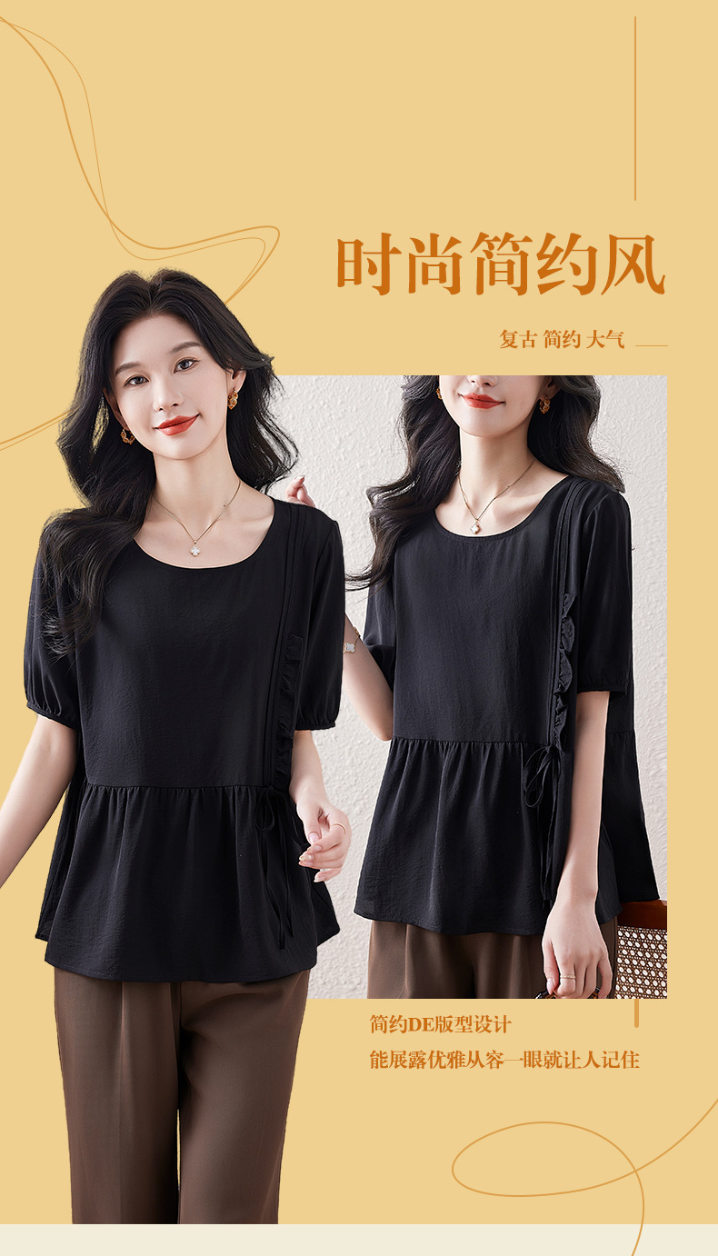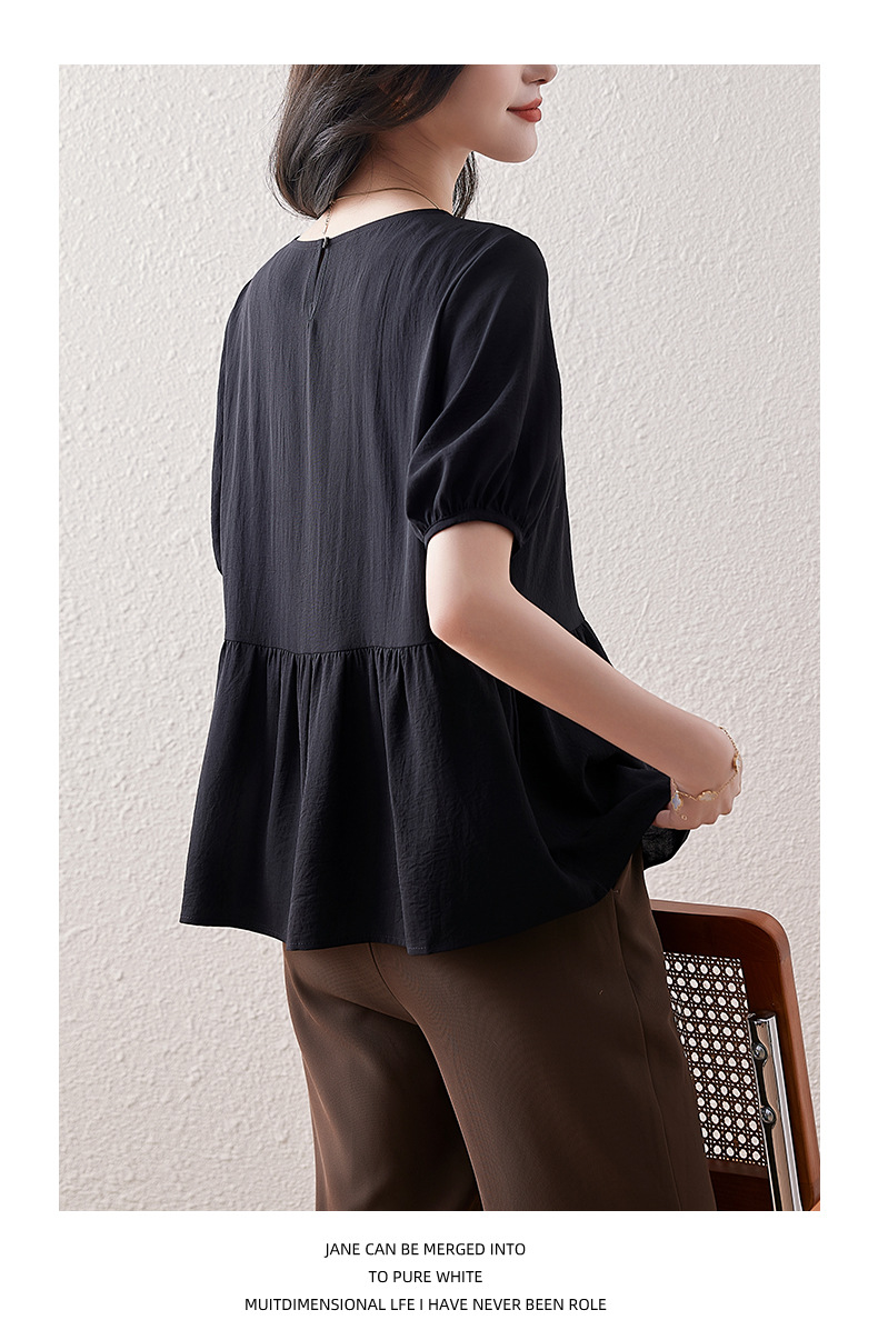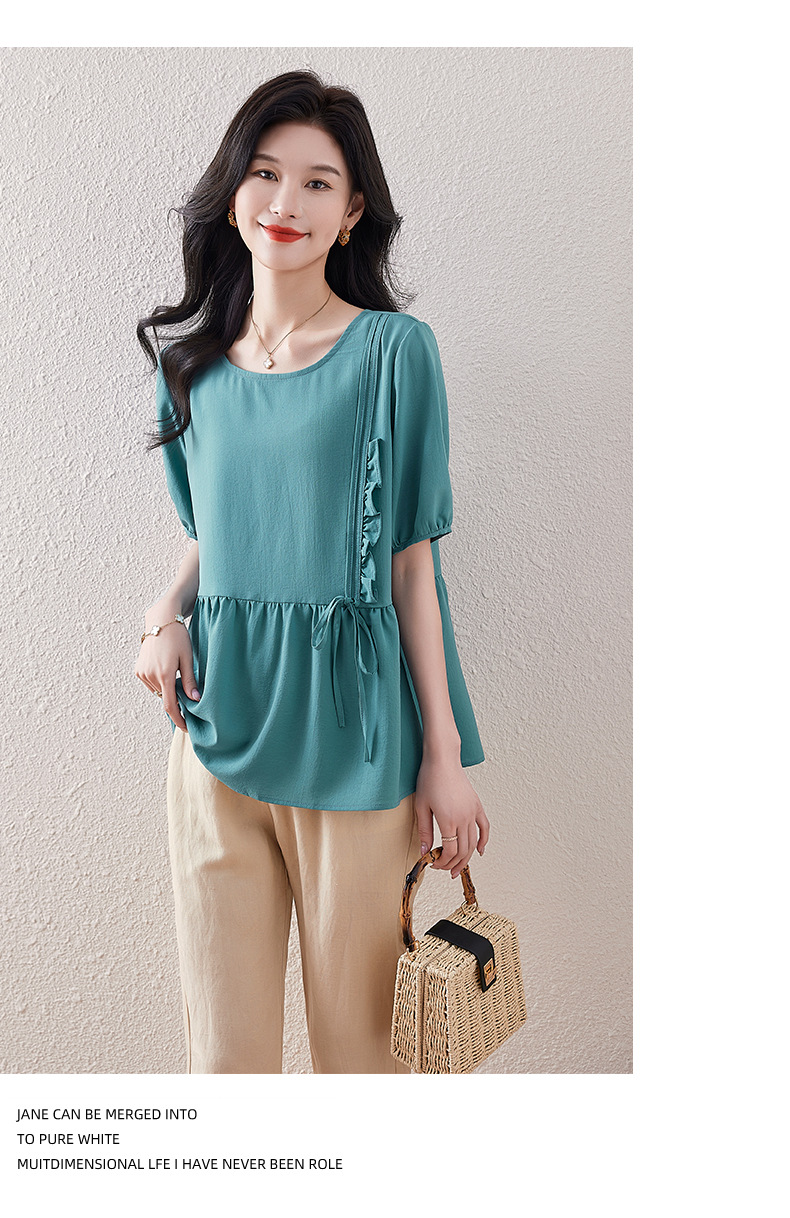 면 및 린넨 셔츠 여성의 짧은 소매 2024 여름 새로운 느슨한 플러스 사이즈 나무 귀 인형 셔츠 얇은 배 덮개 탑스토어 가기