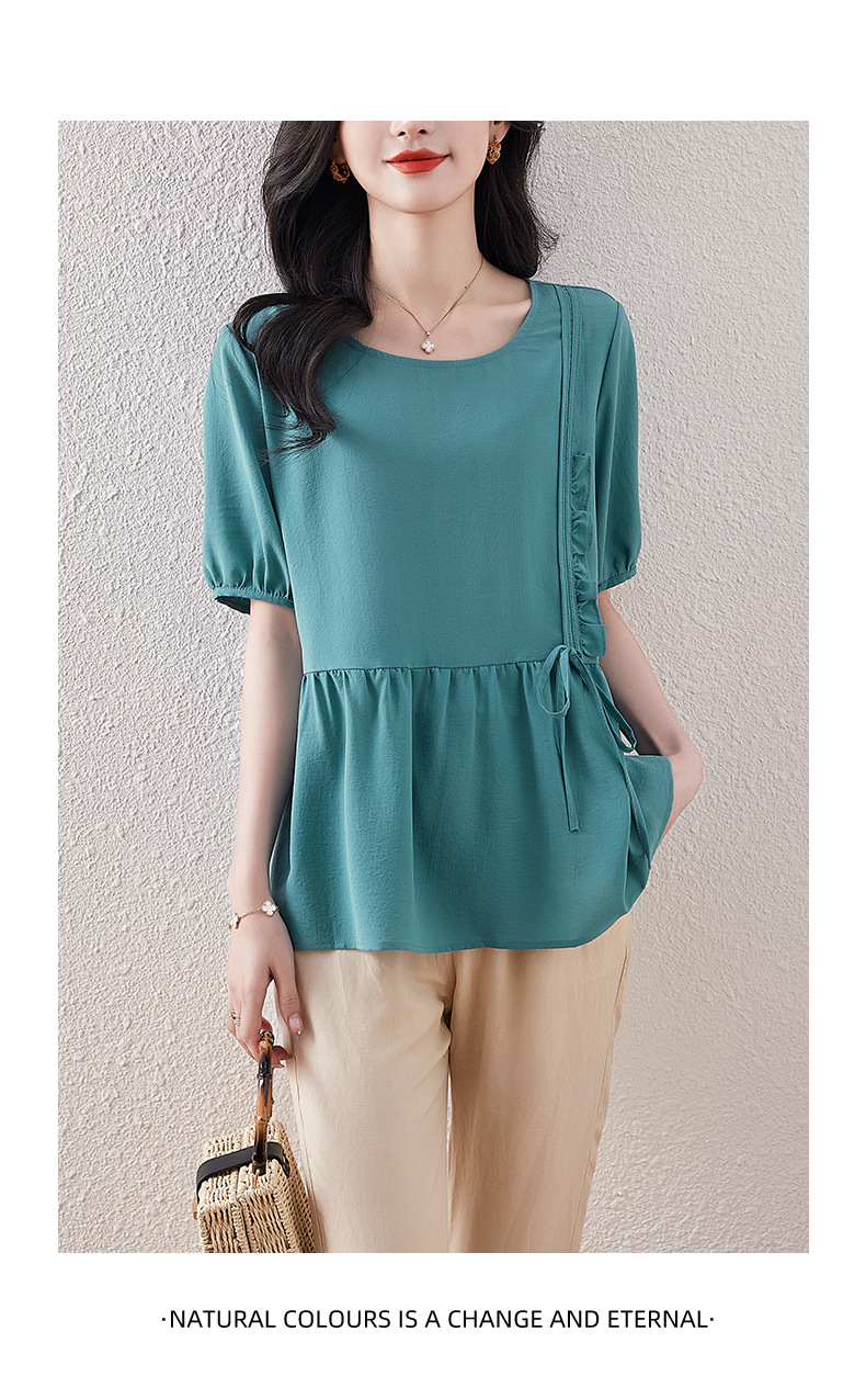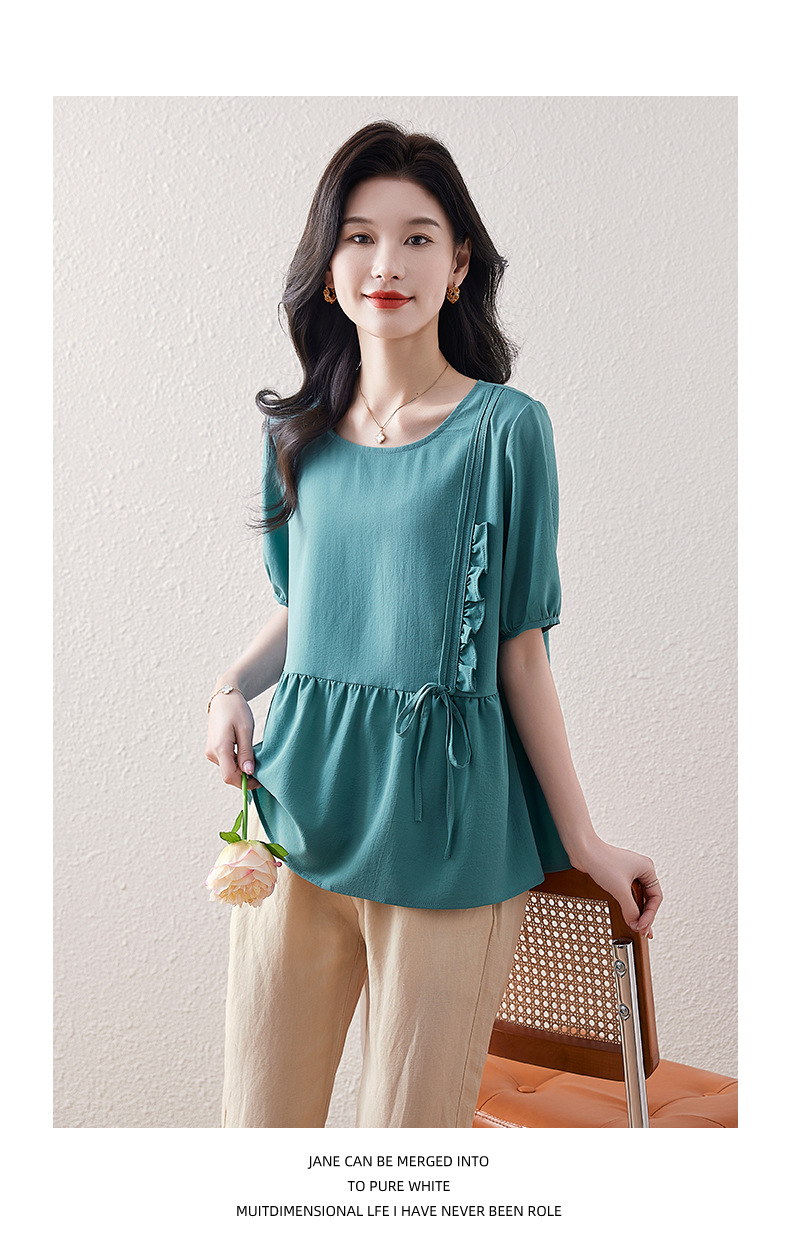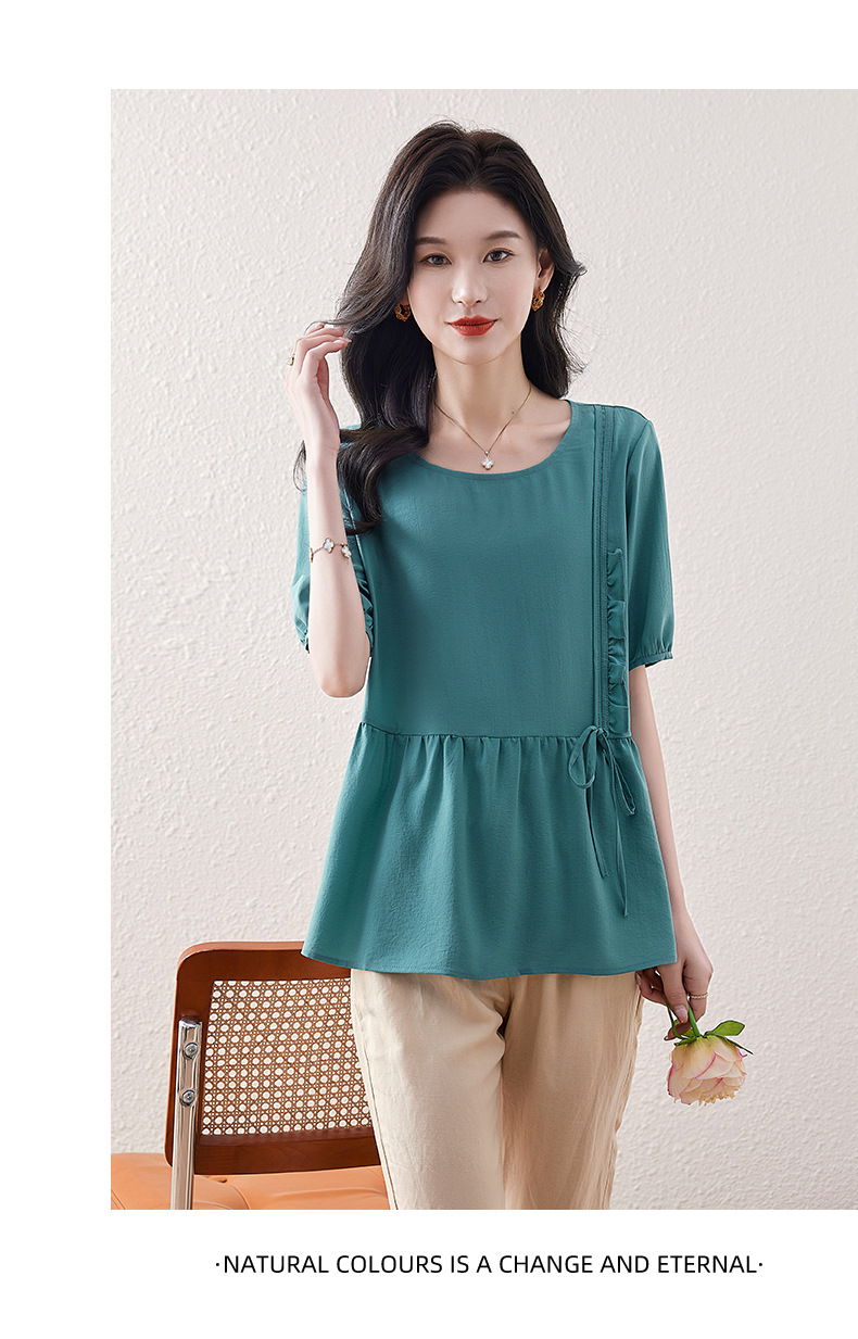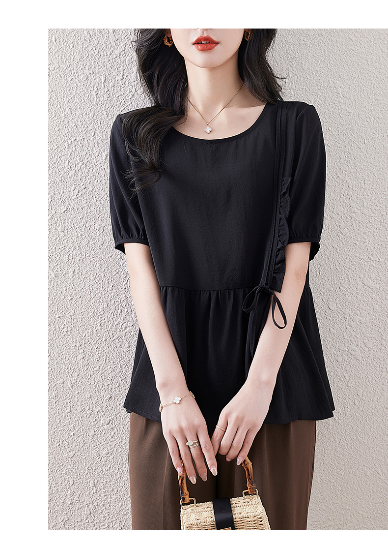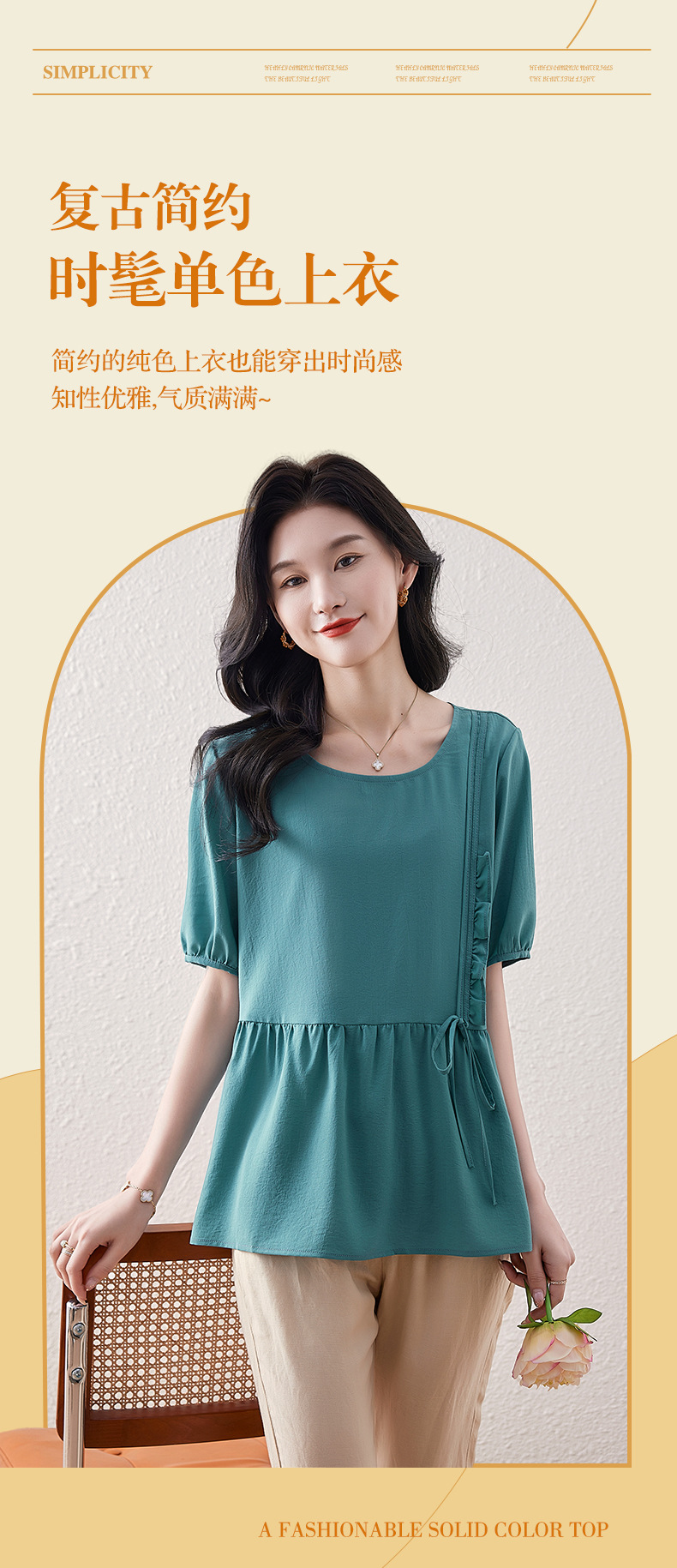 면 및 린넨 셔츠 여성의 짧은 소매 2024 여름 새로운 느슨한 플러스 사이즈 나무 귀 인형 셔츠 얇은 배 덮개 탑스토어 가기