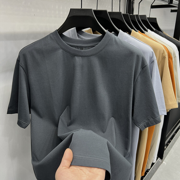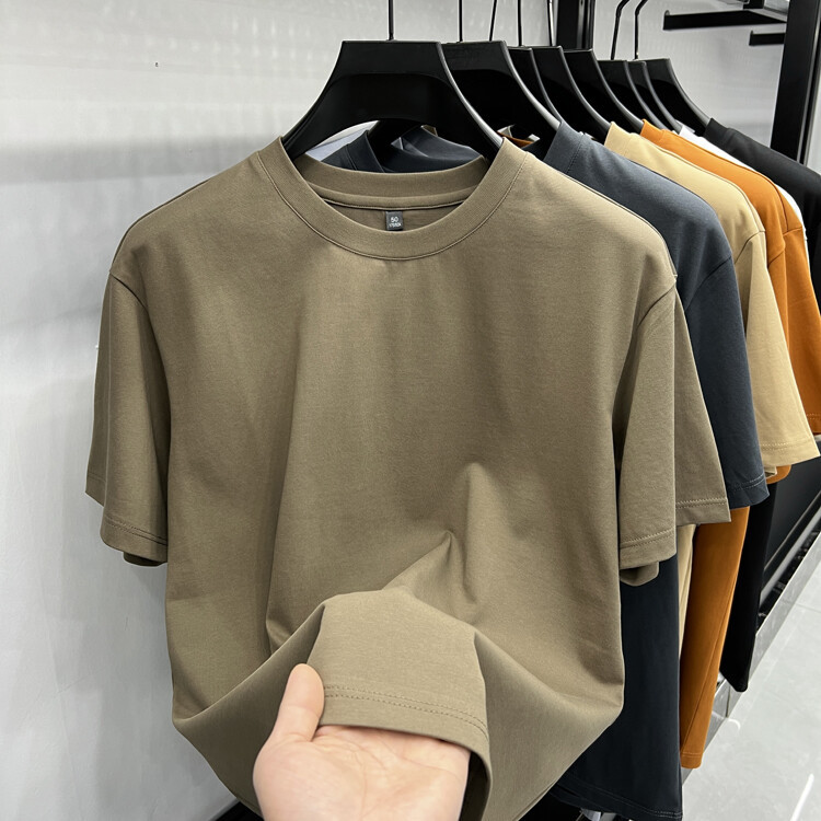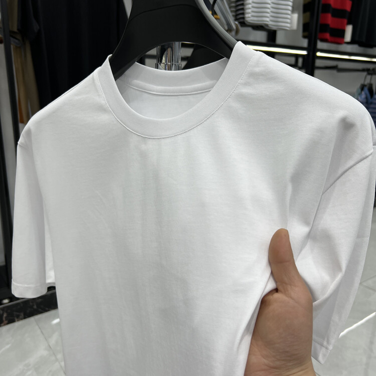 패션 브랜드 280g 무거운면 둥근 목 짧은 소매 티셔츠 남성과 여성의 동일한 간단한 단색 반소매 드롭 어깨 바닥 셔츠스토어 가기