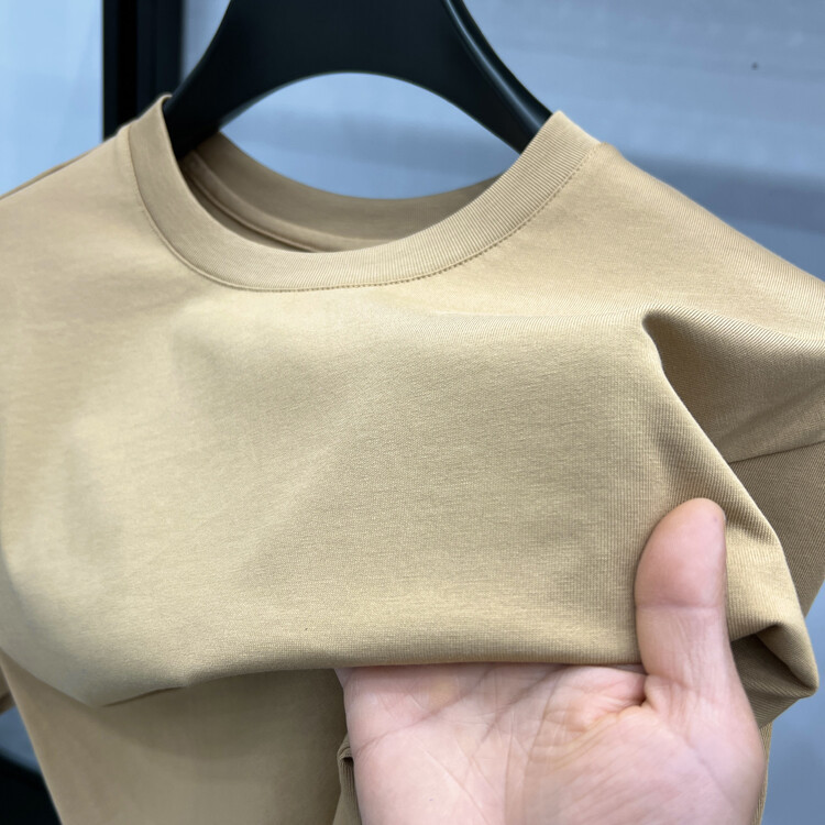 패션 브랜드 280g 무거운면 둥근 목 짧은 소매 티셔츠 남성과 여성의 동일한 간단한 단색 반소매 드롭 어깨 바닥 셔츠