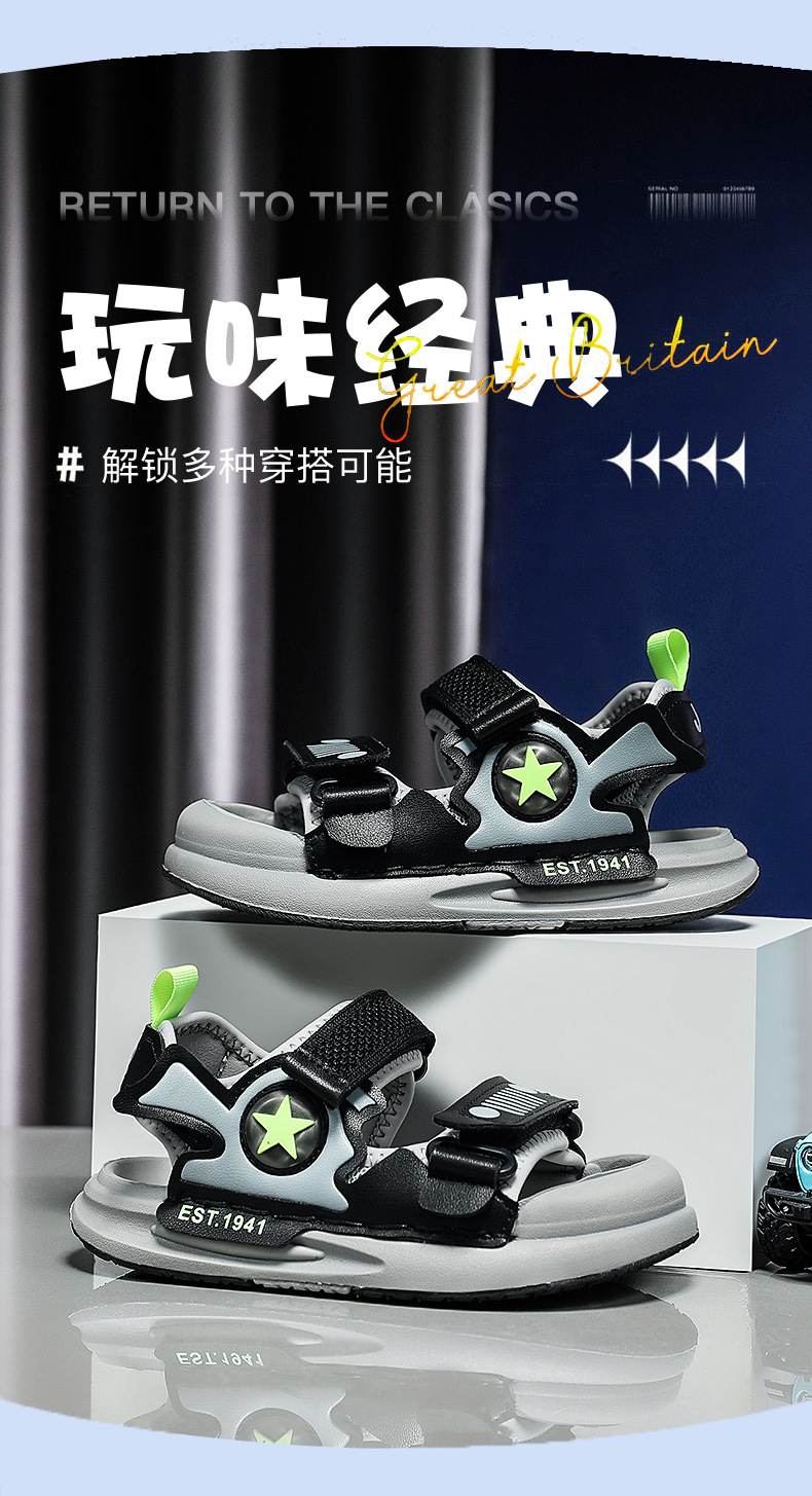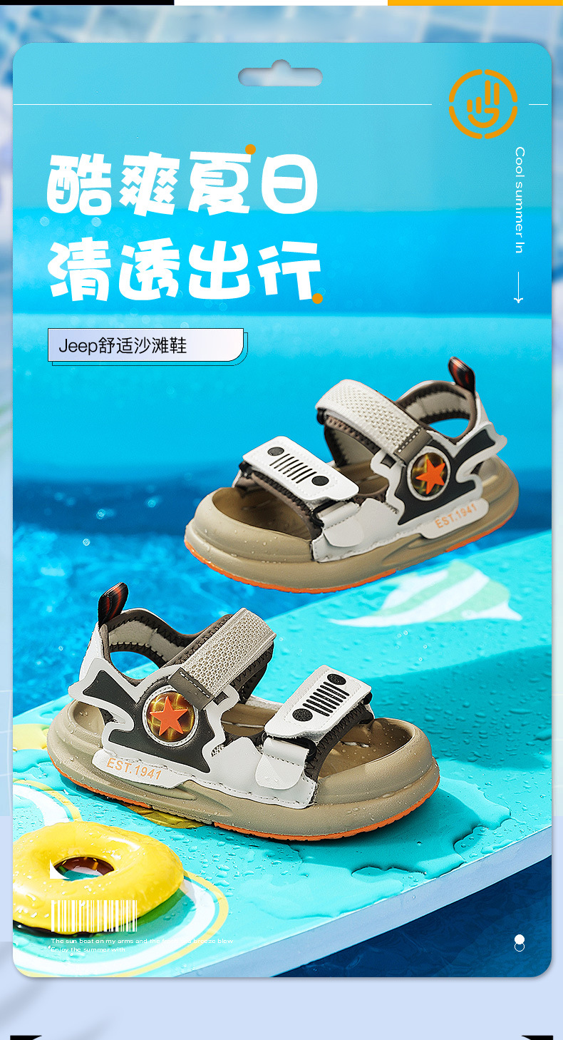 지프 남아용 바오터우 샌들 2025 여름 신상품 부드러운 밑창 통기성 미끄럼 방지 내마모성 아동용 비치 슈즈 트렌디스토어 가기