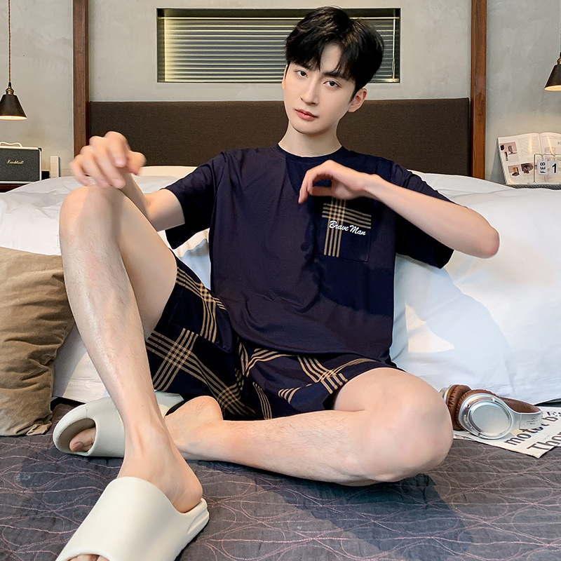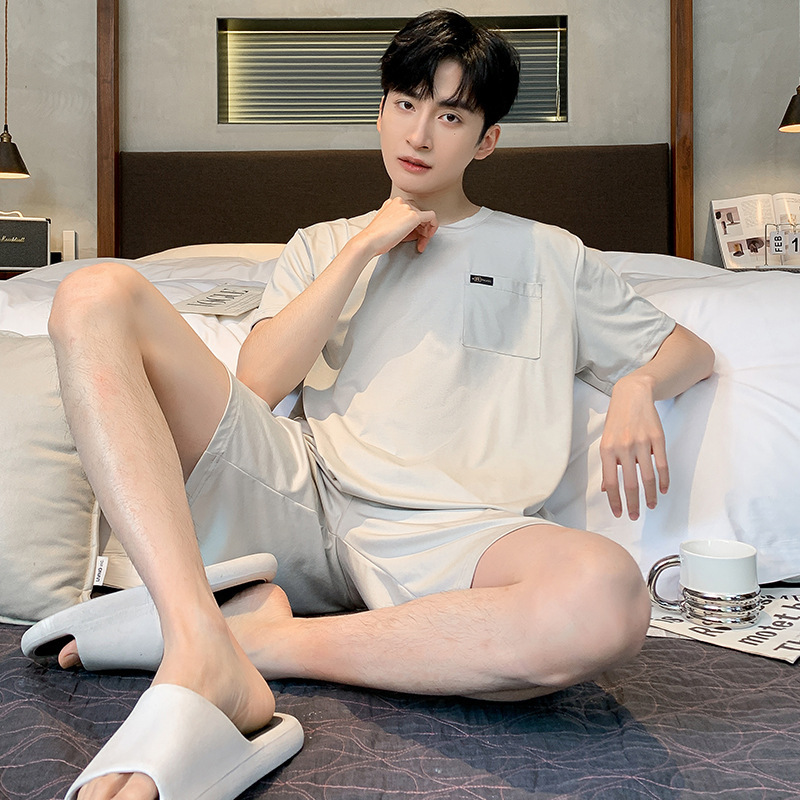 얇은 모달 남성 잠옷 여름 반팔 반바지 캐주얼 심플한 청소년 가정복 세트 외부에서 착용 할 수 있습니다.