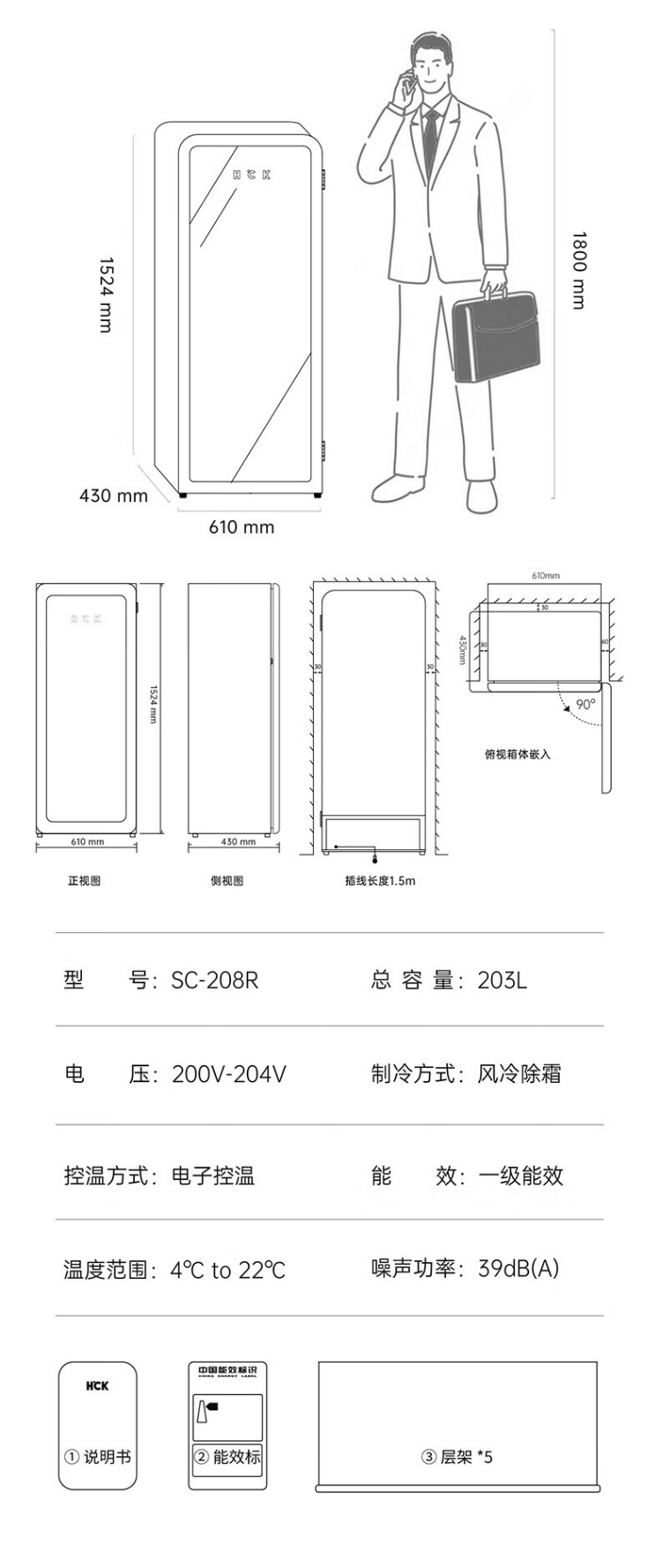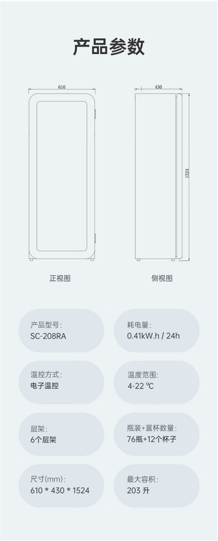 허스키 레드 와인 캐비닛 Heng SC-208R 항온 및 습도 슬림 내장 대용량 컬렉션 캐비닛 76병 냉장고스토어 가기