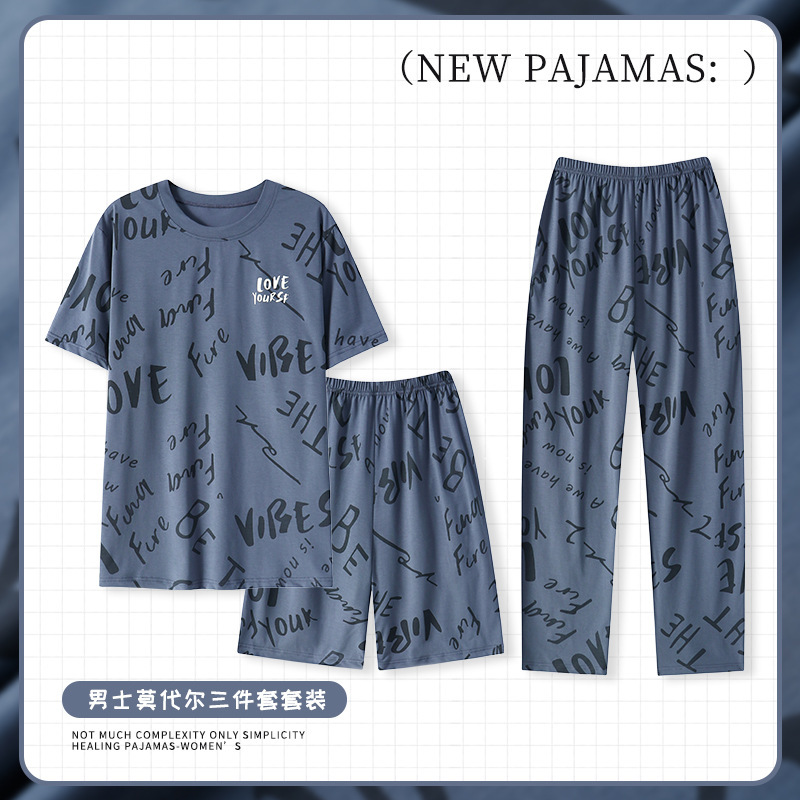 모달 파자마 남성 여름 얇은 반팔 반바지 바지 3 피스 여름 홈웨어 남성 캐주얼 플러스 사이즈스토어 가기