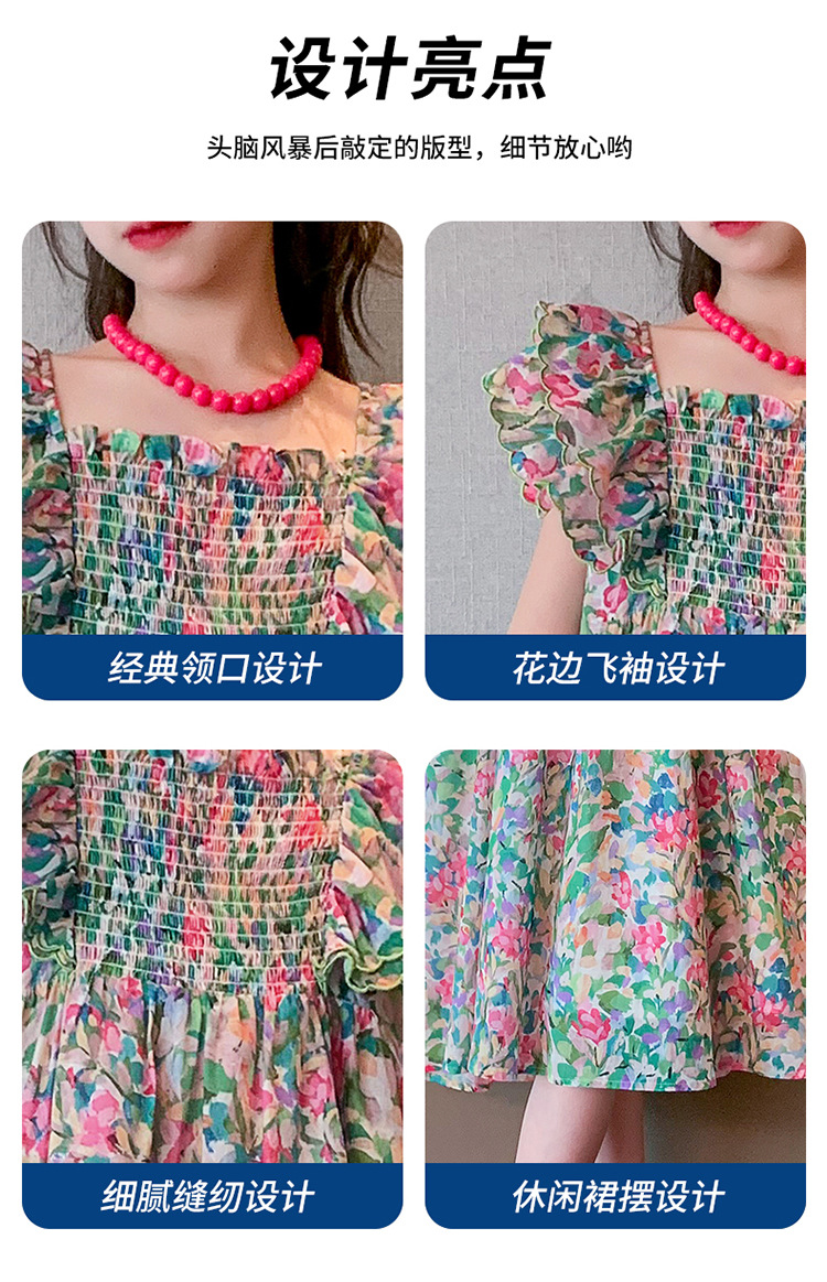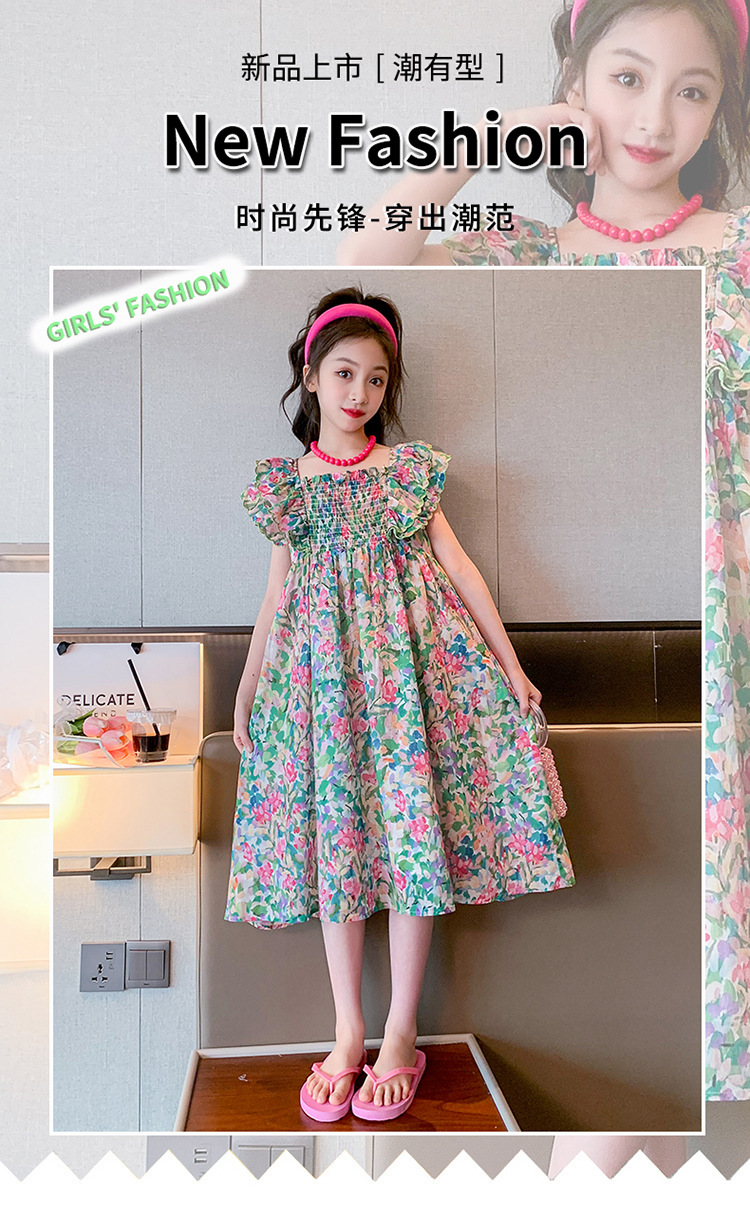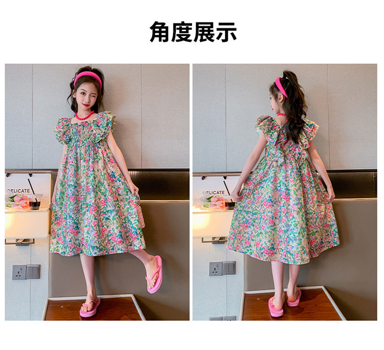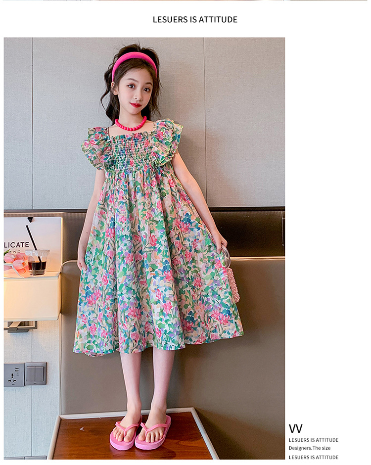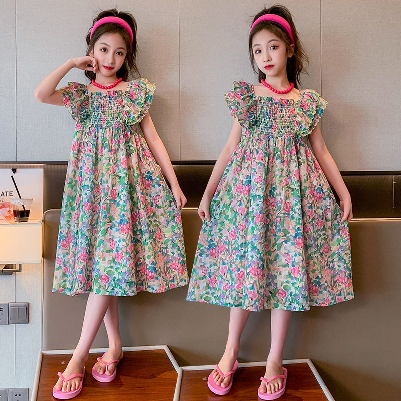 소녀의 여름 원피스 2023 인기있는 소녀 자수 레이스 꽃 원피스 소녀의 중간 길이 슬리밍 원피스스토어 가기