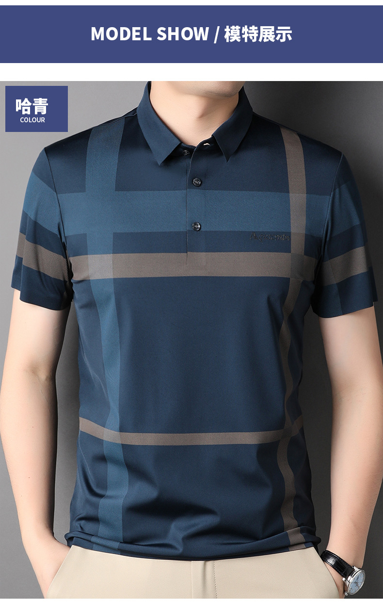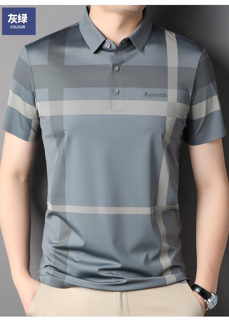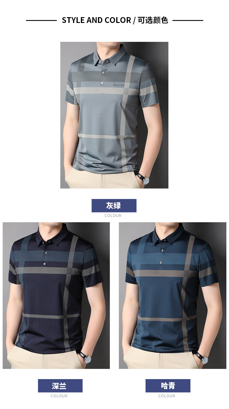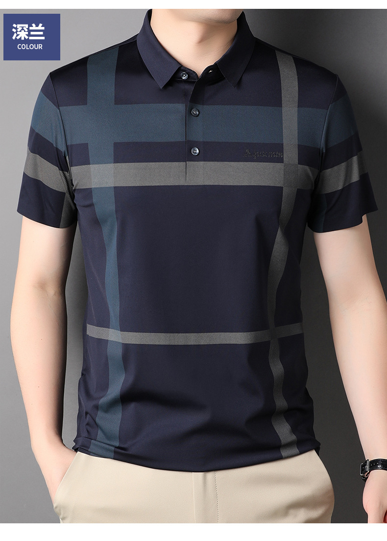 2024 여름 브로케이드 암모니아 원활한 반팔 폴로 셔츠 남성 비즈니스 캐주얼 중년 및 노인 아빠는 격자 무늬 옷깃 티셔츠를 입습니다.