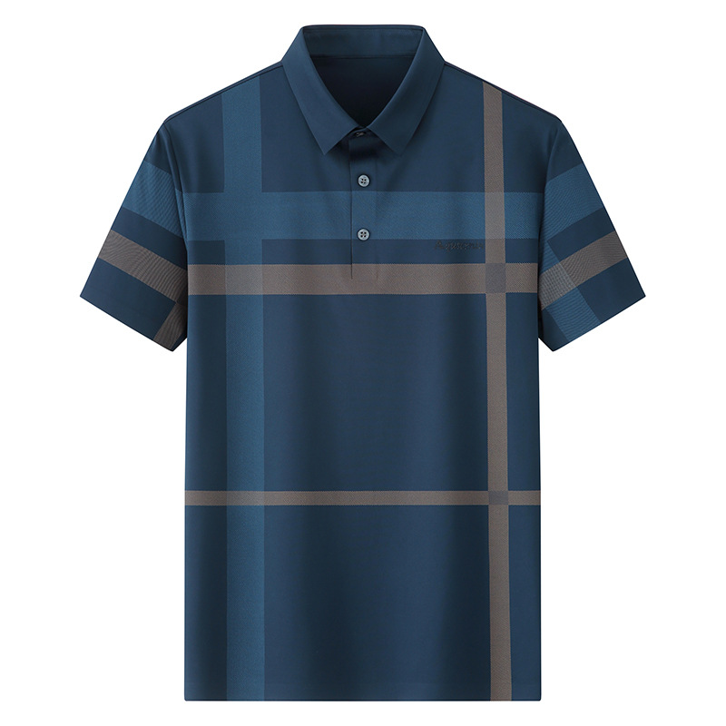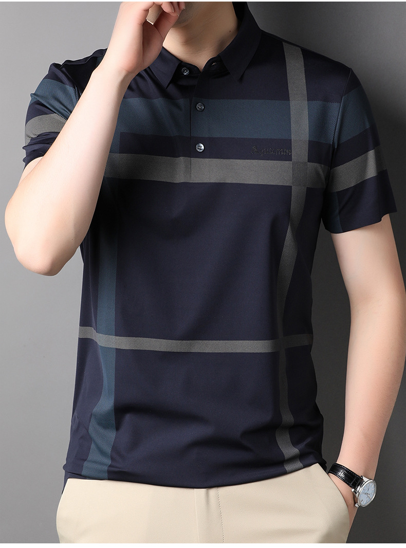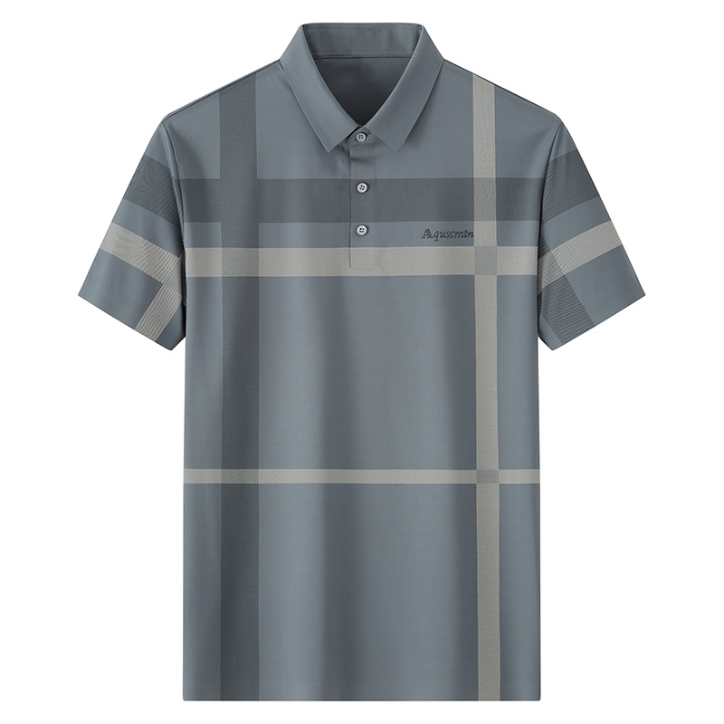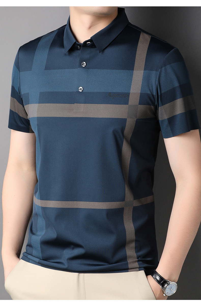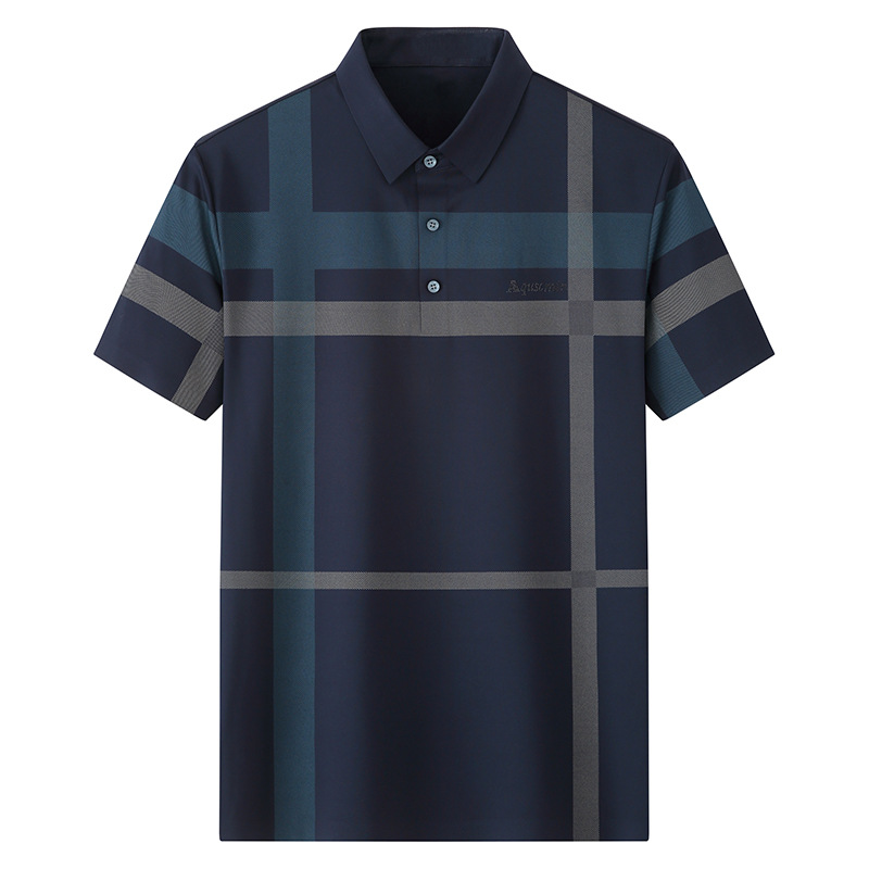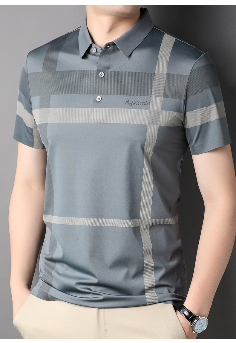2024 여름 브로케이드 암모니아 원활한 반팔 폴로 셔츠 남성 비즈니스 캐주얼 중년 및 노인 아빠는 격자 무늬 옷깃 티셔츠를 입습니다.