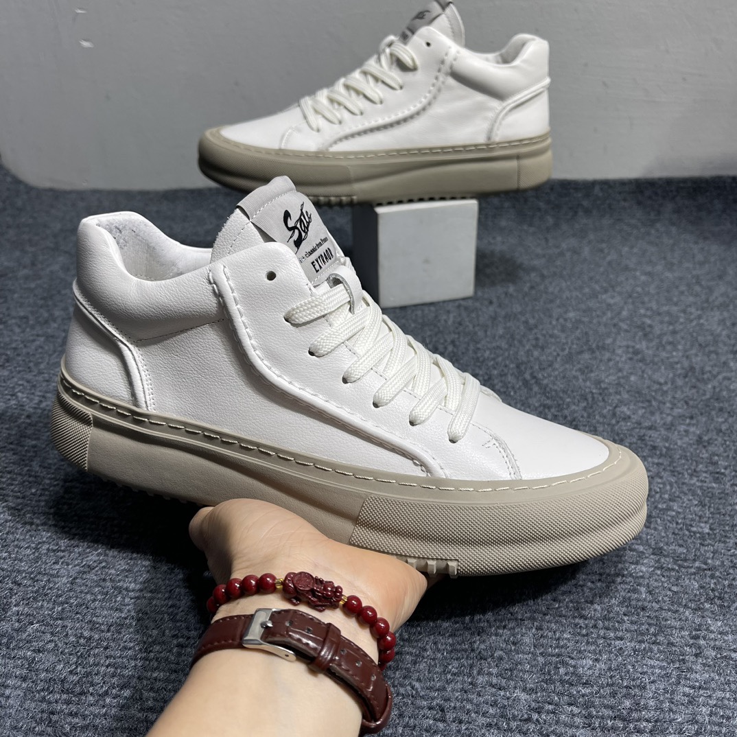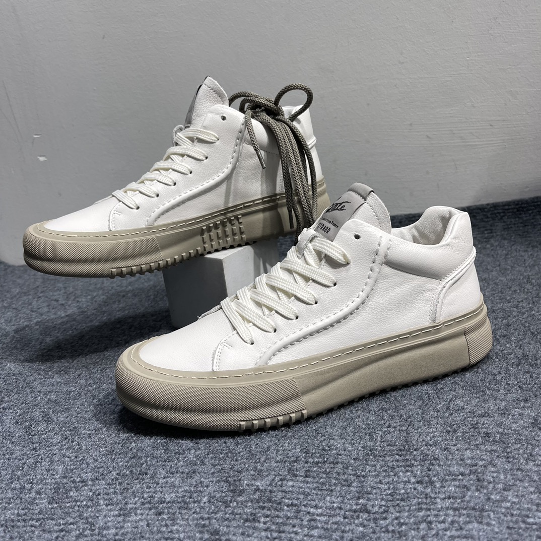 유럽 역 남성 신발 정품 가죽 하이 탑 신발 2024 Four Seasons 새로운 통기성 캐주얼 화이트 신발 트렌디 한 올 매칭 보드 신발스토어 가기