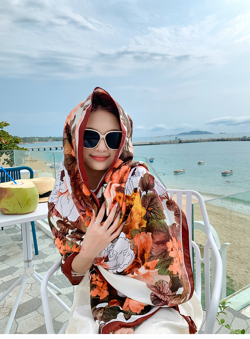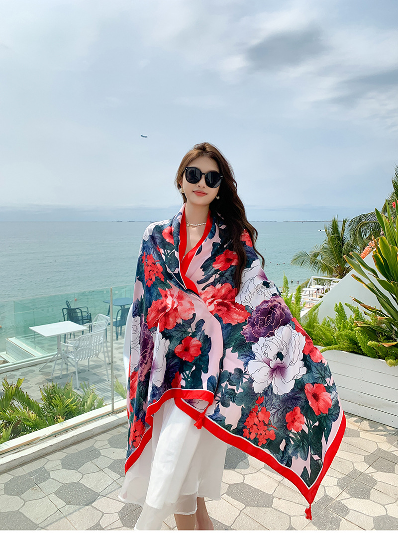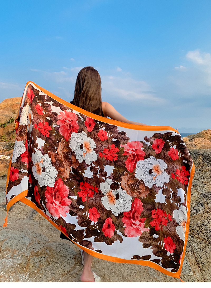 중국 스타일의 민족 스타일 꽃 스카프 여행 실크 스카프 여름 얇은 자외선 차단제 목도리 여성의 긴 스카프 비치 타월