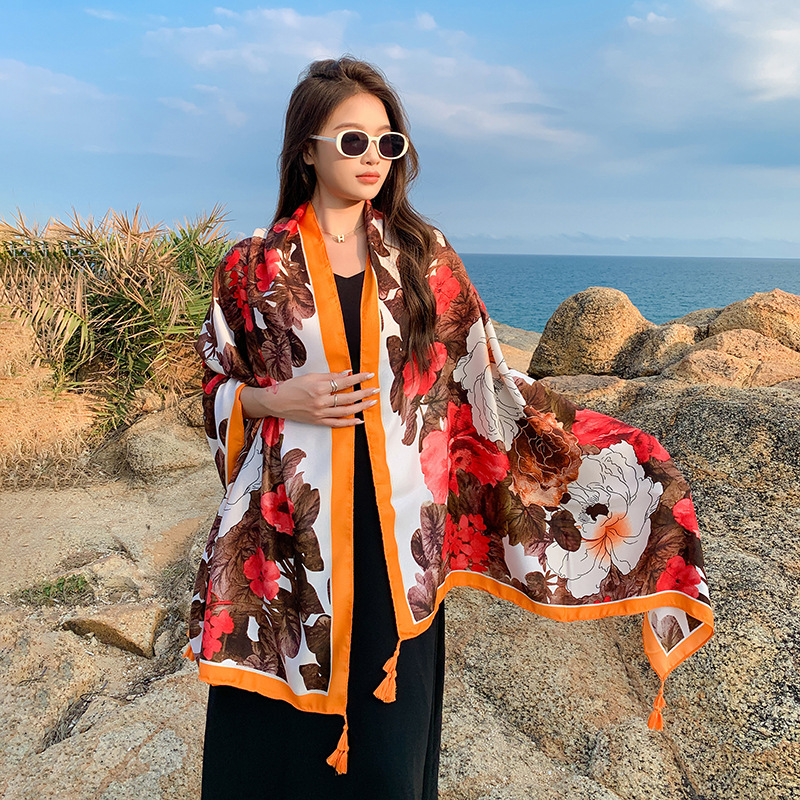 중국 스타일의 민족 스타일 꽃 스카프 여행 실크 스카프 여름 얇은 자외선 차단제 목도리 여성의 긴 스카프 비치 타월스토어 가기