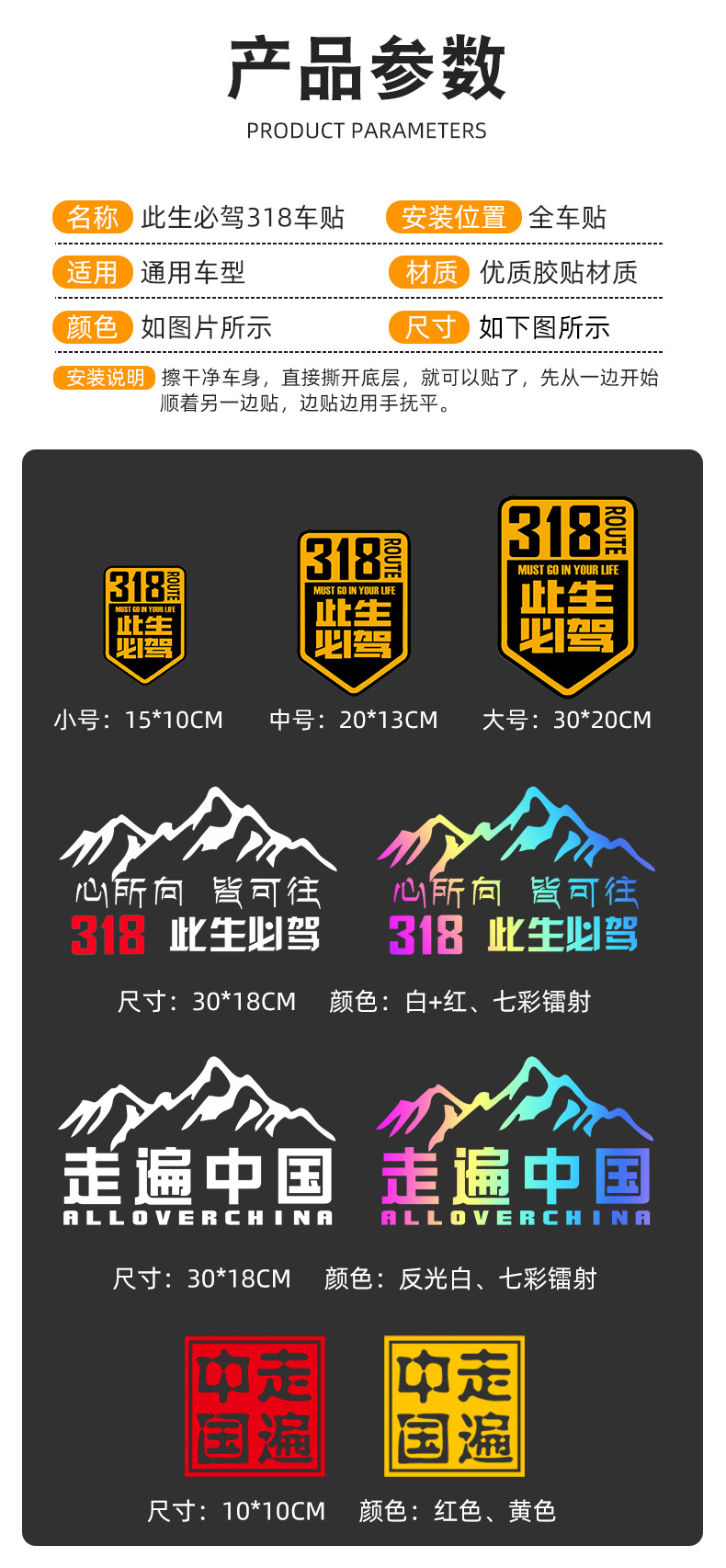 이 삶은 318 자동차 스티커 신강 티베트 라사 자율 주행 여행 사천-티베트 국도 오토바이 자동차 스티커 중국스토어 가기