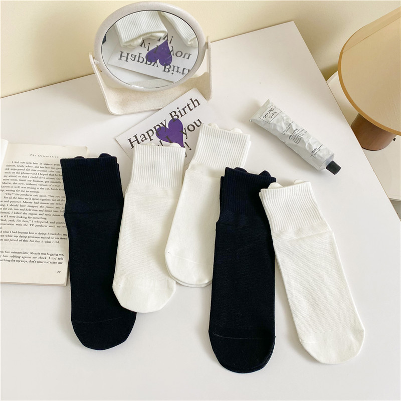 여성용 한국식 만화 귀여운 자수 동물 중간 종아리 양말, 트렌디 한 입체 귀 흑백 여성 양말 도매