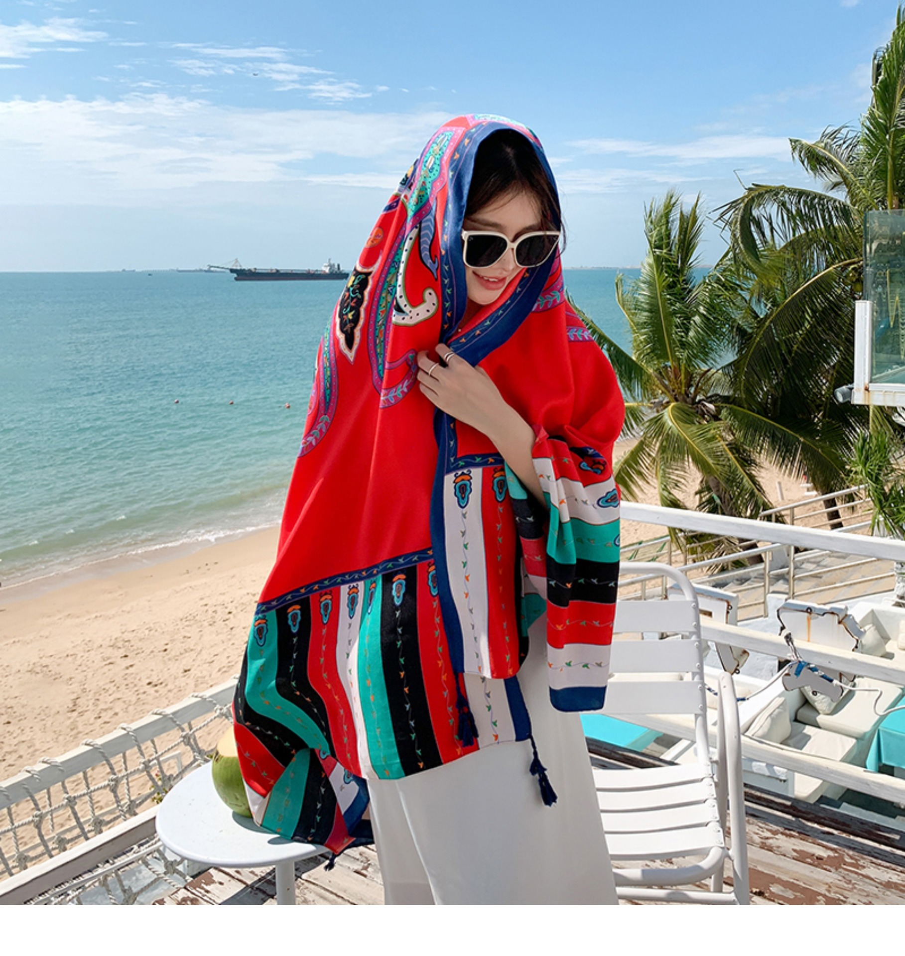 다양한 자외선 차단제 목도리 스카프 이중 사용 민족 스타일 스카프 해변 휴가 해변 스카프 비치 타월 여성 여름