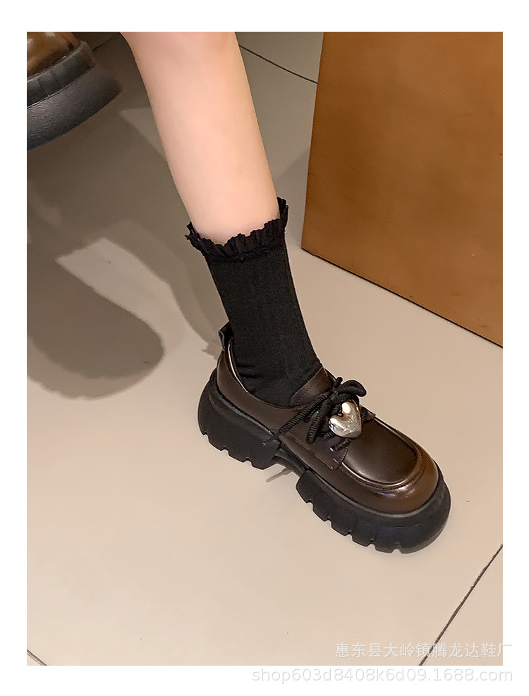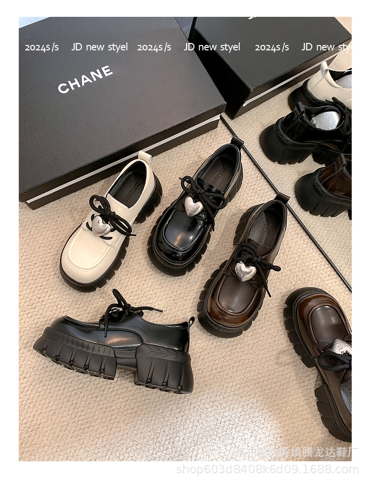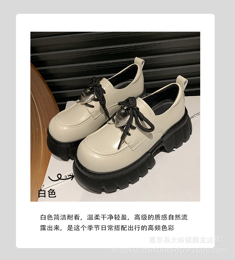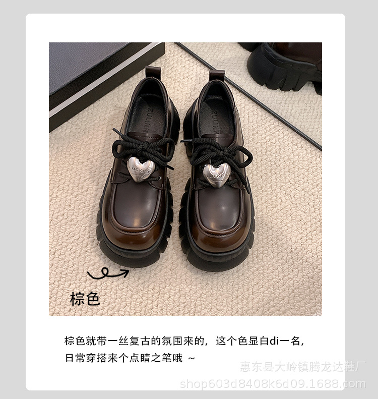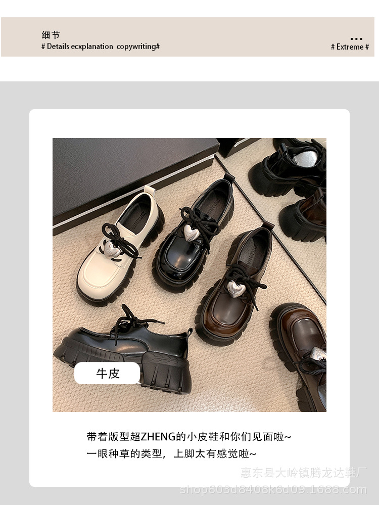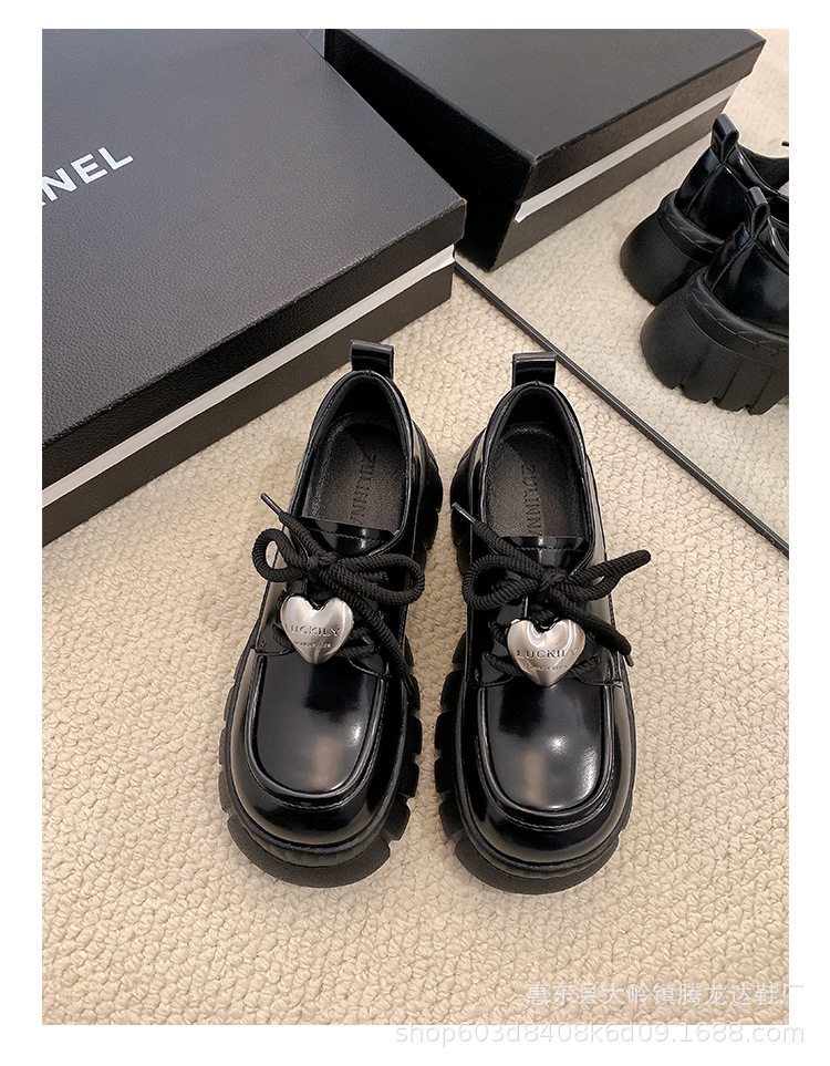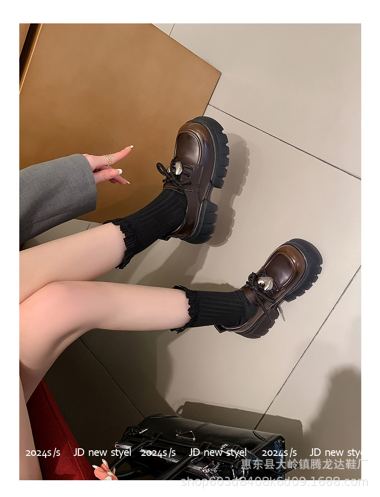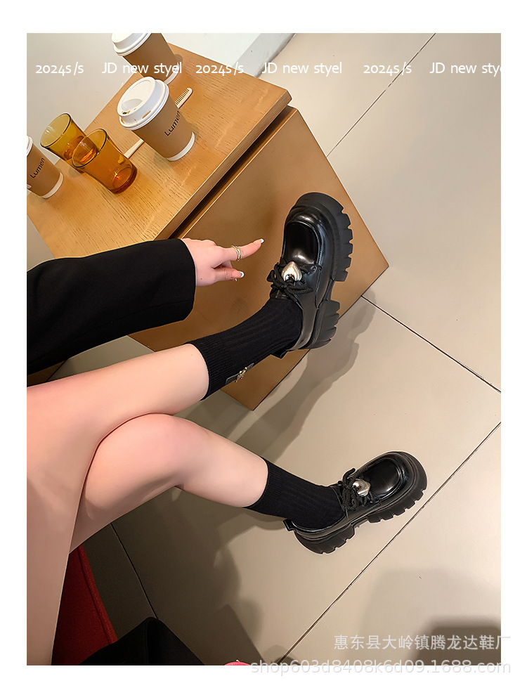 여성의 두꺼운 밑창 로퍼 2024 봄 새로운 정품 가죽 사랑스러운 금속 버클 가죽 신발 프레피 스타일 하이힐 신발스토어 가기