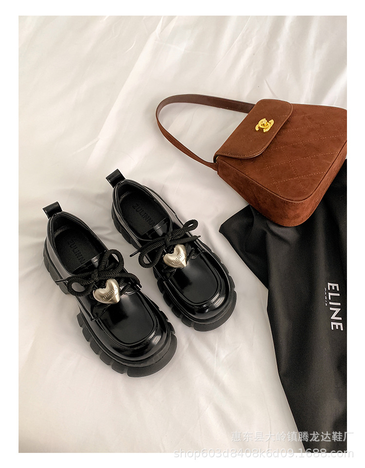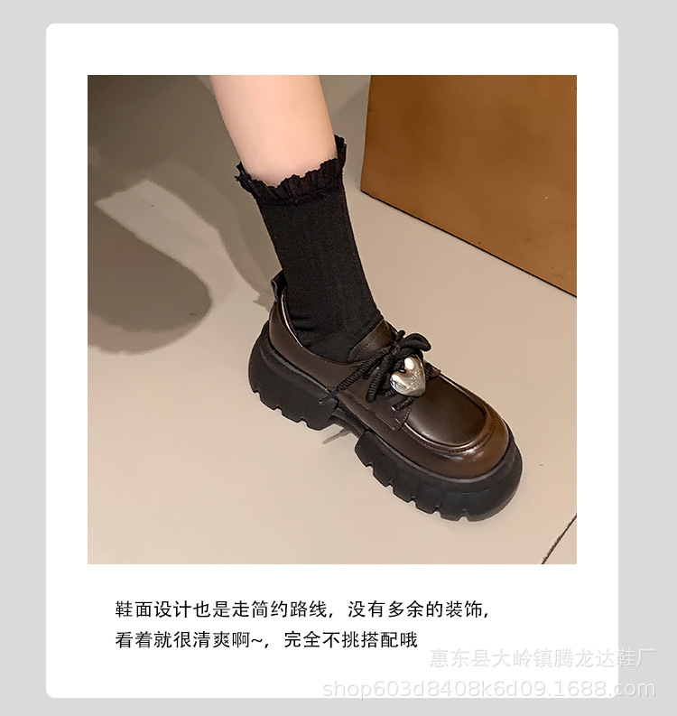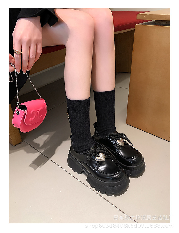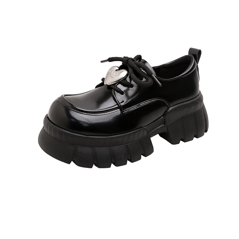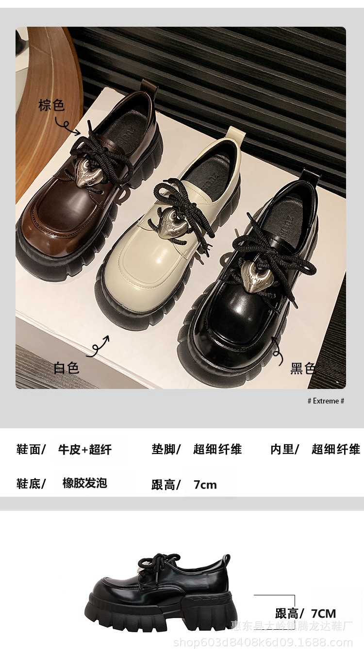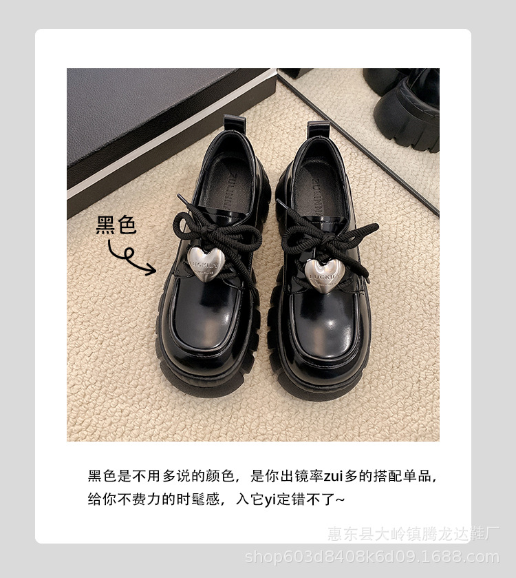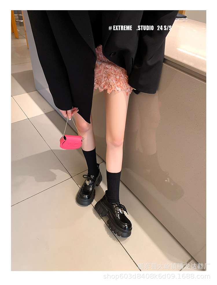 여성의 두꺼운 밑창 로퍼 2024 봄 새로운 정품 가죽 사랑스러운 금속 버클 가죽 신발 프레피 스타일 하이힐 신발스토어 가기