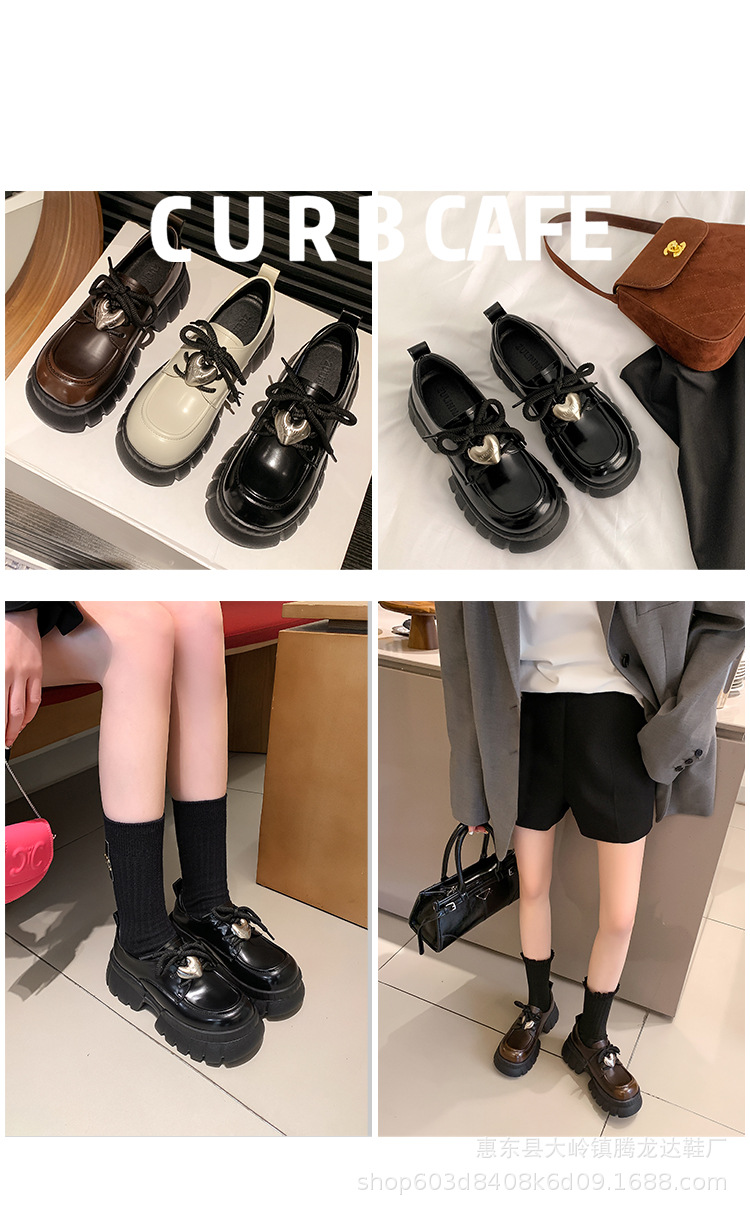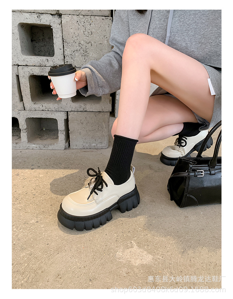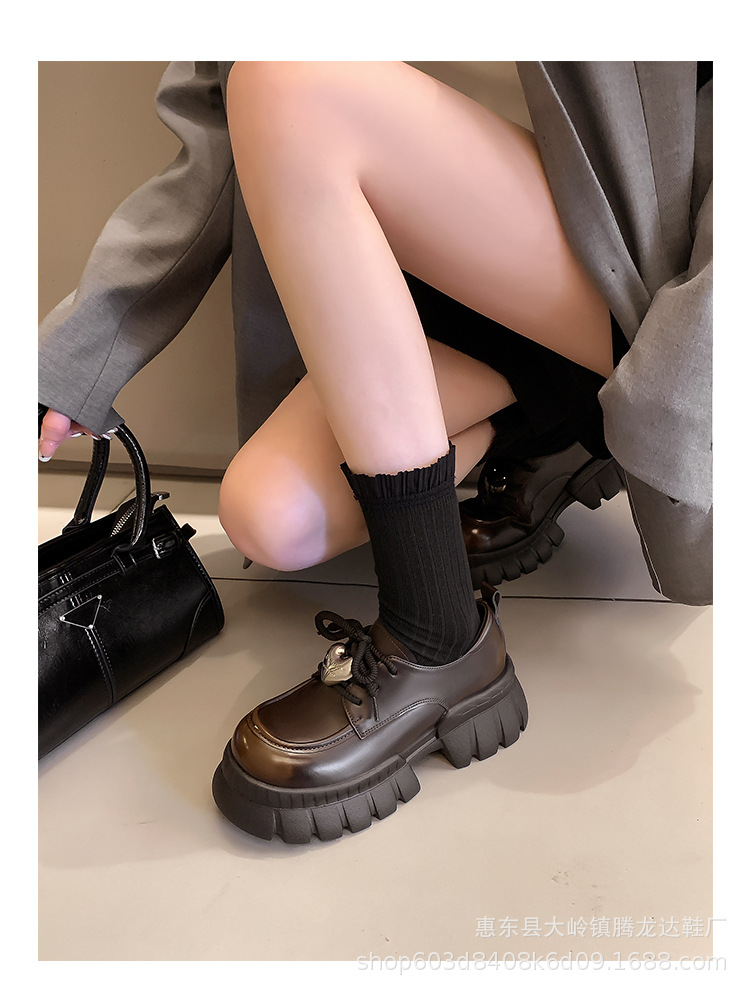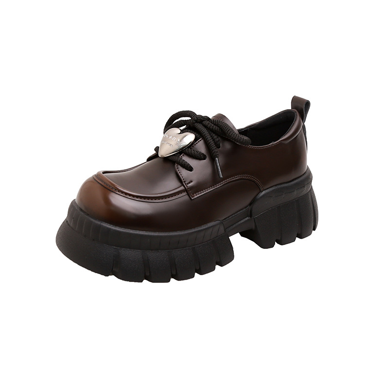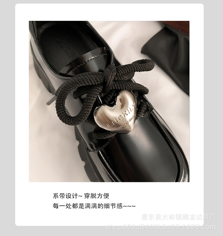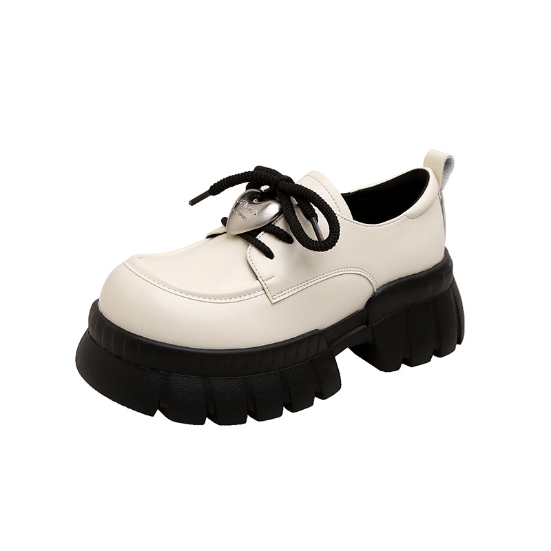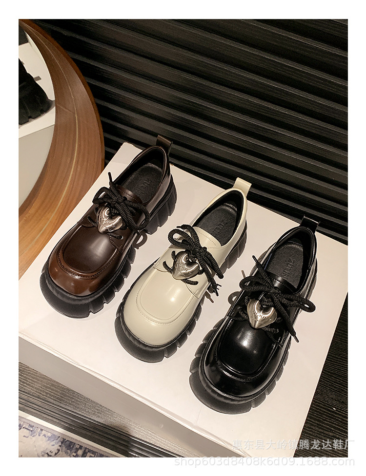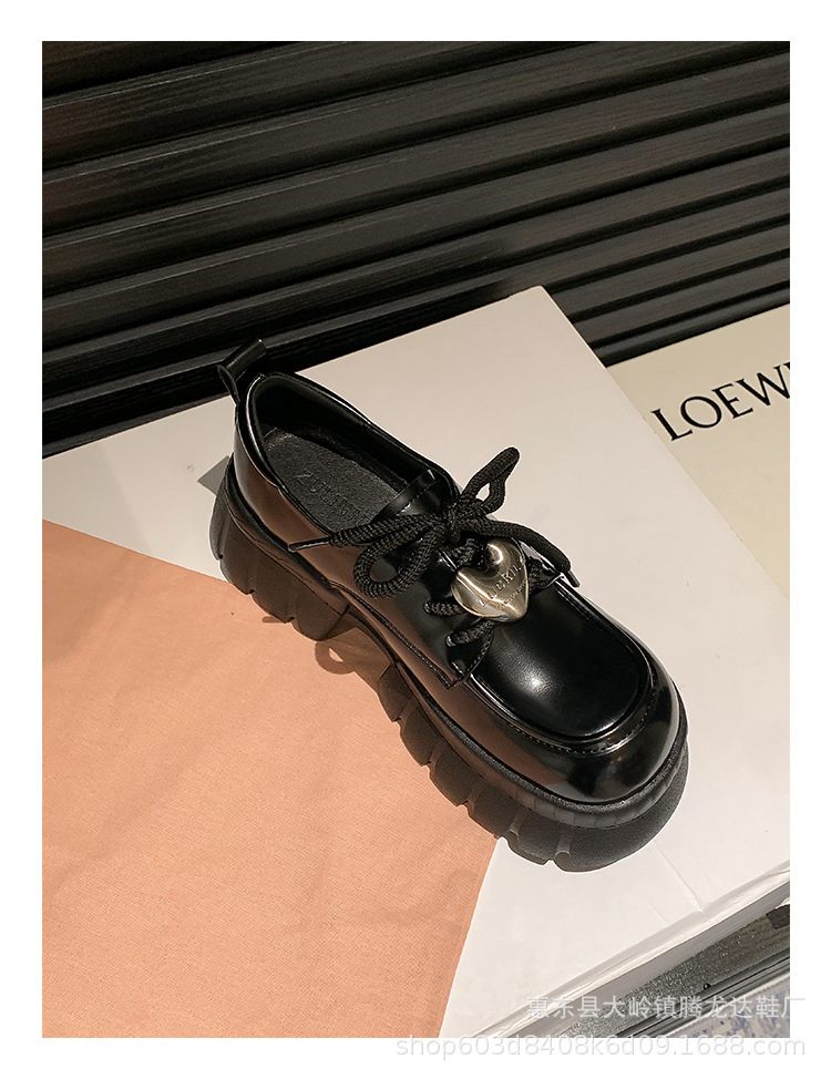 여성의 두꺼운 밑창 로퍼 2024 봄 새로운 정품 가죽 사랑스러운 금속 버클 가죽 신발 프레피 스타일 하이힐 신발스토어 가기