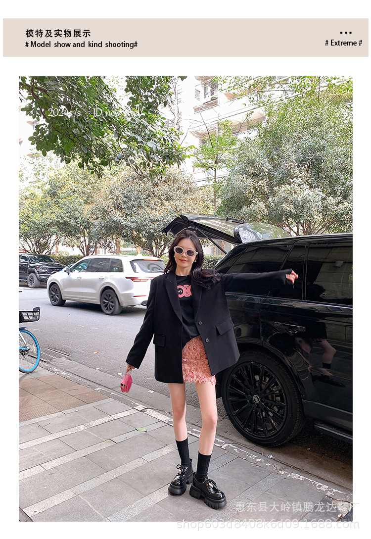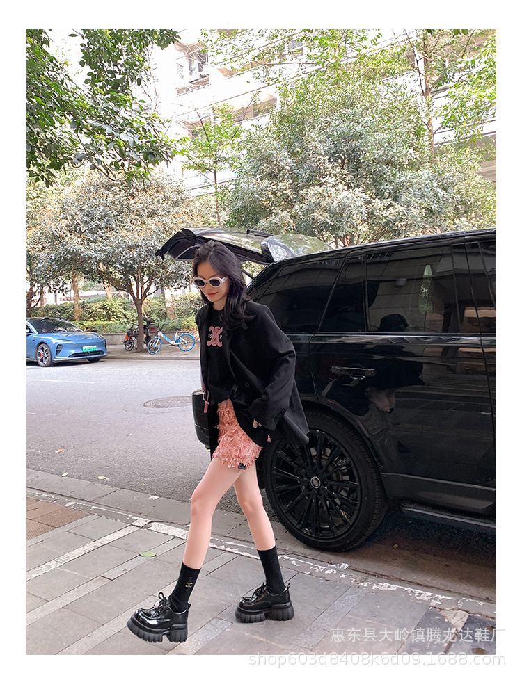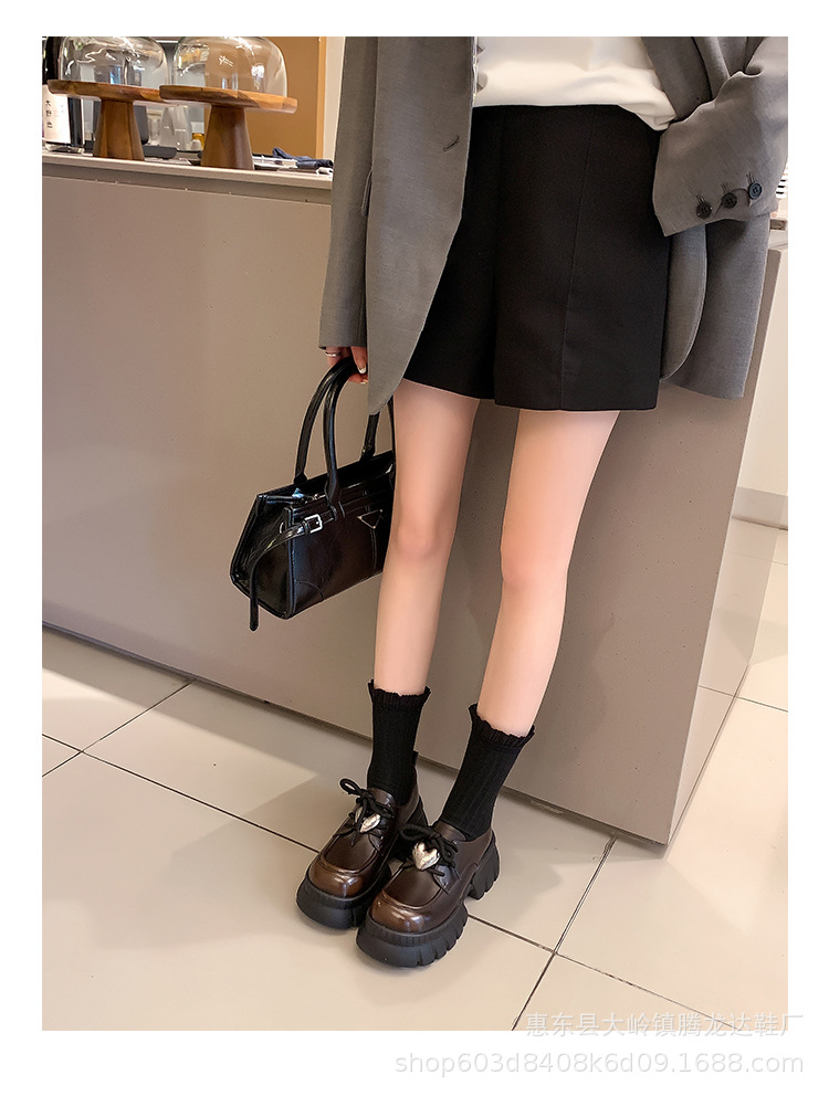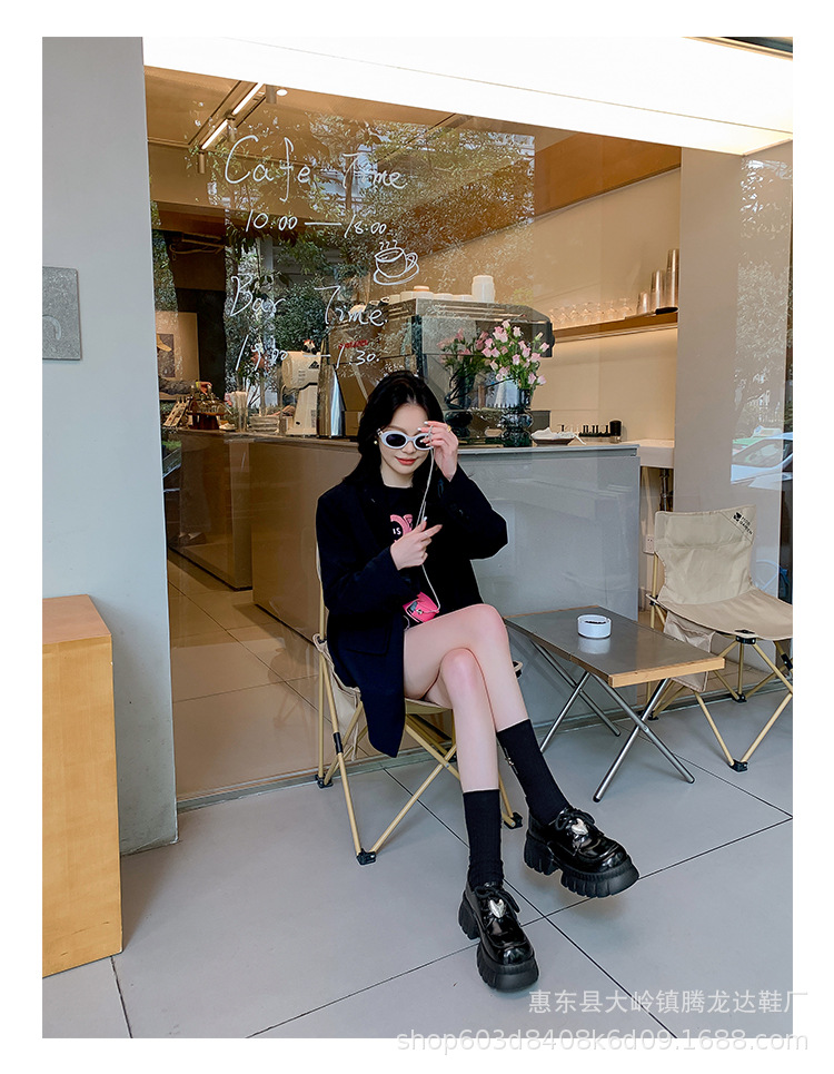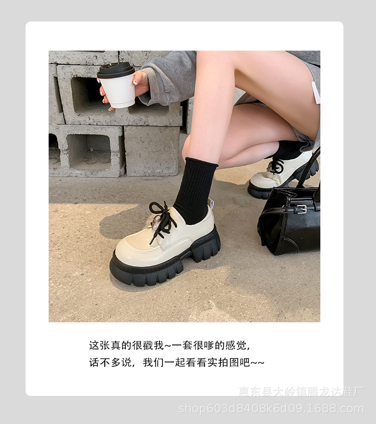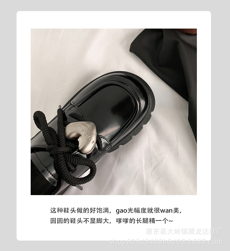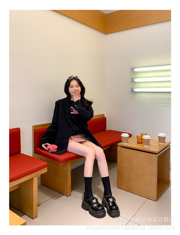 여성의 두꺼운 밑창 로퍼 2024 봄 새로운 정품 가죽 사랑스러운 금속 버클 가죽 신발 프레피 스타일 하이힐 신발스토어 가기