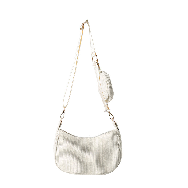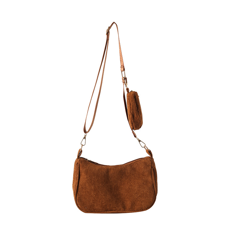 2024 봄과 여름 새로운 트렌디 한 작은 사각형 가방 코듀로이 어깨 패션 레트로 코듀로이 겨드랑이 바게트 변경 핸드백