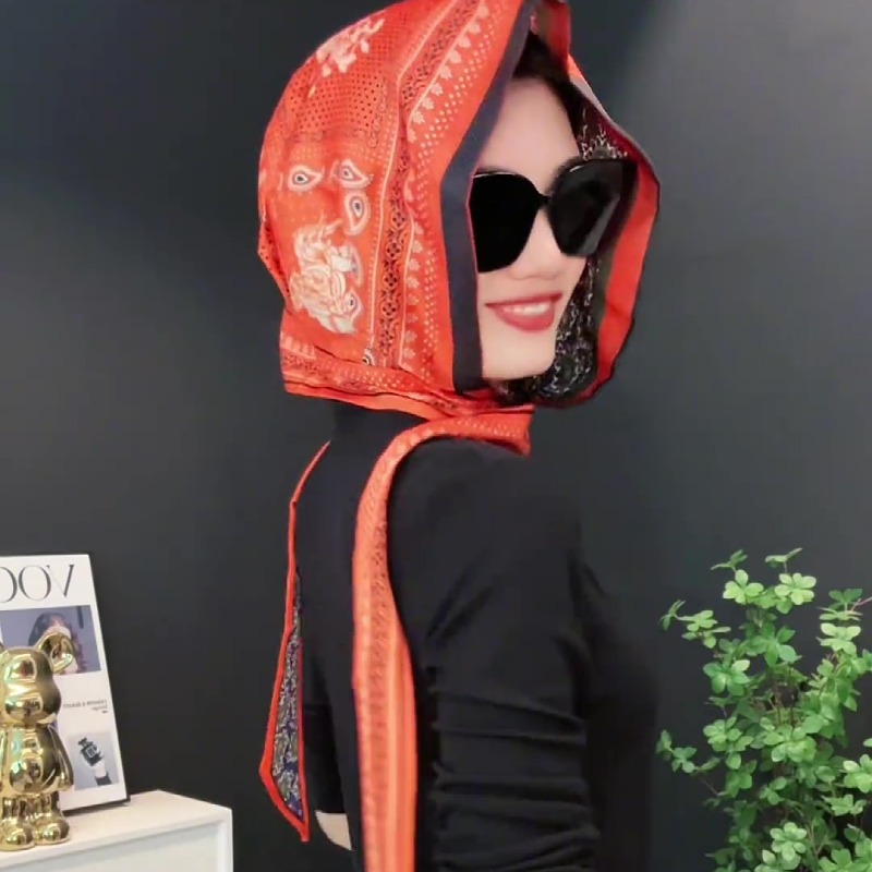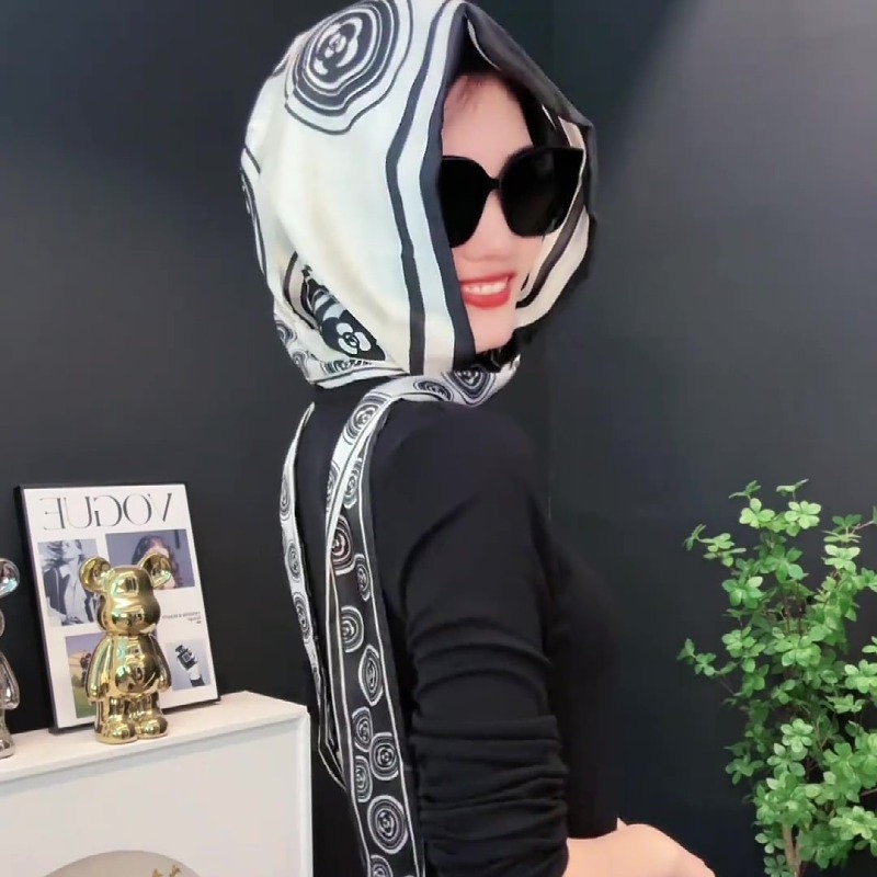 봄과 여름 새로운 더블 레이어 양면 리본 모자 새틴 스카프 여행 태양 보호 태양 그늘 패션 여성을위한 다기능 스카프스토어 가기