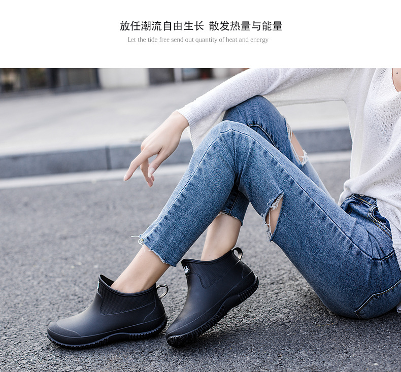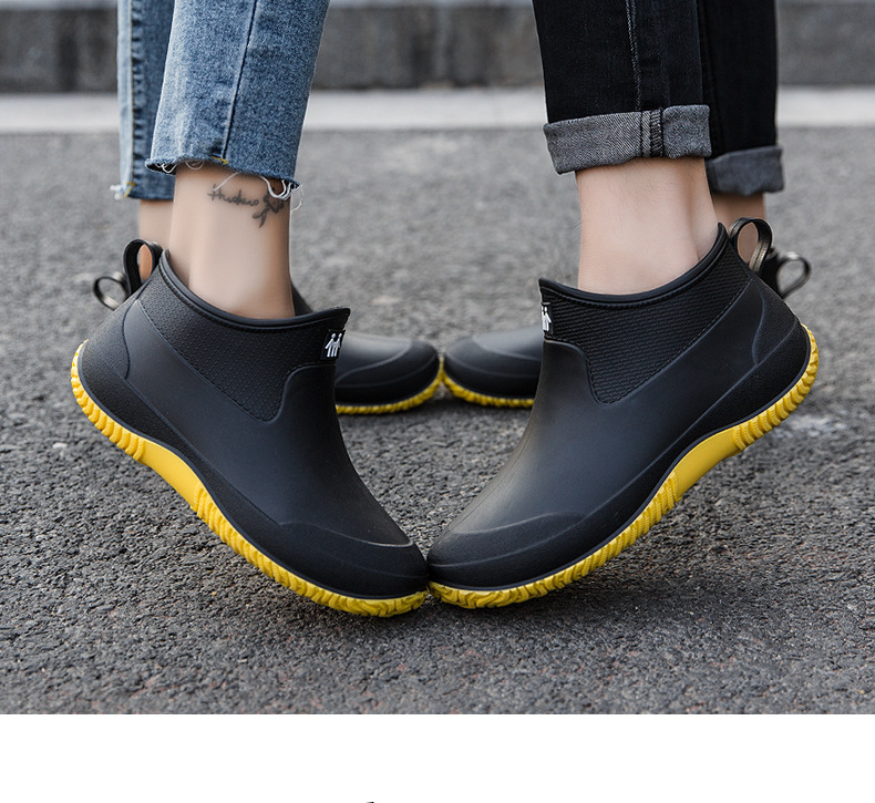 국경 간 새로운 장화 커플 야외 남성 방수 신발 경량 내마모성 고무 신발 커버 신발 로우 탑 장화 여성 도매스토어 가기