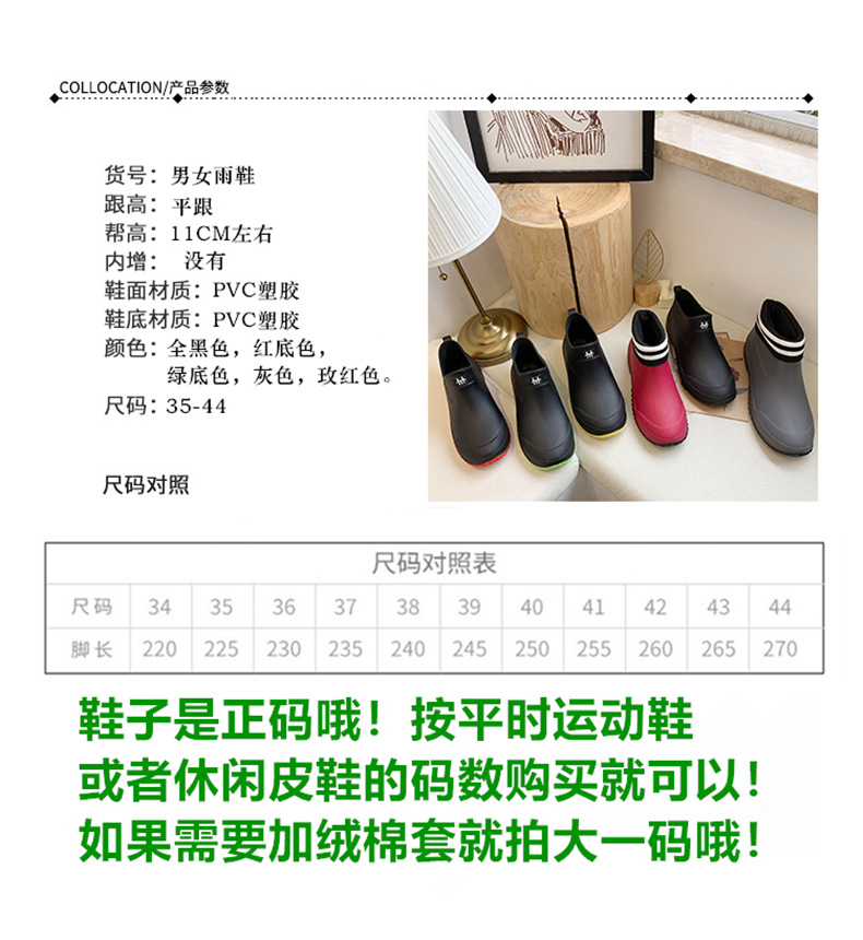 국경 간 새로운 장화 커플 야외 남성 방수 신발 경량 내마모성 고무 신발 커버 신발 로우 탑 장화 여성 도매