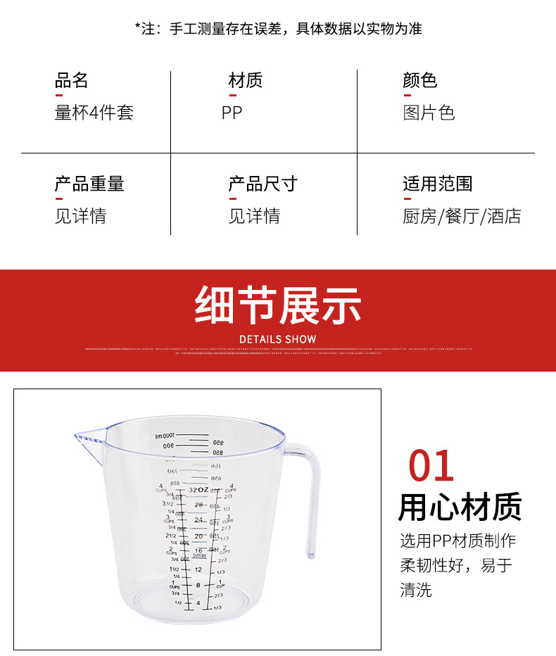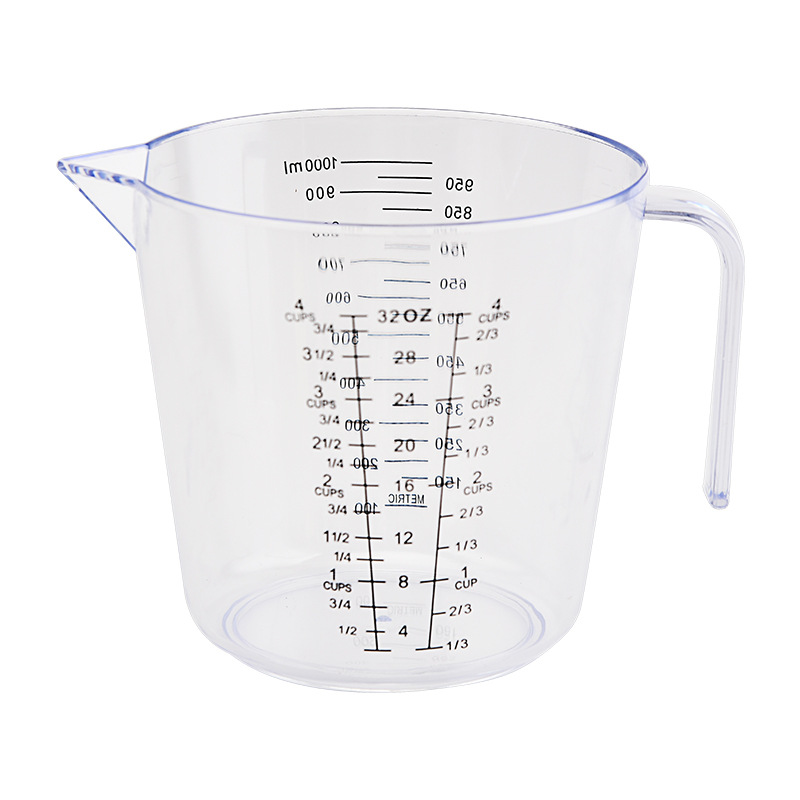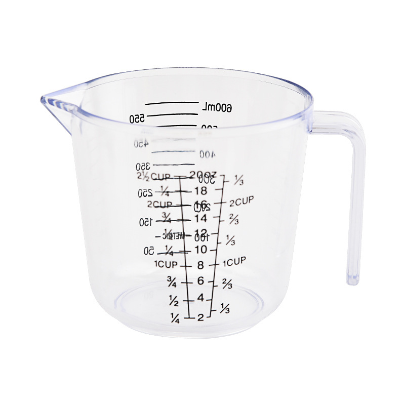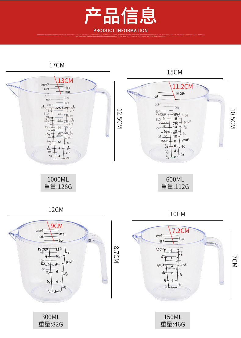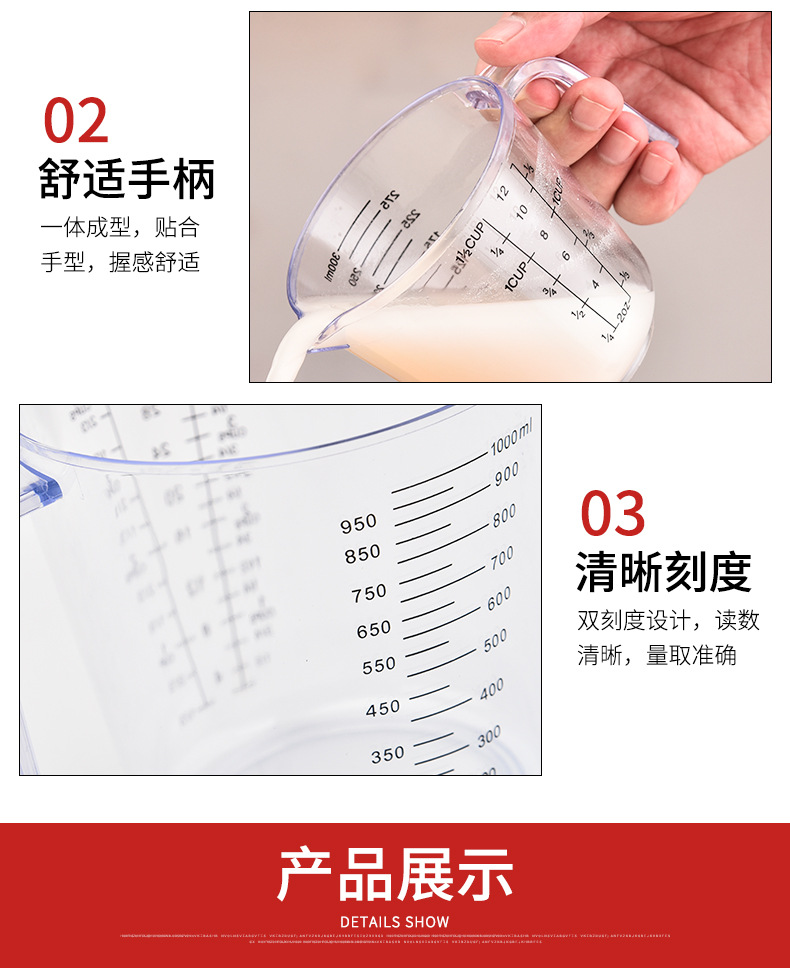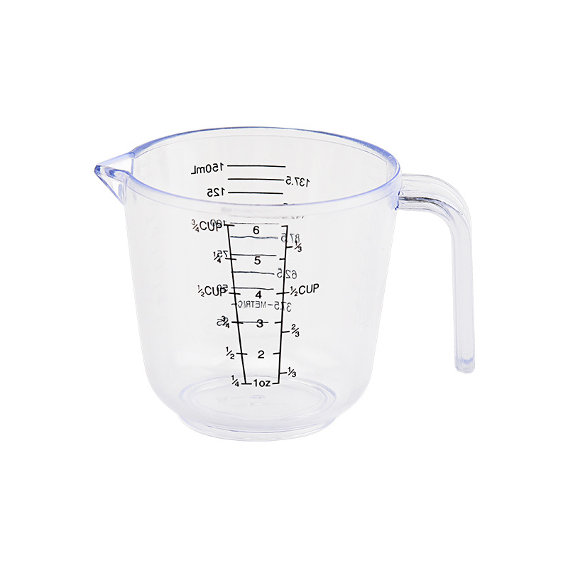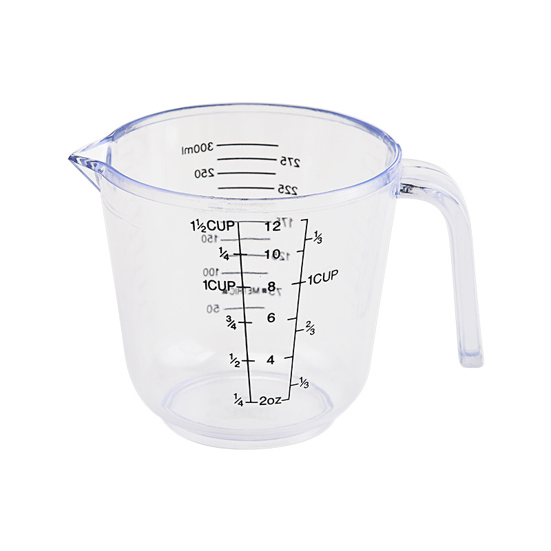 재고 PS 측정 컵 손잡이 플라스틱 측정 컵 스케일 베이킹 측정 컵 밀리리터 컵 가구 규모가있는 투명 측정 컵